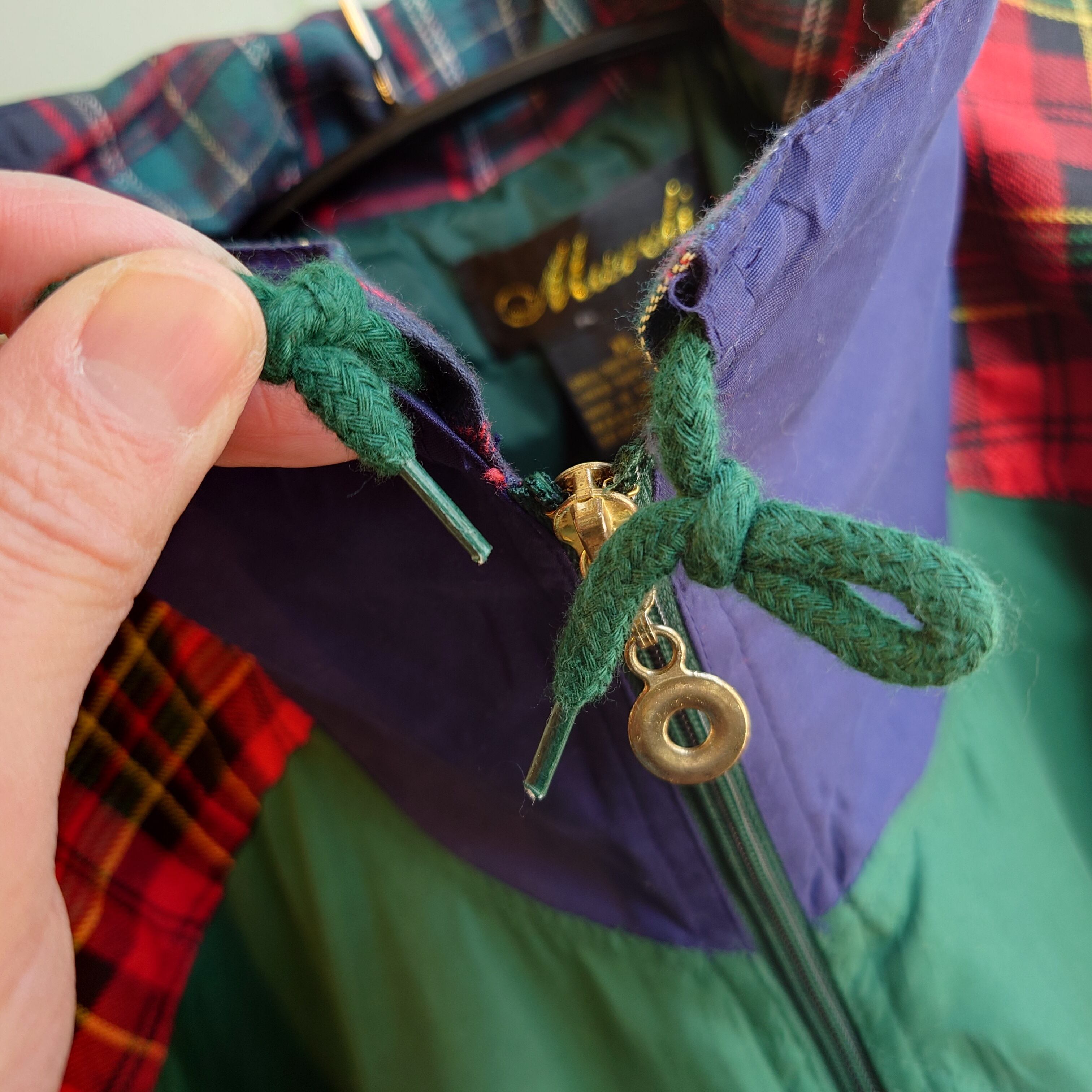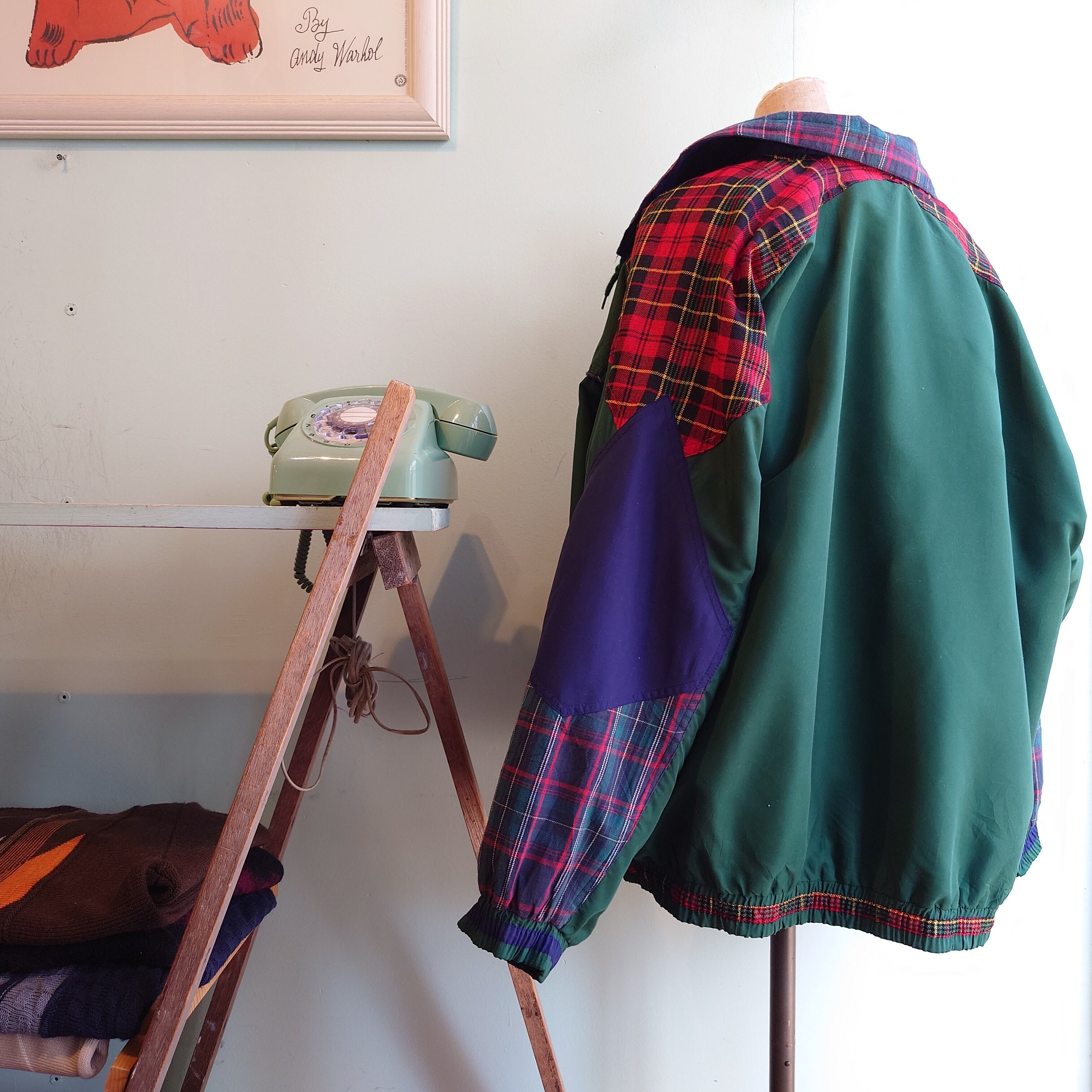 ◎Mareli 80-90s vintage タグ付き マルチカラージャケット デザインブルゾン 緑/チェック デッドストック