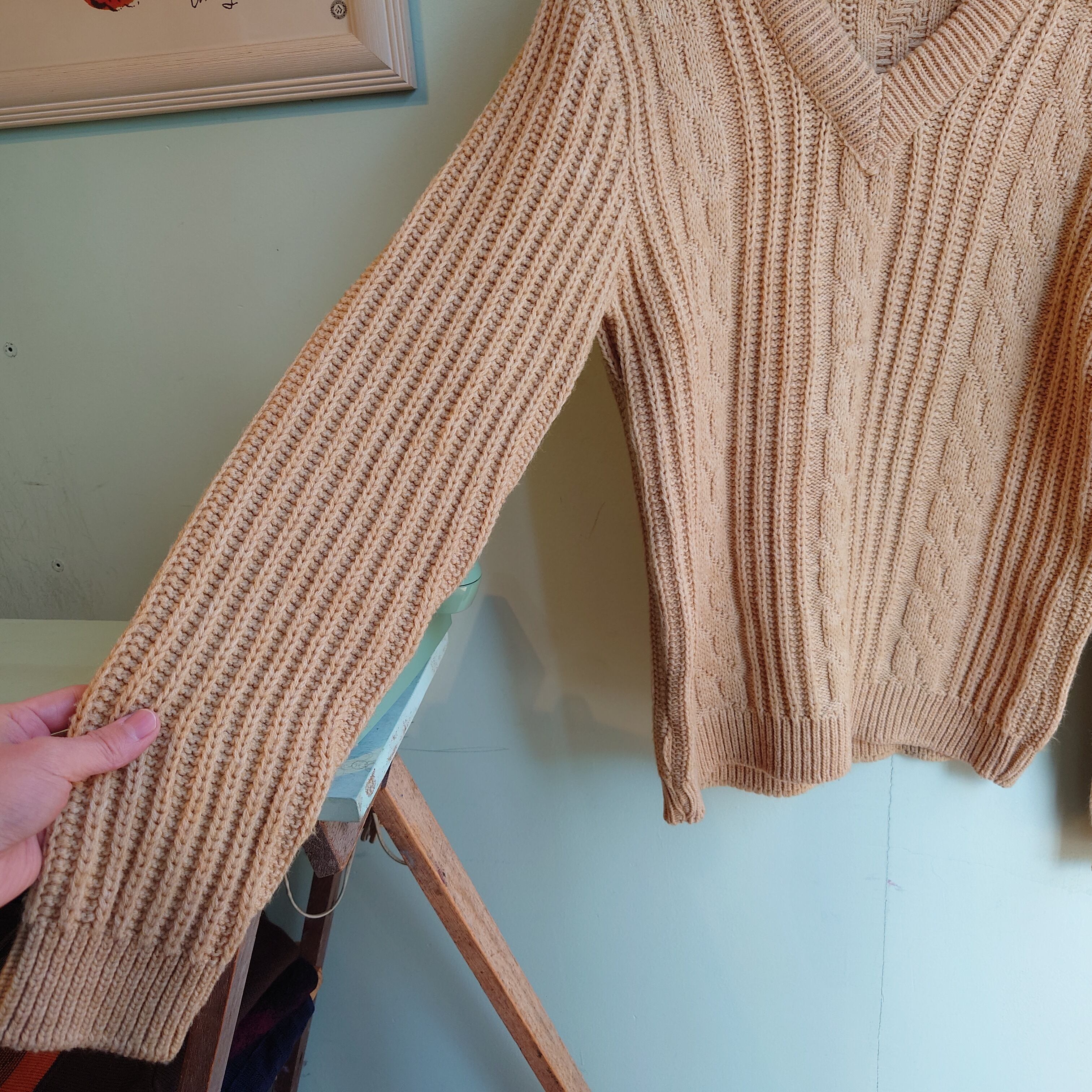 ◎Whitehouse & Hardy 70-80s vintage ヴィンテージセーター ケーブルニット Vネックセーター ベージュ系
