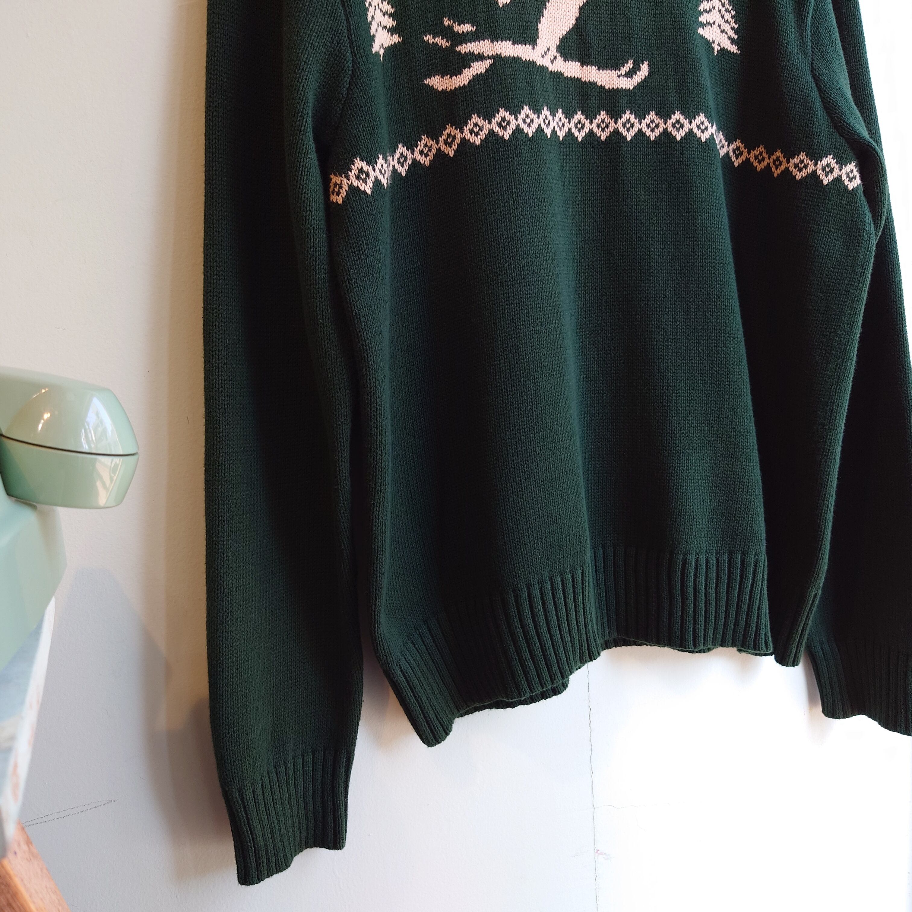 ◎AMERICAN LIVING 00s コットンセーター モチーフニット アートニット 緑 L