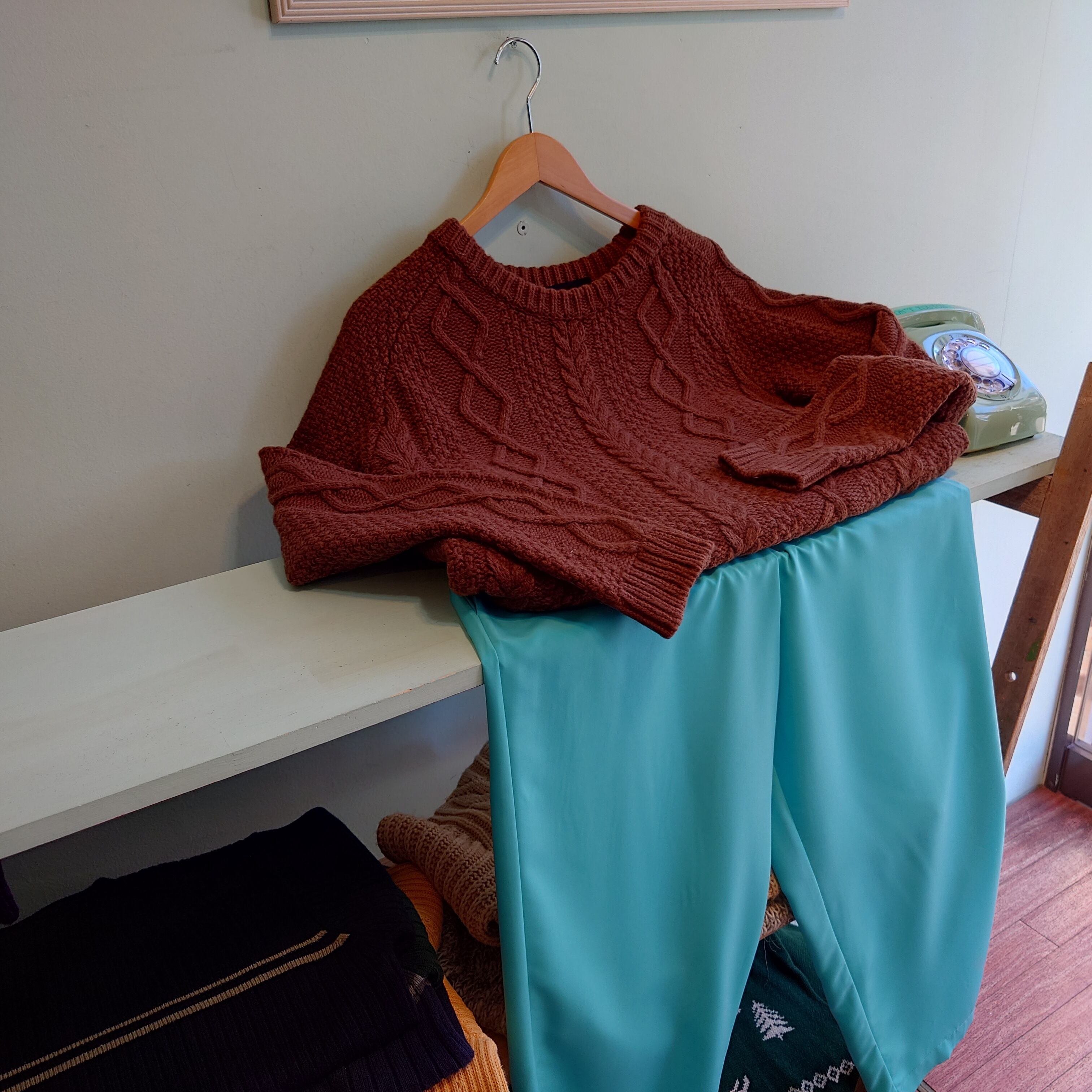 フランス発のデザイナー系ブランド、クープルズのケーブルニット。伝統的なざっくりウールを、モダンでクールなスタイルに再構築した一枚。また、オーセンティックなアランニットではなかなか見かけないチョコレート色も新鮮。ボディーに程好いざっくり感ありつつ、袖周りからでるスタイリッシュさが魅力。