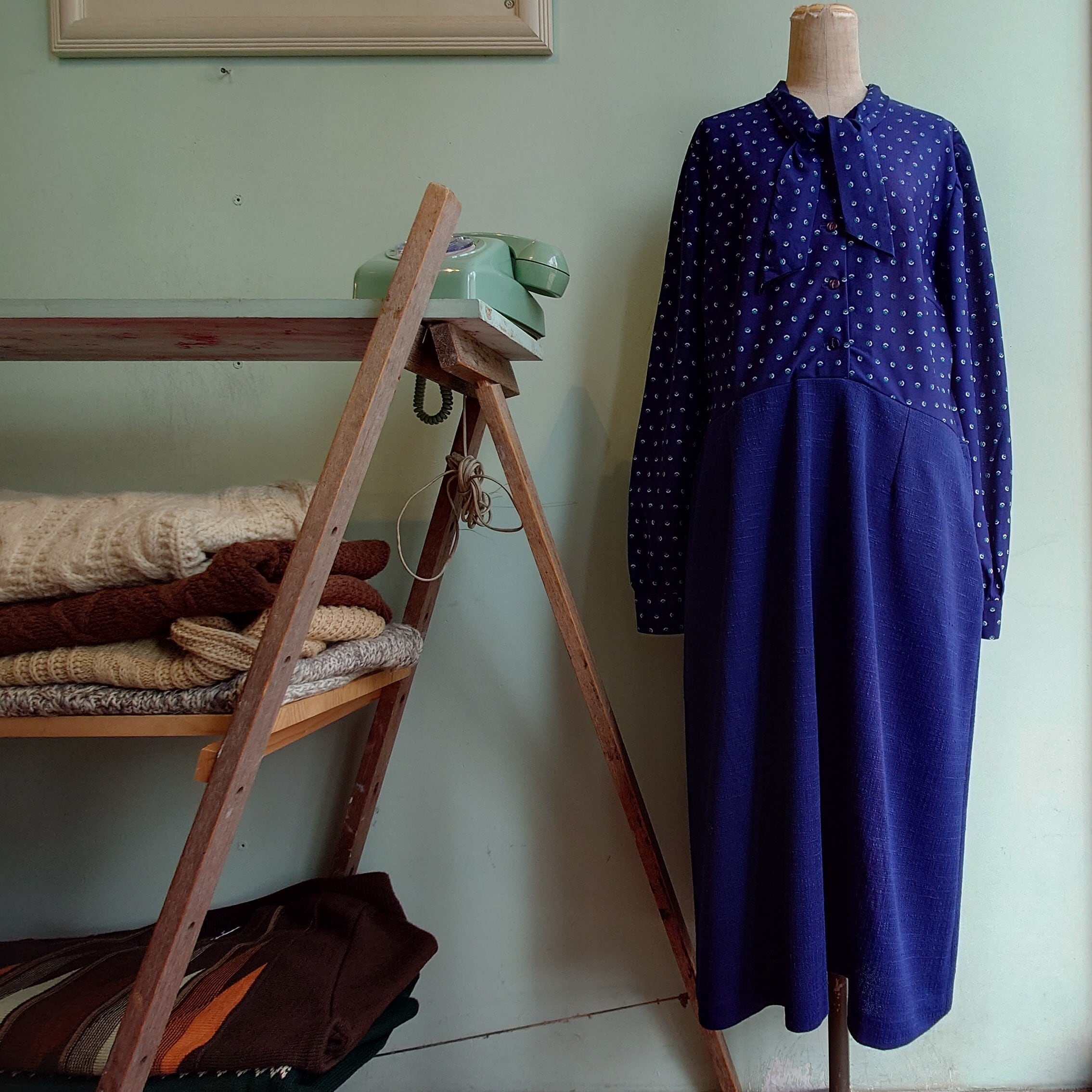 C&A 80-90s vintage ヴィンテージドレス リボン付きワンピース イギリス製 ネイビー