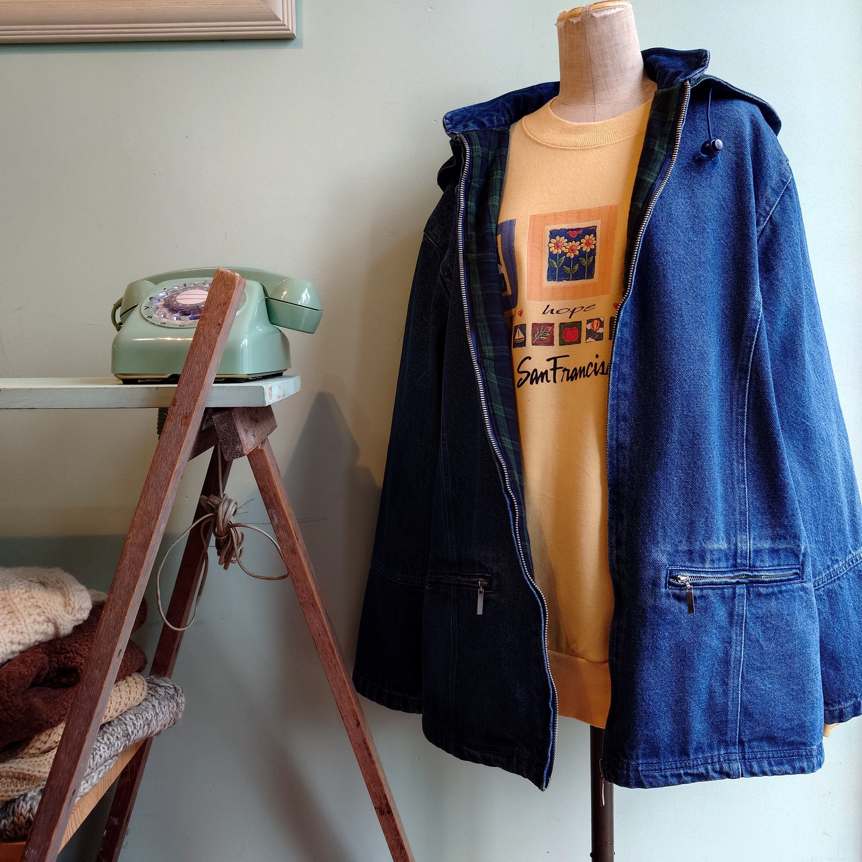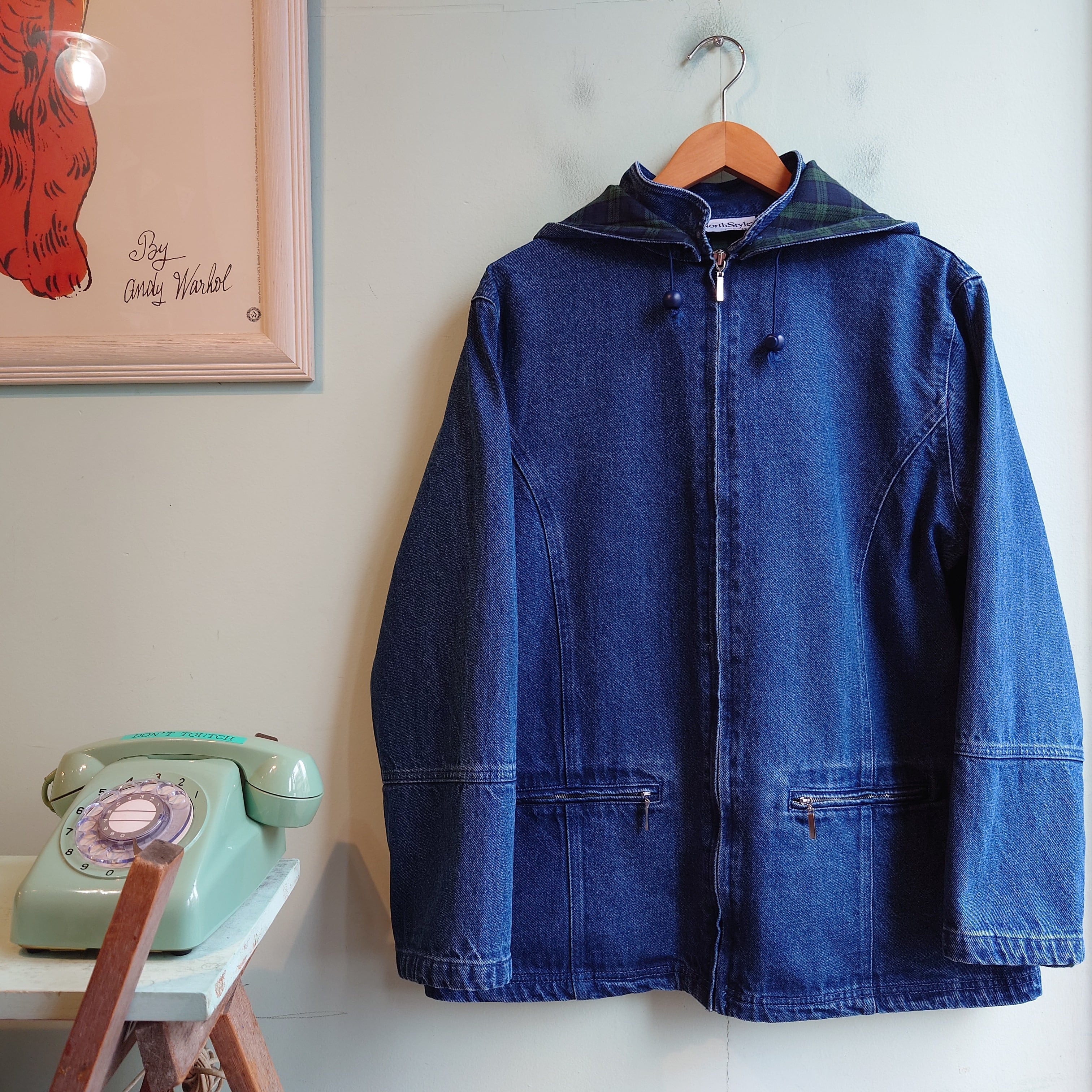 NorthStyle 90-00s デニムジャケット デニムフードジャケット デニムカバーオール レディース 裏地 L
