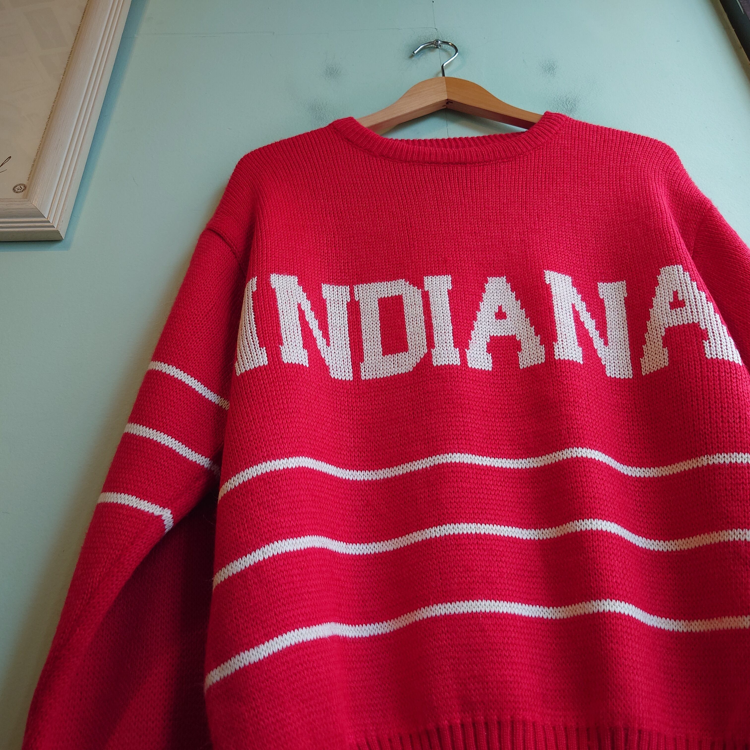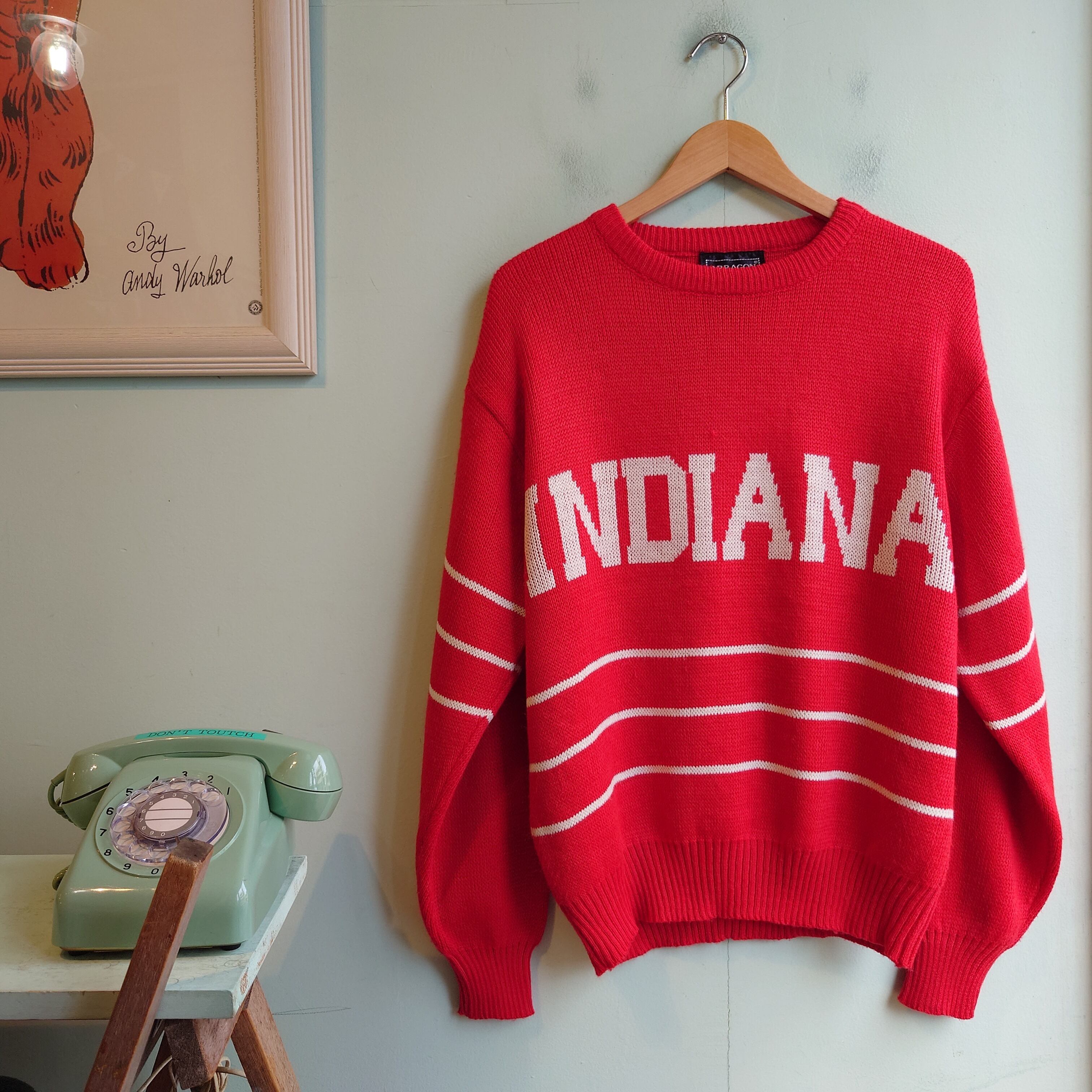 スキーニットのようなロゴとボーダーを、コロンとしたスウェットライクなシルエットで合わせられる、インディアナ州のスーベニアニット。アクリルならではの軽さで、よりライトな気分でかぶれるのもいい。大きめなスーベニアロゴも、ニットになるとレトロゲームのようなドットで弾けすぎないところがいい。