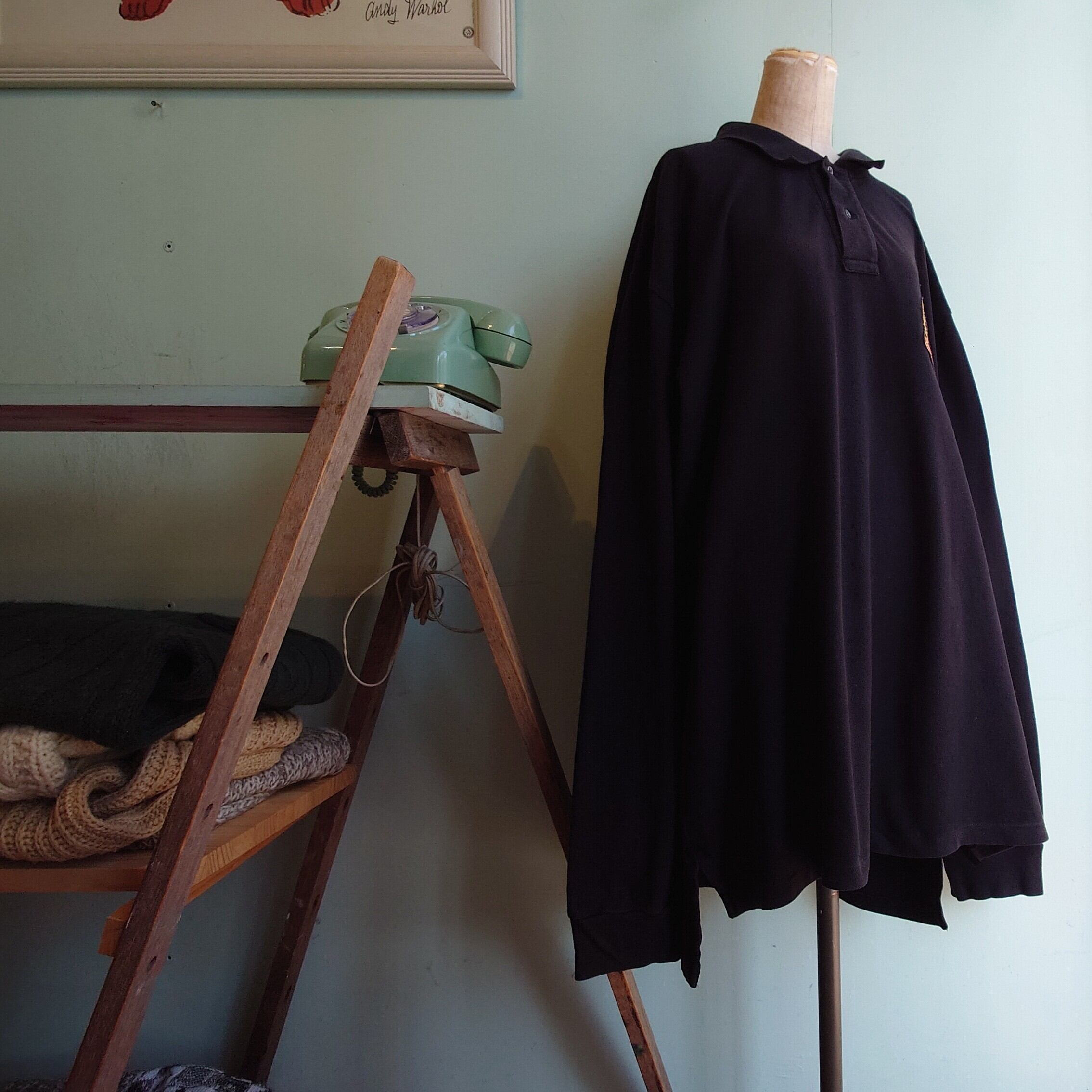 RALPH LAUREN 90s vintage ロングスリーブポロシャツ ポロワンピース 黒 長袖ポロシャツ オーバーサイズ XXL