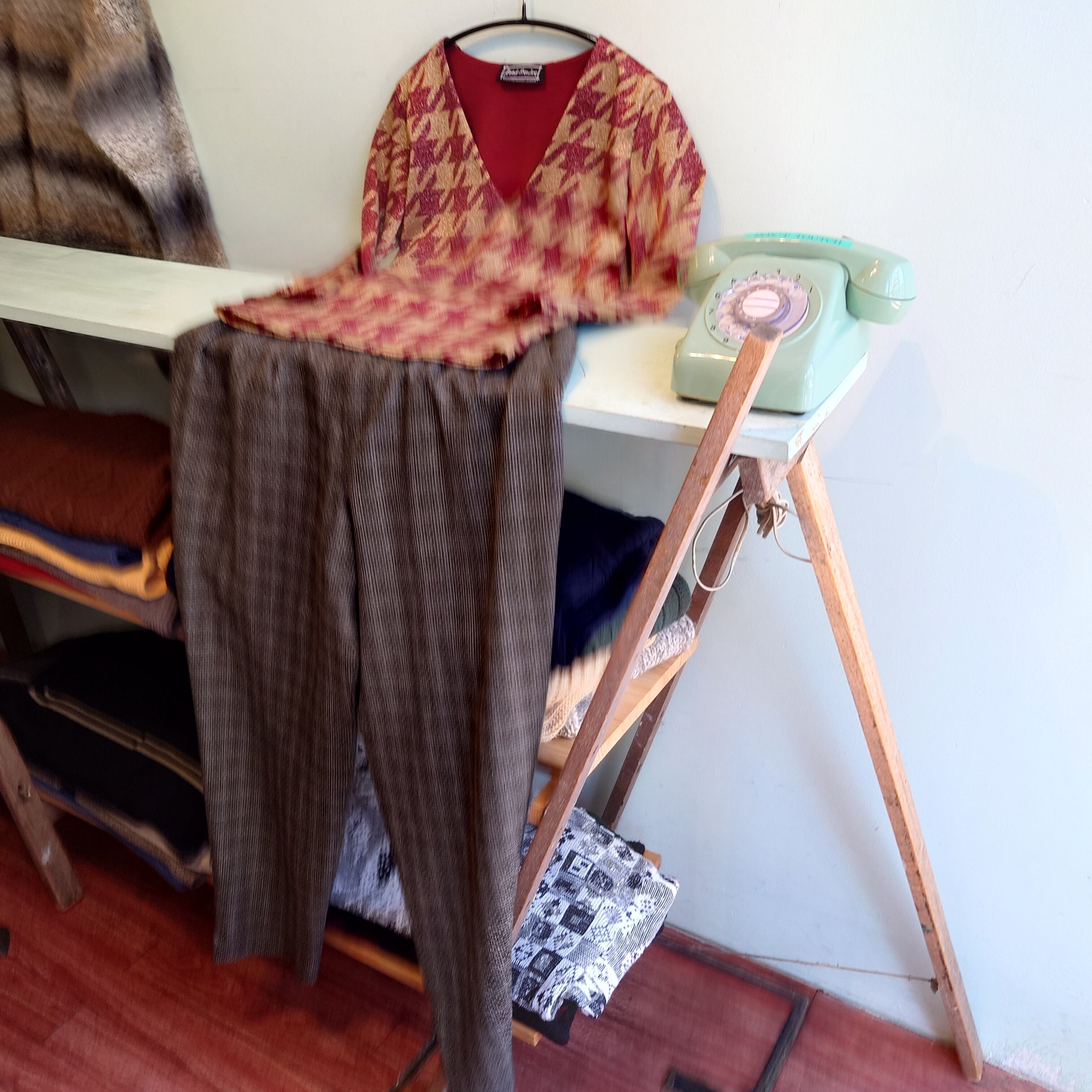 Avant-Première 90-00s vintage 総柄カットソー 千鳥格子 ラメ デザインカットソー フランス製