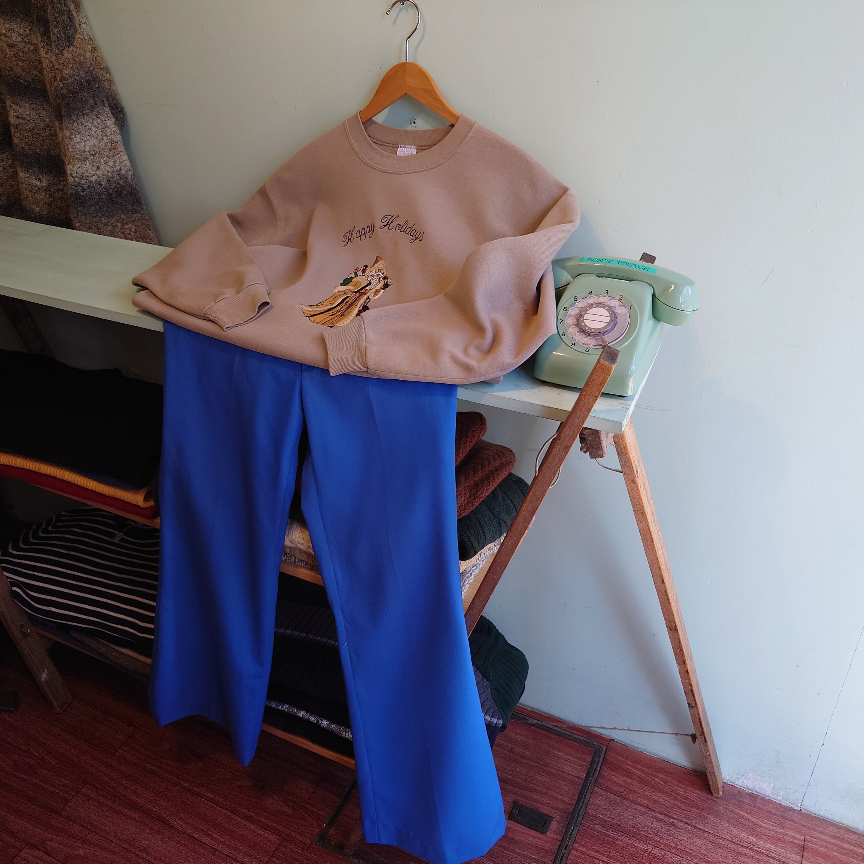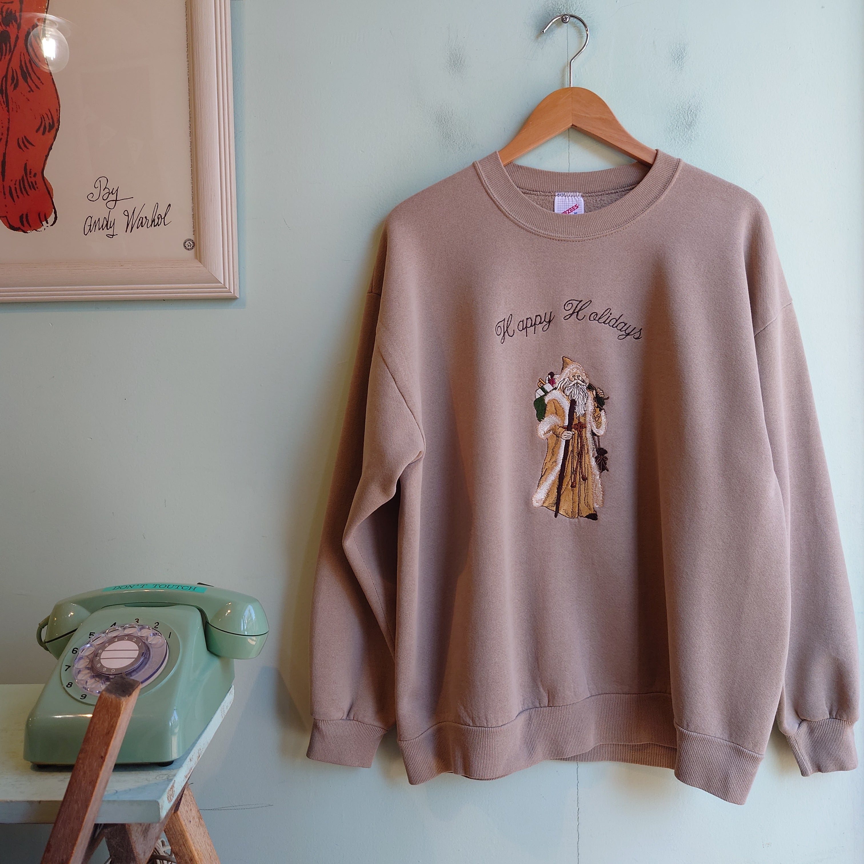 サンタクロース、いわゆるビクトリア朝サンタと言われるアートが美しいクリスチャンスウェット。ニットのようにナチュラルなベージュもかなり珍しいアイテム。古着らしいスウェットスタイルで、アートの歴史を着るようなスペシャルアイテム。