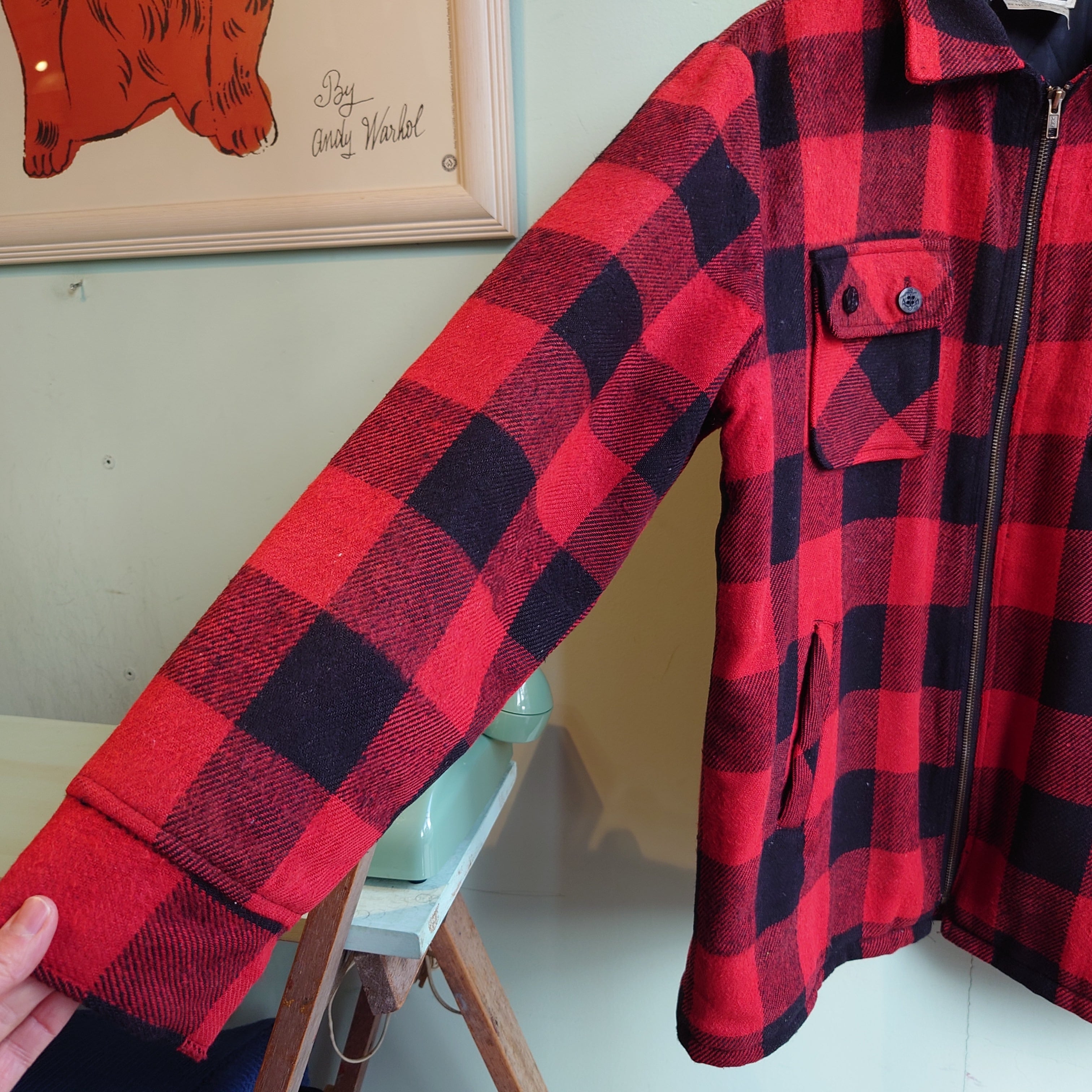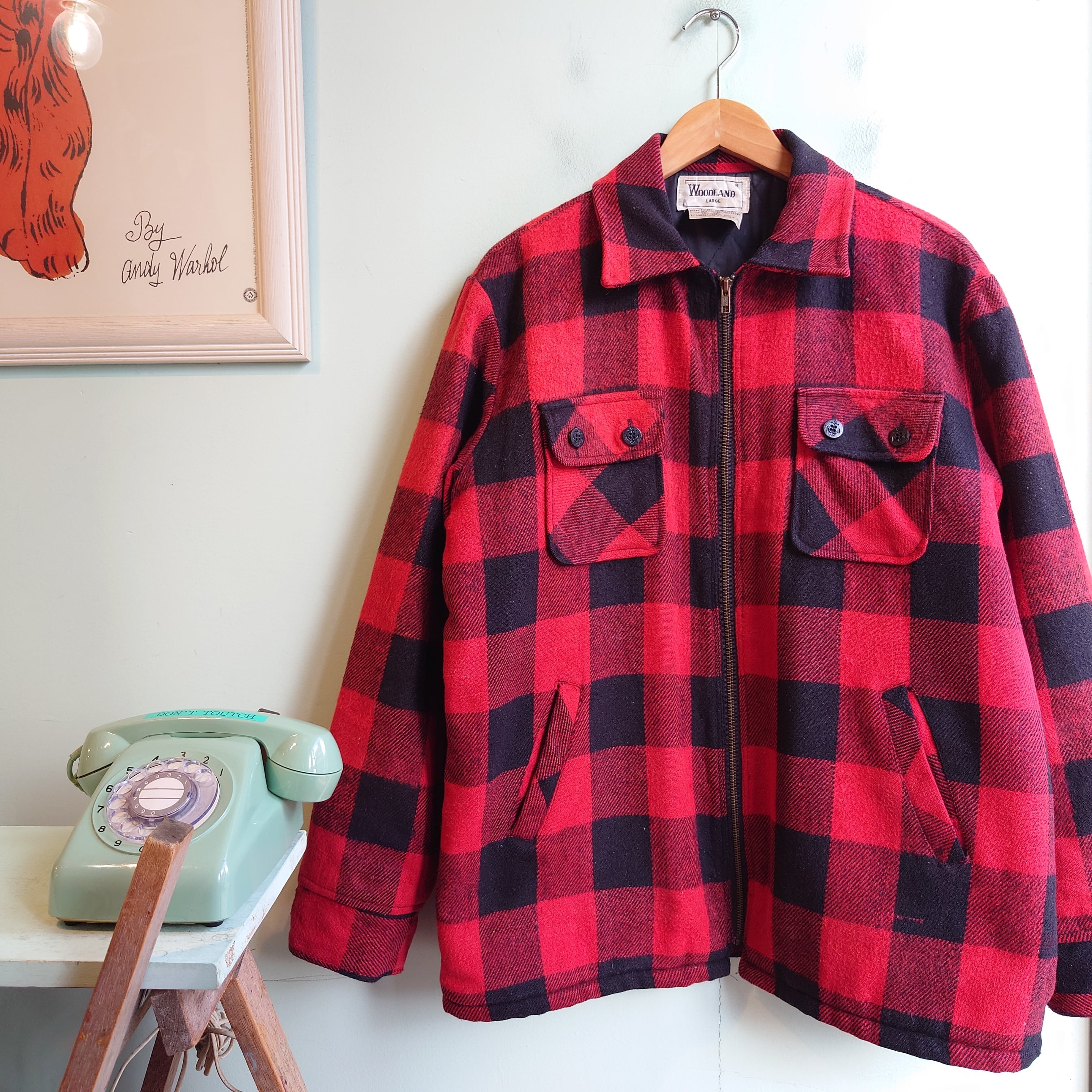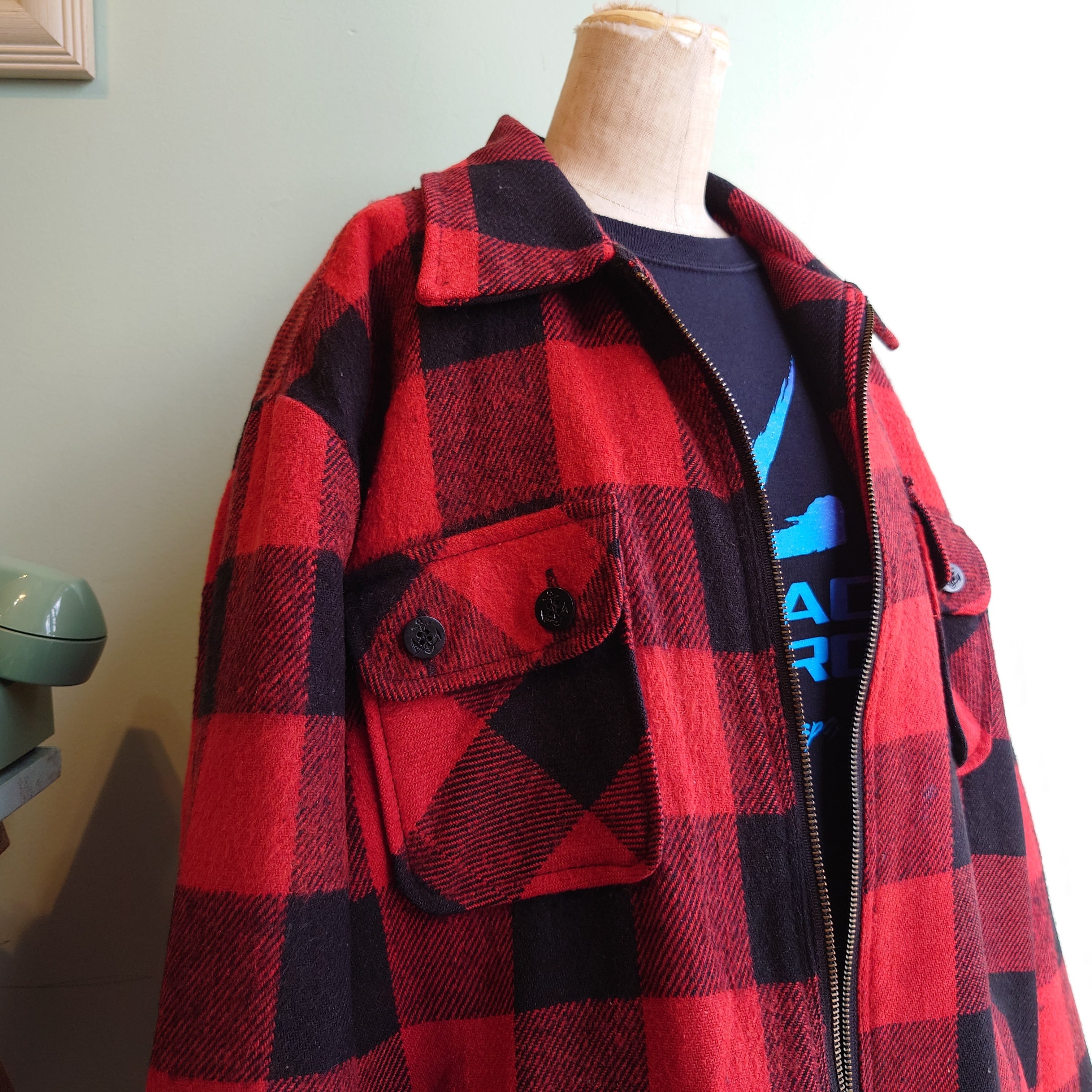 ウール系の暖かフランネルに、キルティングの裏地の本格派スタイルがかっこいいキャンピングジャケット。マッキーノ系のポケットのレイアウトと、フルジップのスタイルもクール。バッファローチェックのポップさもありつつも、ややくたびれた感じも絵になる、抜群の渋さがおすすめなアイテム。
