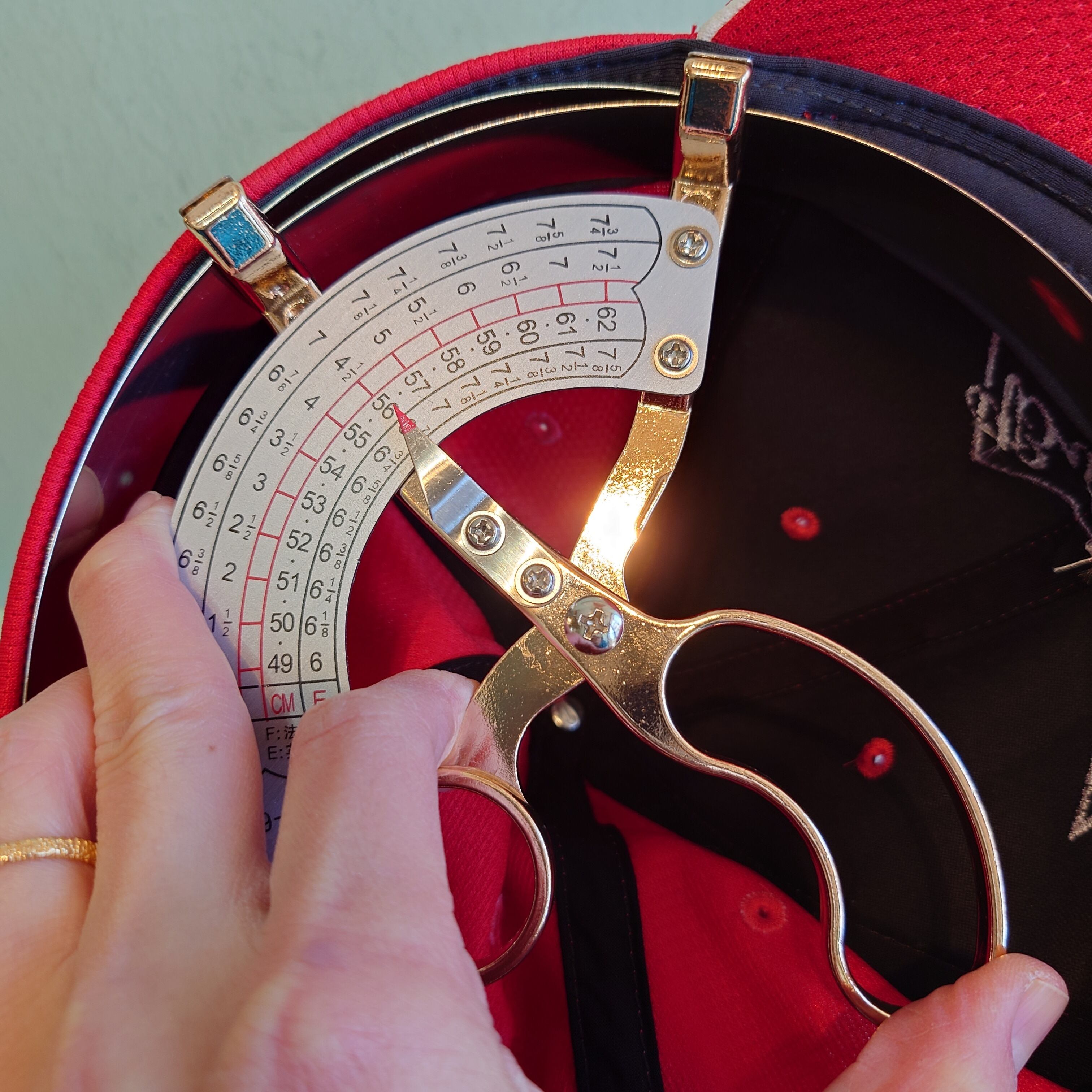 キャップゲージを使って内側を採寸しています。かぶり方や髪型で若干感じ方が異なる場合がございます。