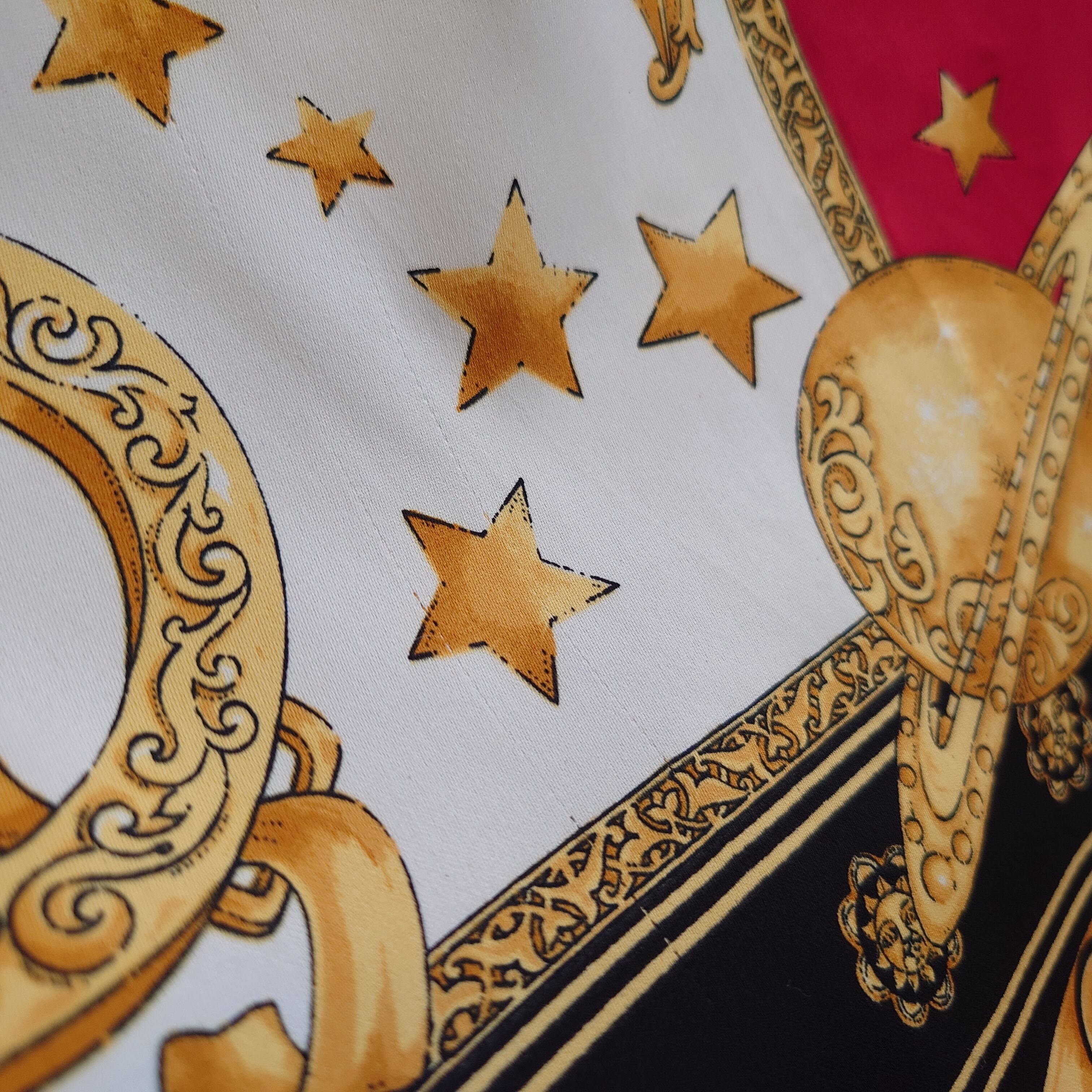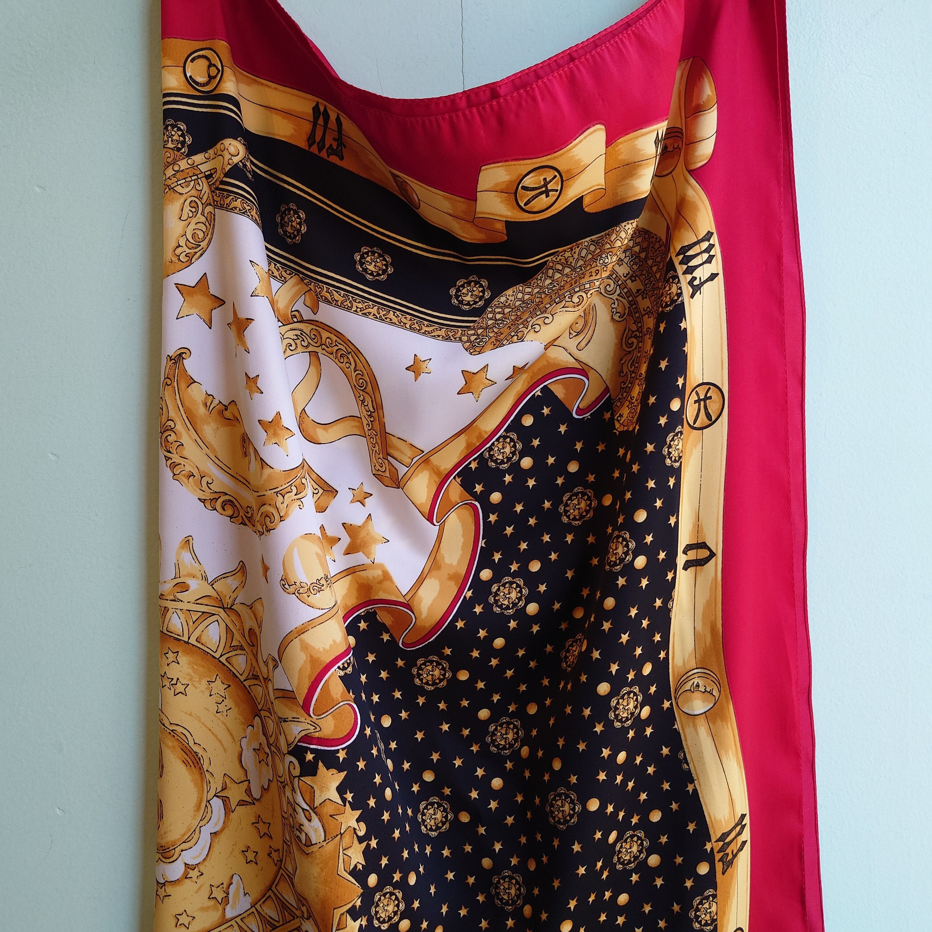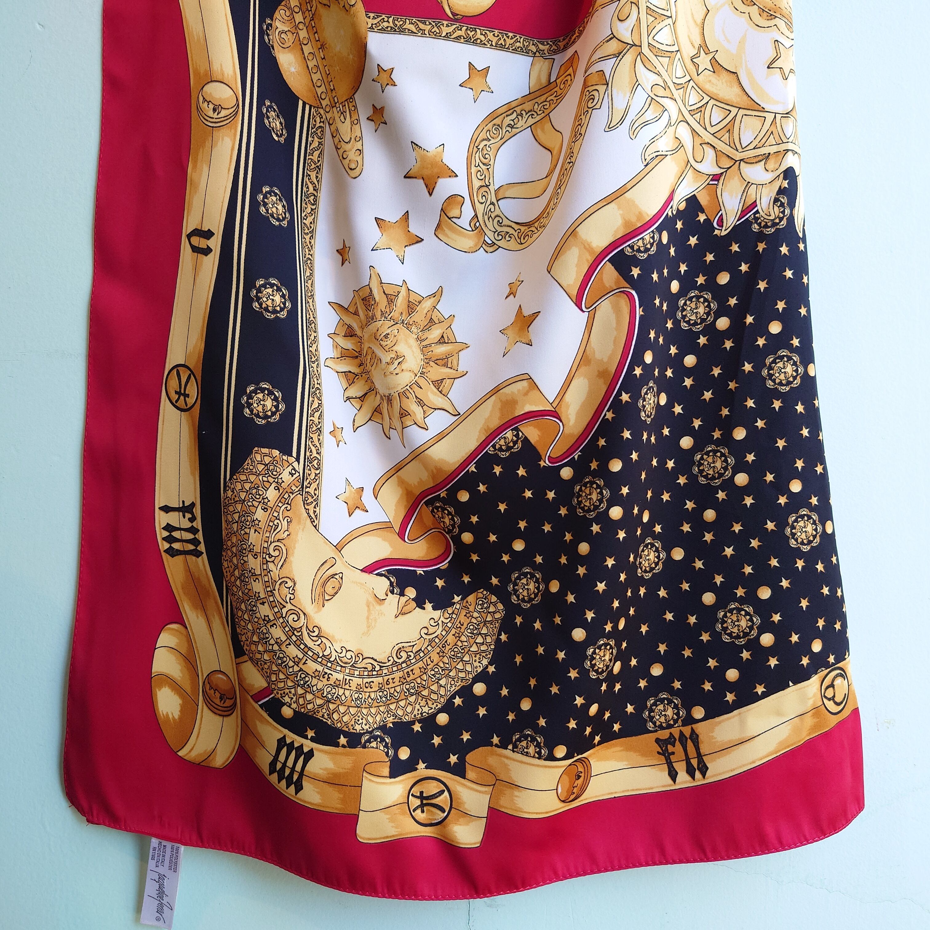 JCペニー系ストラブランドのヴィンテージスカーフ。占星術をモチーフにした、太陽、月、ヨーロピアンで古代的な柄がかわいい。
