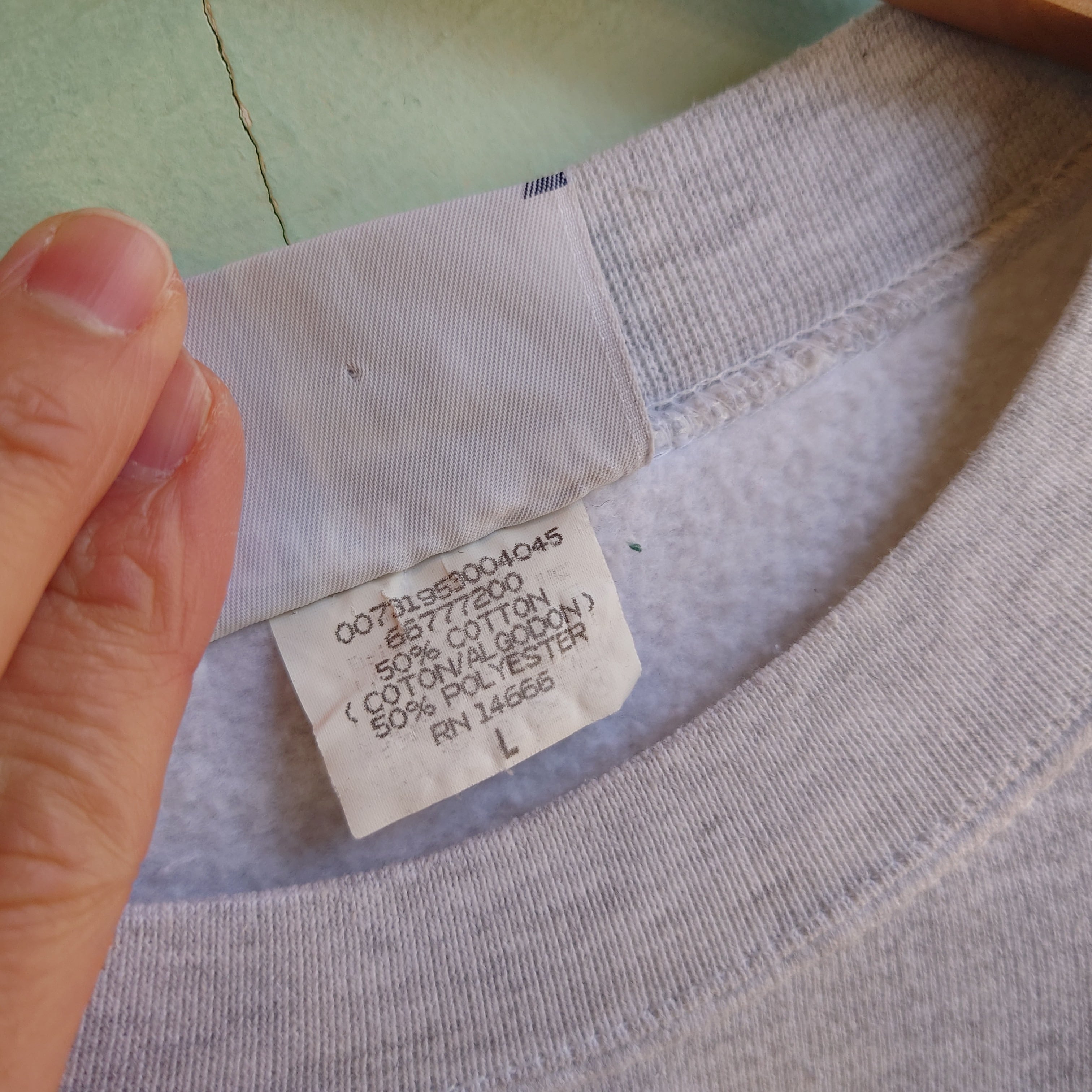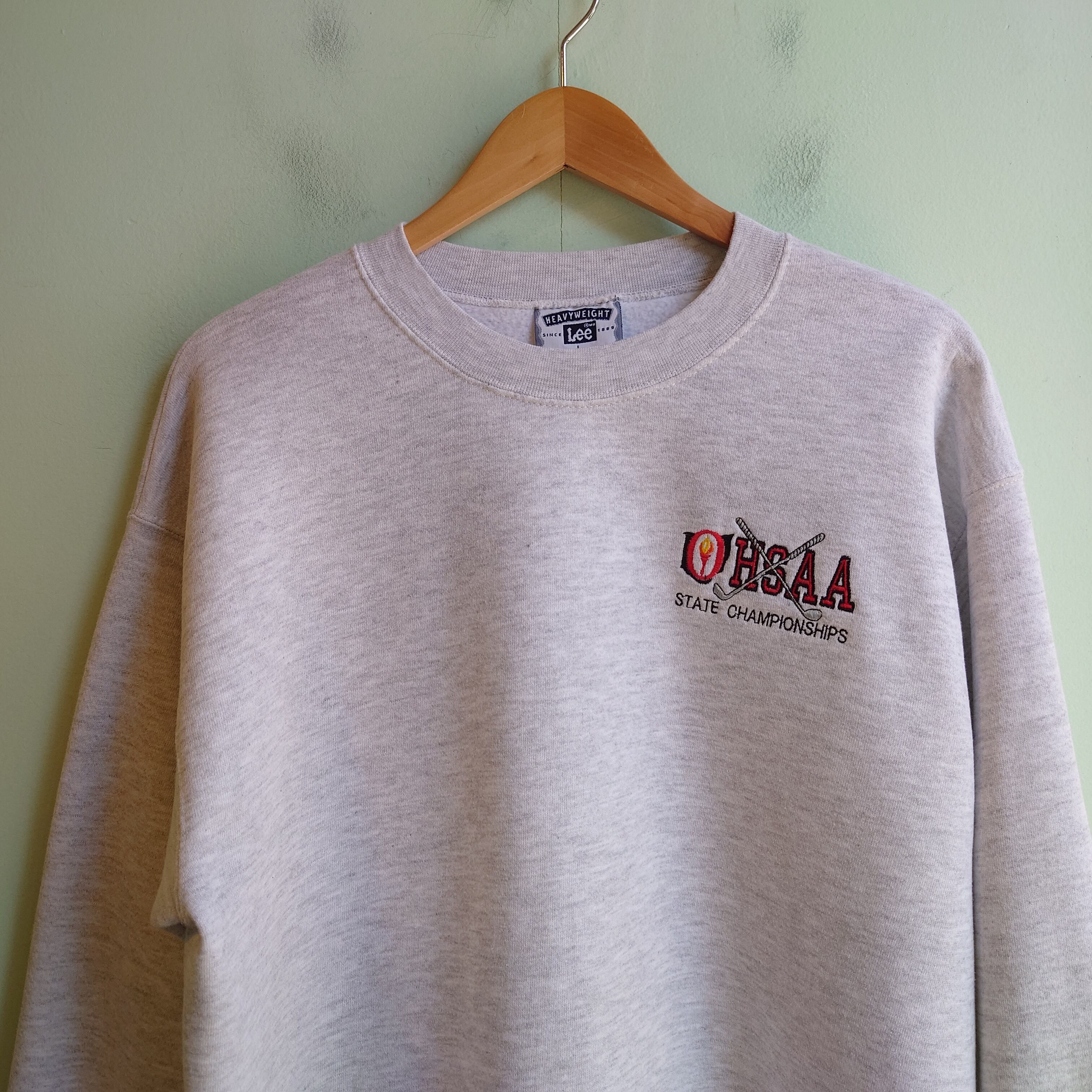 オハイオ州高校体育協会、ホッケーリーグのヴィンテージスウェット。白杢カラーのコロンとしたオールドボディーに、ミニマムなロゴがグッドセンス。政府機関や企業系のような端正さのなかに、カレッジらしいポップさも。無地では寂しいけど、大判プリントが苦手なお客様にもグッドチョイスです。