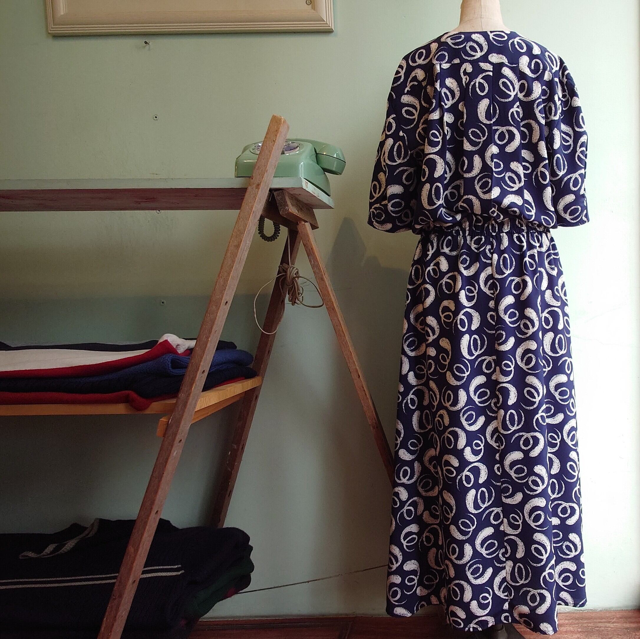 ◎Liz Claiborne 90-00s ヴィンテージドレス 総柄ワンピース ネイビー グッドシルエット