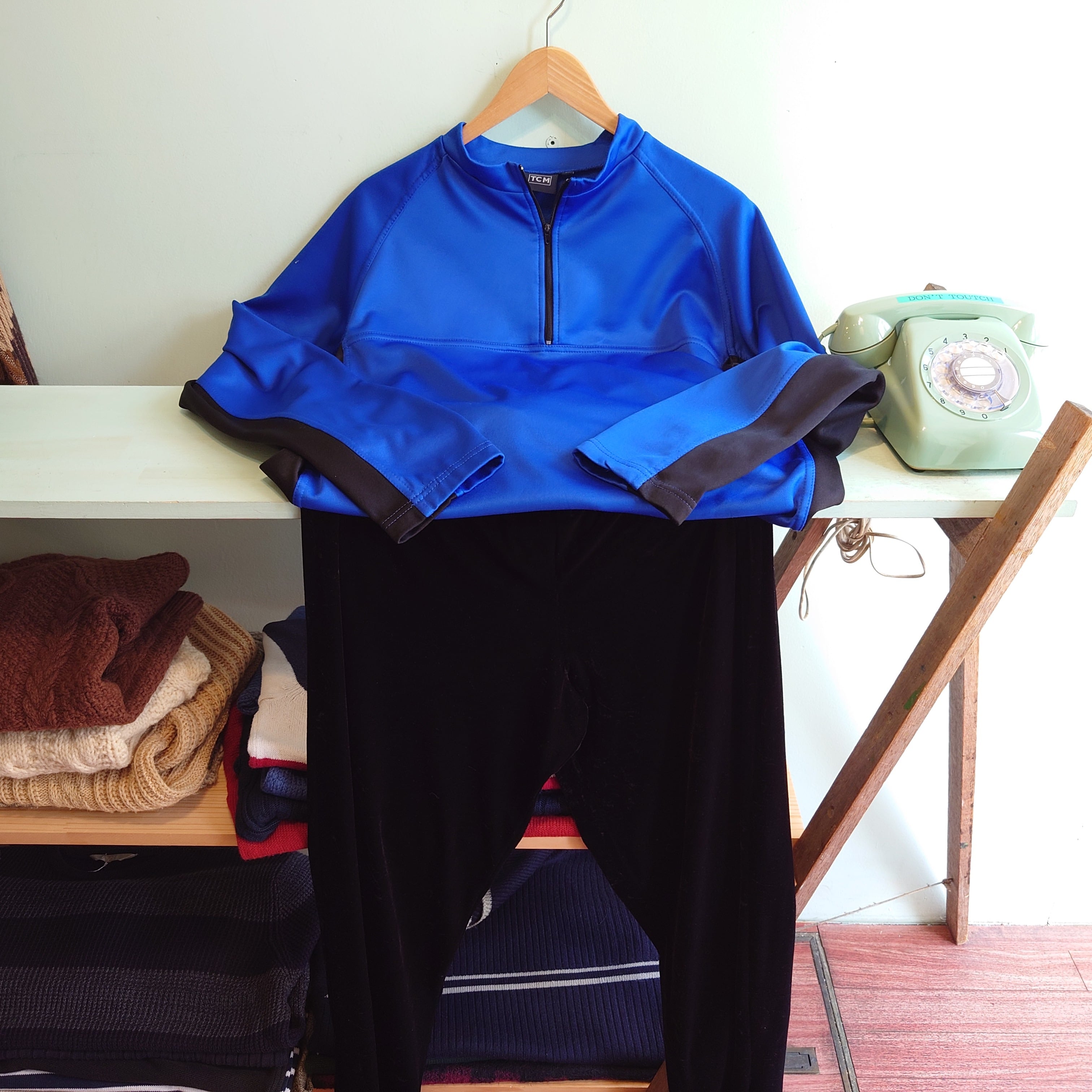 TCM 90-00s サイクルジャージ ハーフジッププルオーバー 青×黒 XL