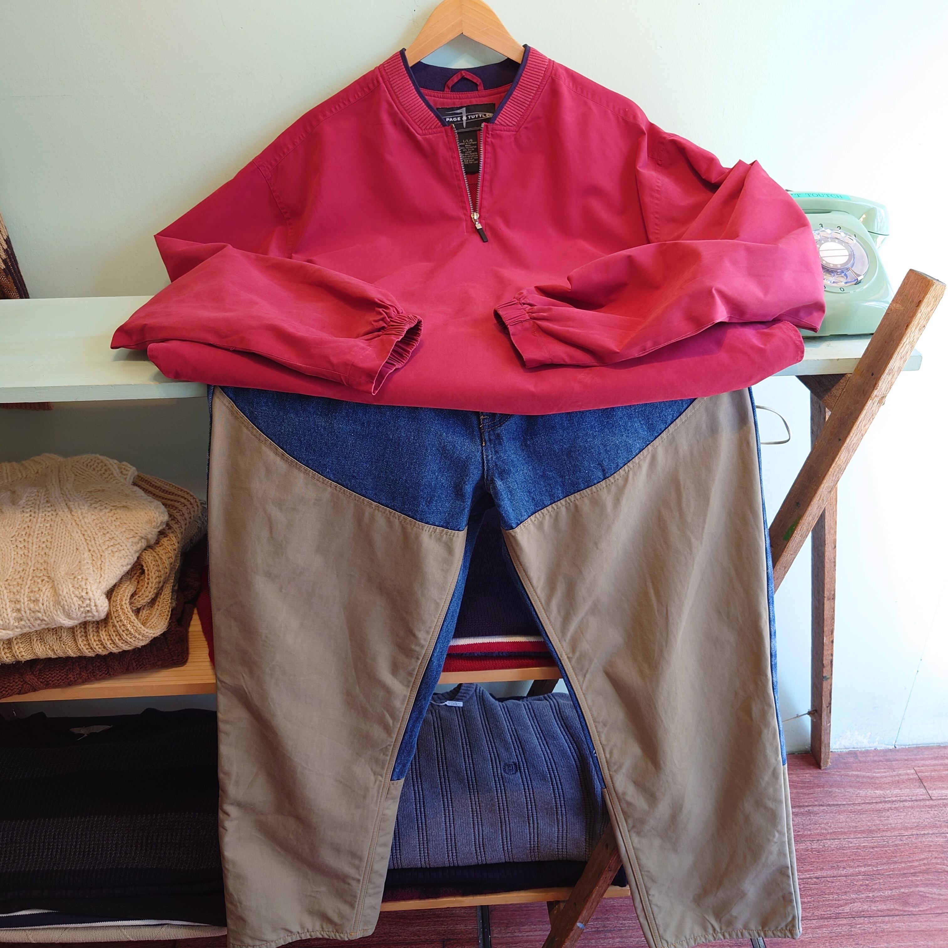 ◎PAGE & TUTTLE 90-00s クォータージッププルオーバー 異素材プルオーバー スニードジャック 赤系 L
