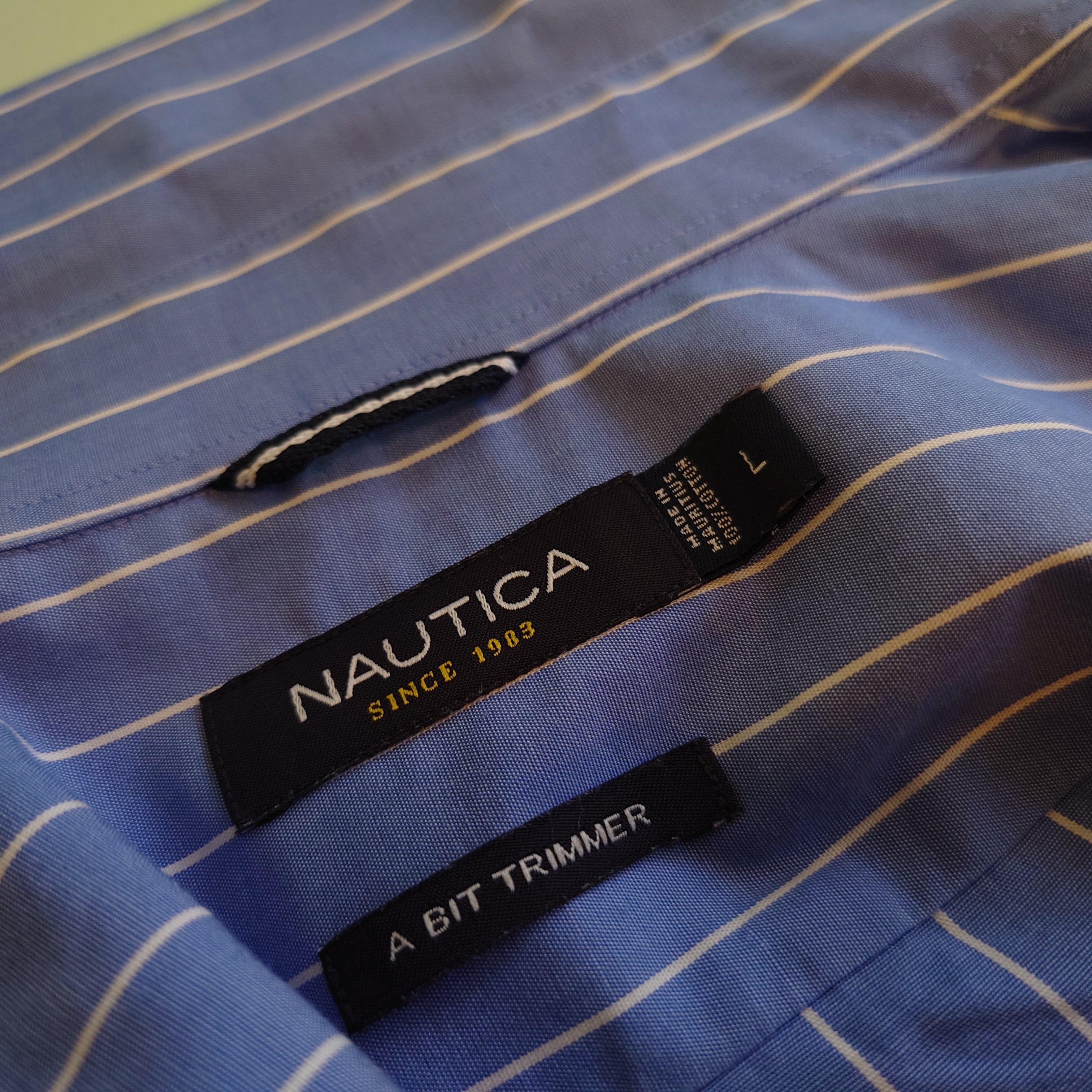 Nautica 00s ストライプシャツ ボタンダウンシャツ 青系 L