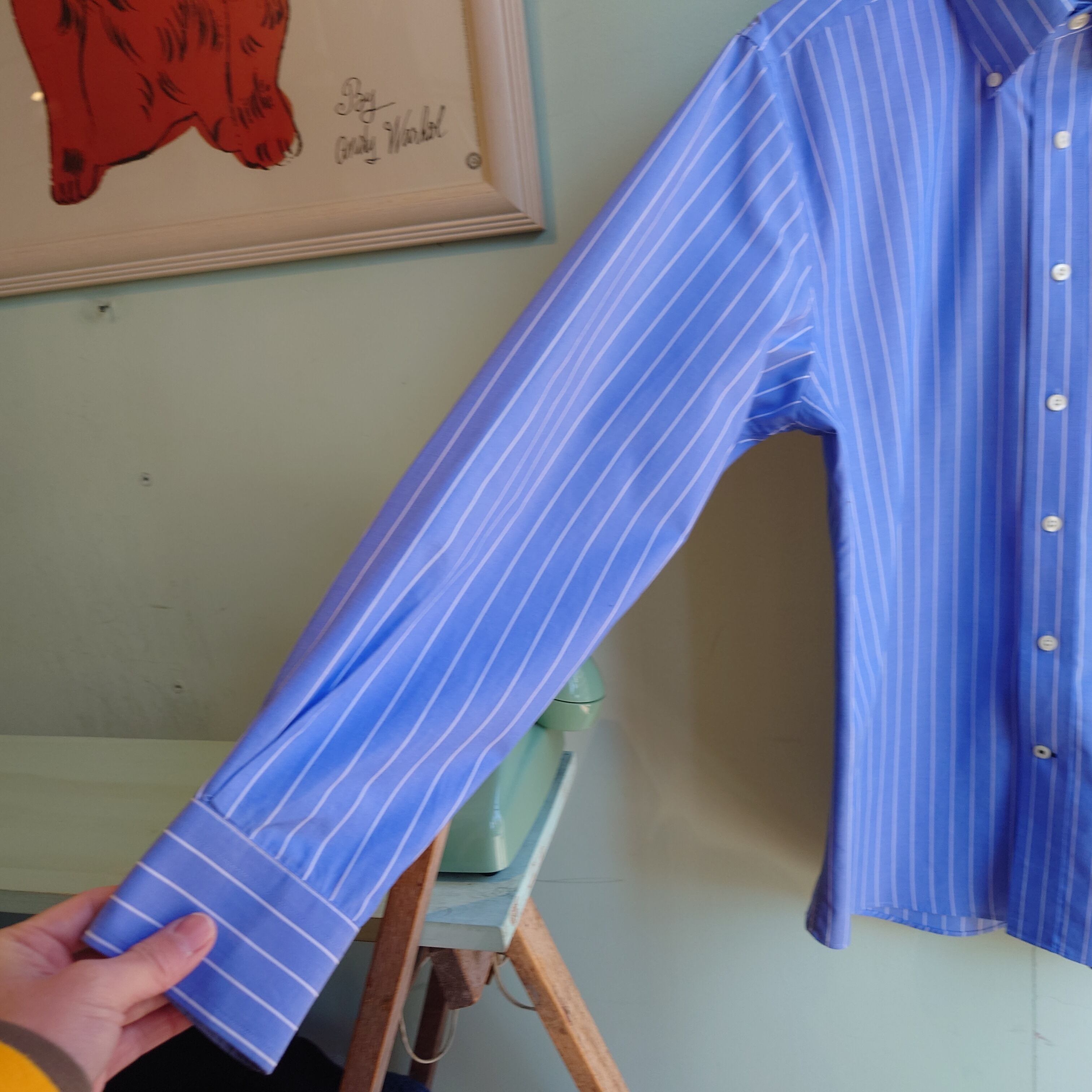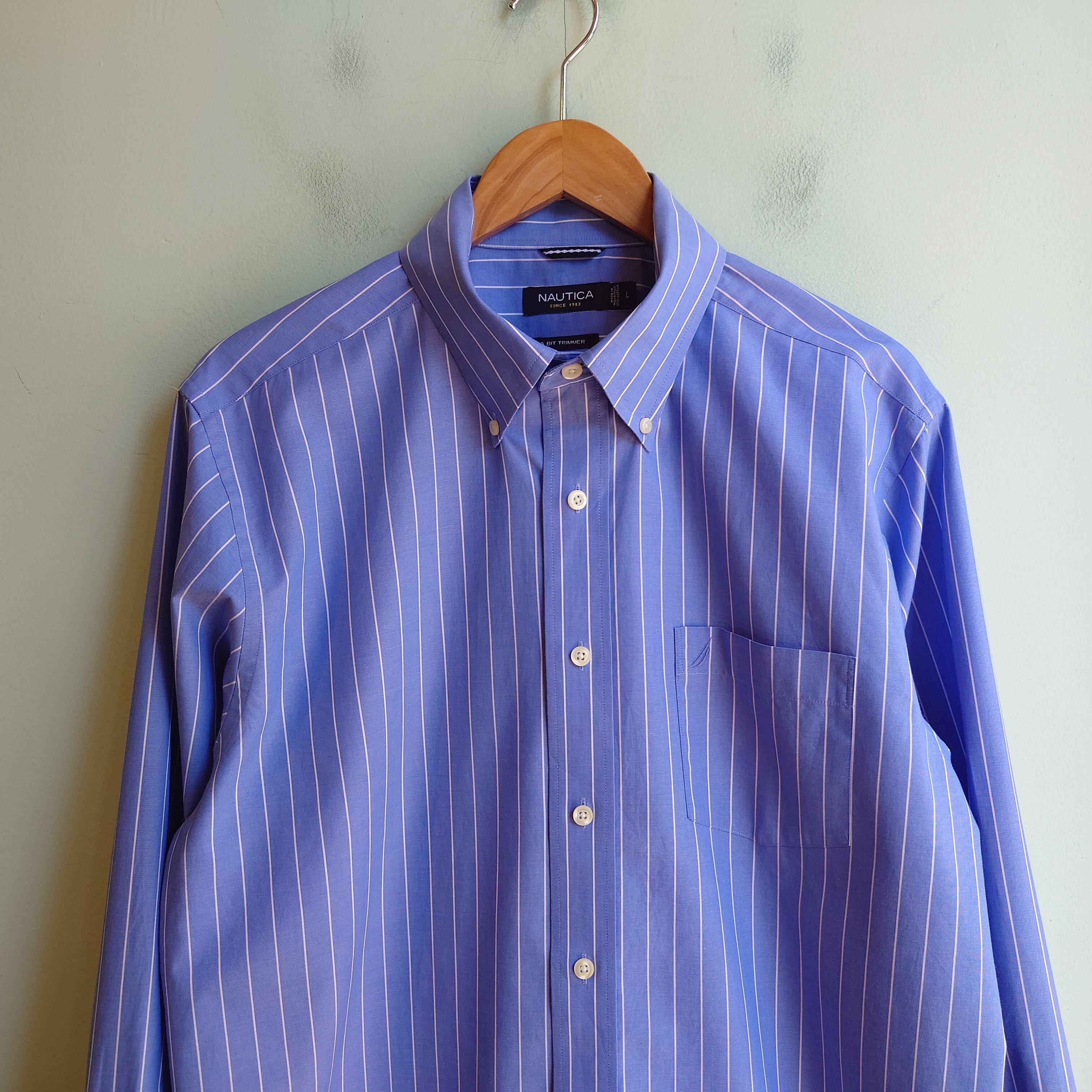 ◎Nautica 00s ストライプシャツ ボタンダウンシャツ 青系 L