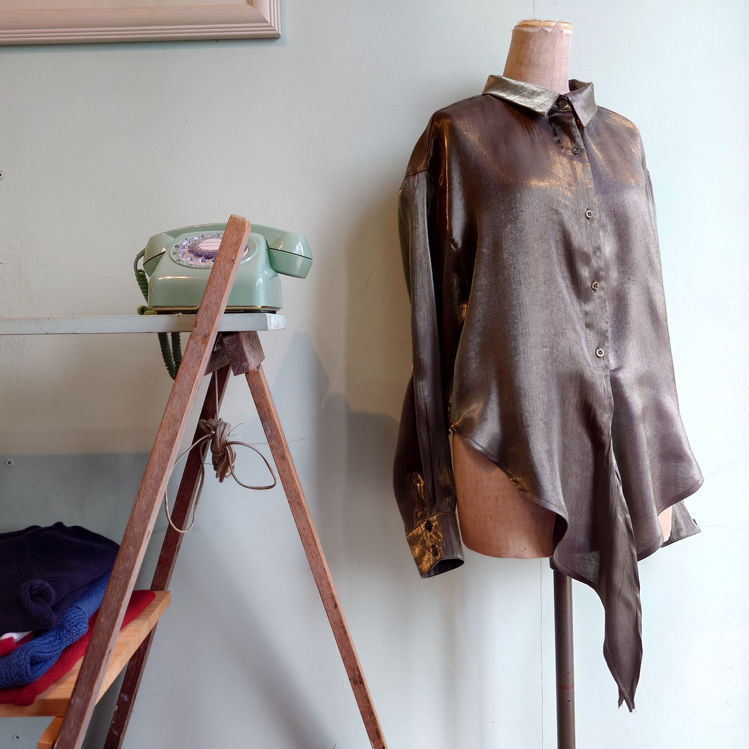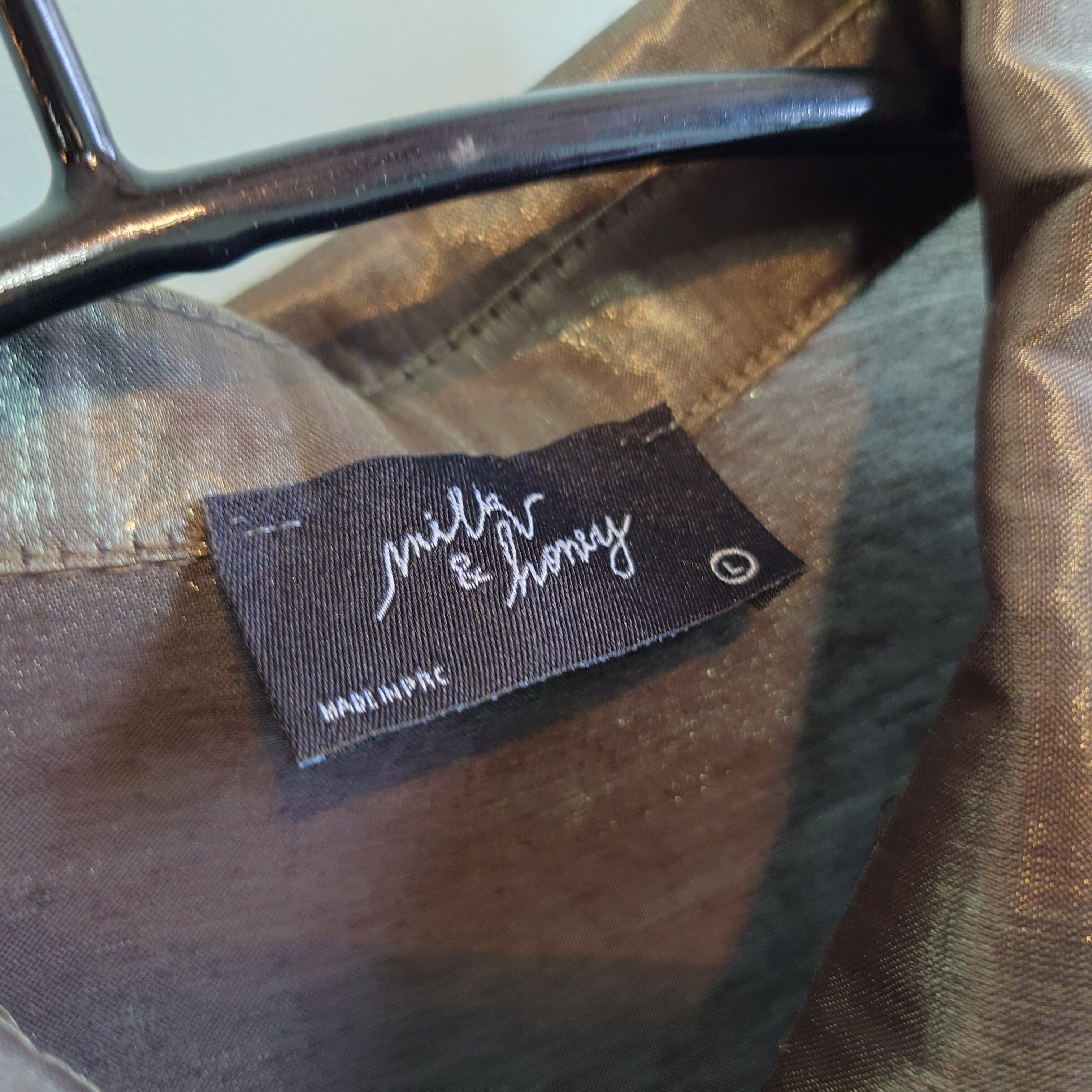 Milk & Honey 00s メタリックシャツ タイフロントシャツ デザインブラウス ゴールド 個性派