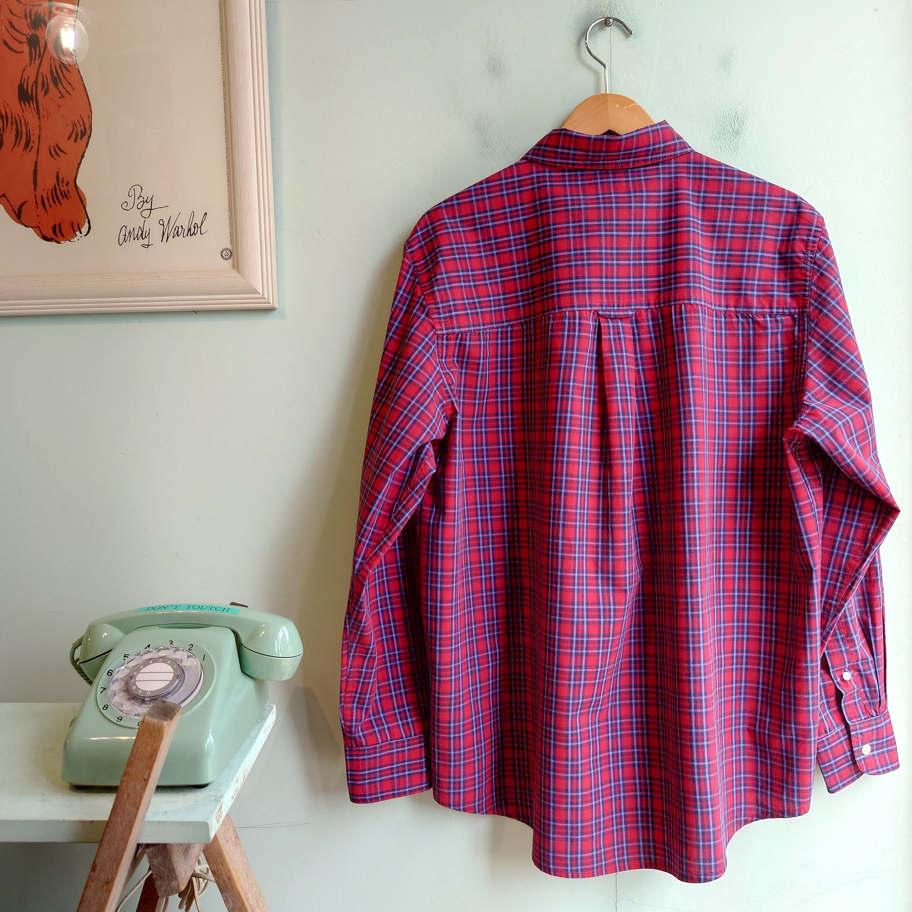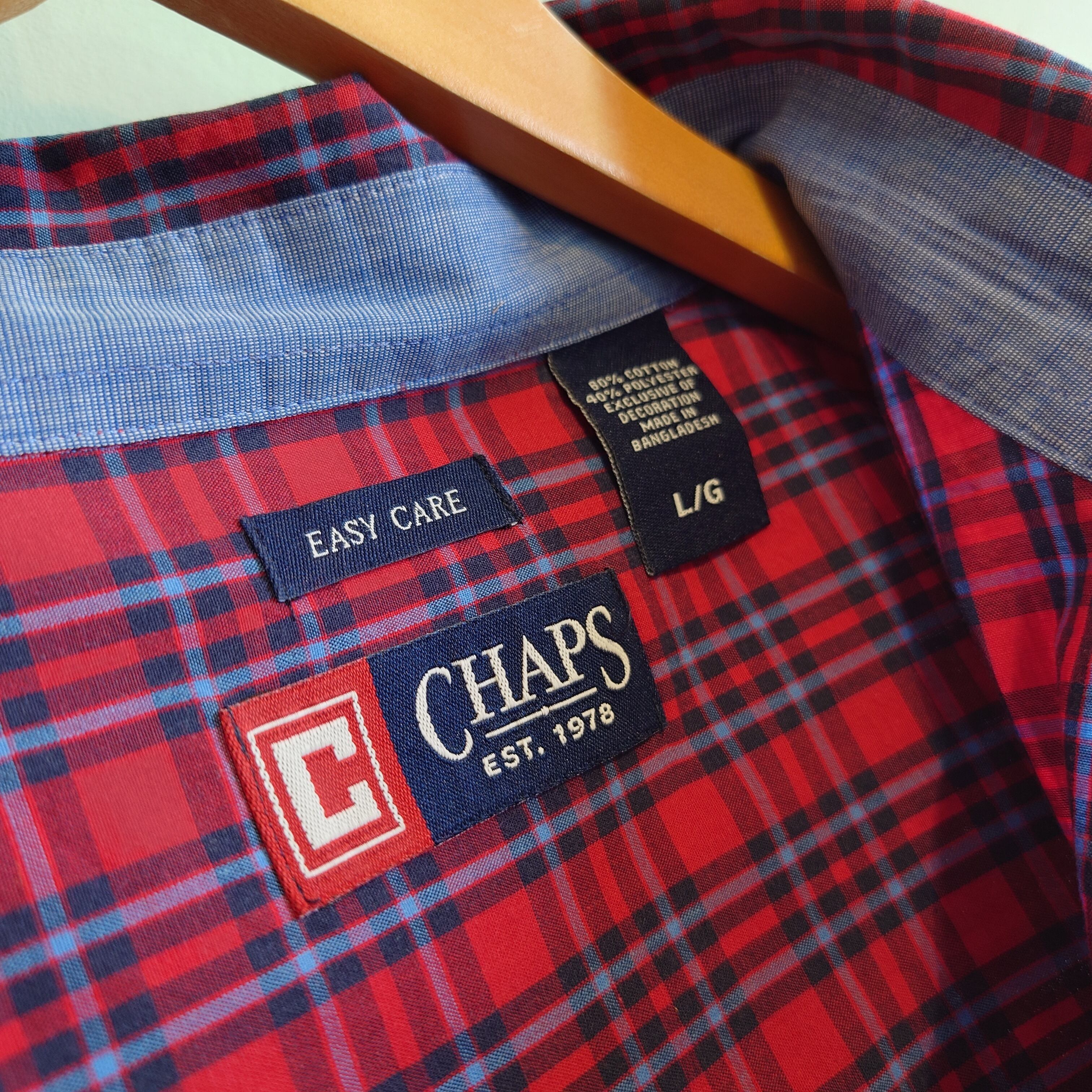 CHAPS 00s チェックシャツ ボタンダウンシャツ ワンポイントシャツ 赤系 L