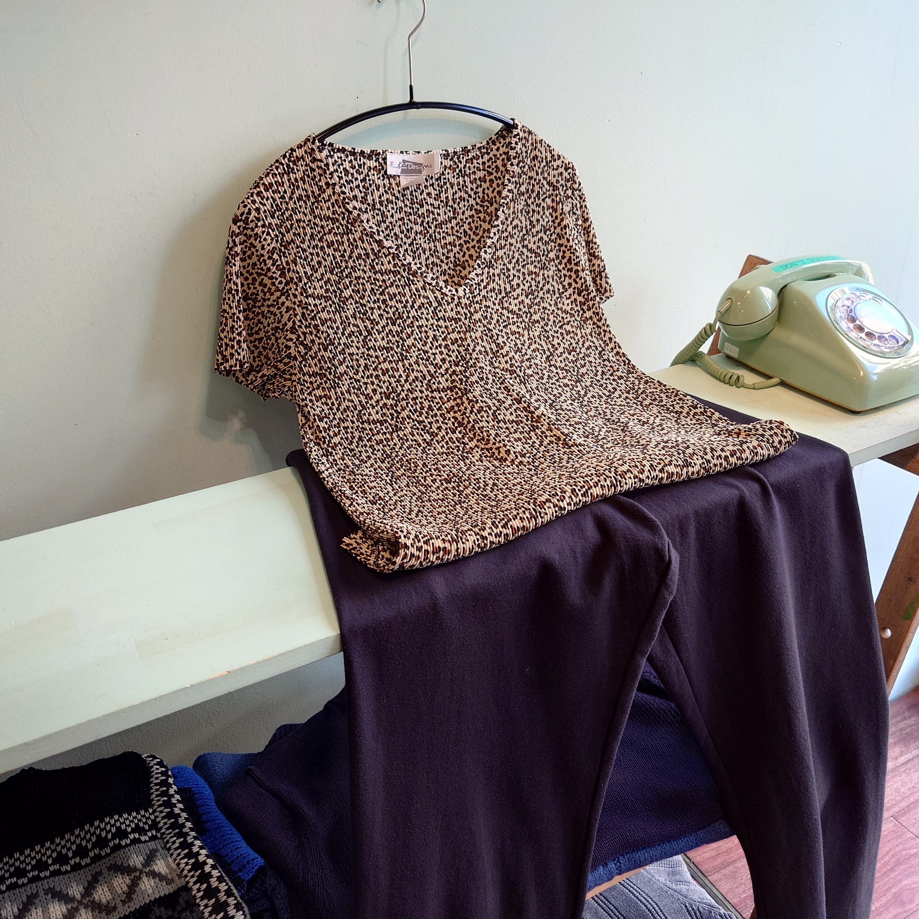 E.K. Designs 90s vintage 豹柄 レオパード柄 プリーツトップス ヴィンテージカットソー USA製