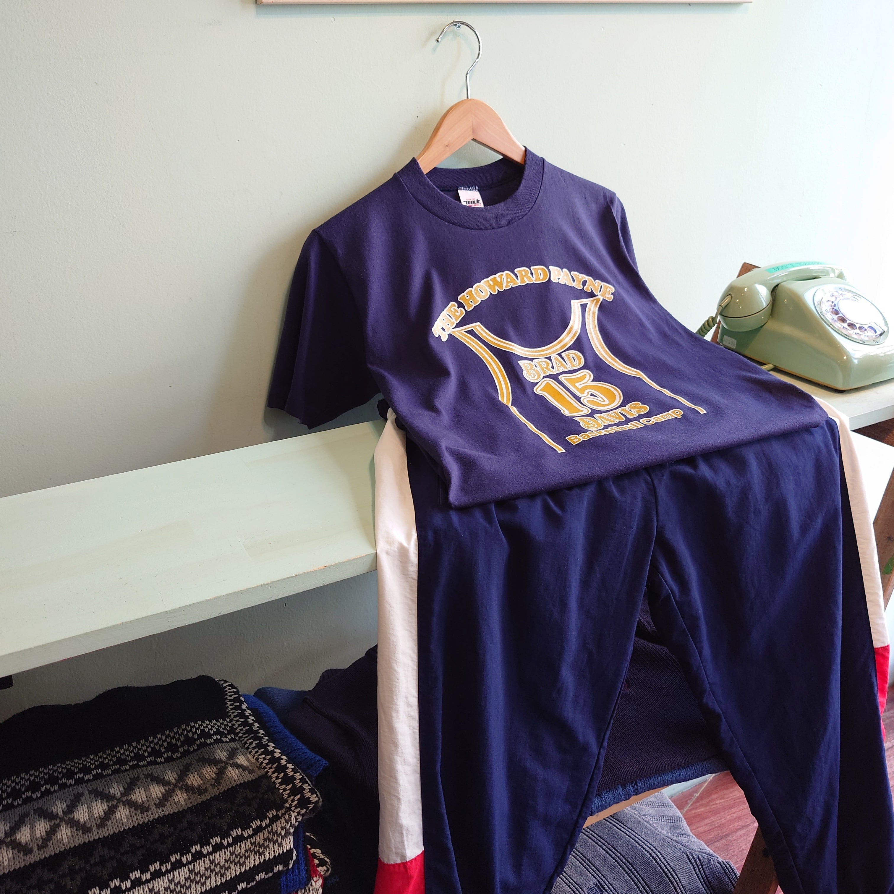 NBA有名選手、ブラッド・デイヴィス氏が主催したバスケットボールキャンプのヴィンテージTシャツ。ゲームシャツをモチーフにした“だまし絵感”がキュート。H. WOLF&SONSの非常に非常に味のあるボディーにも注目。