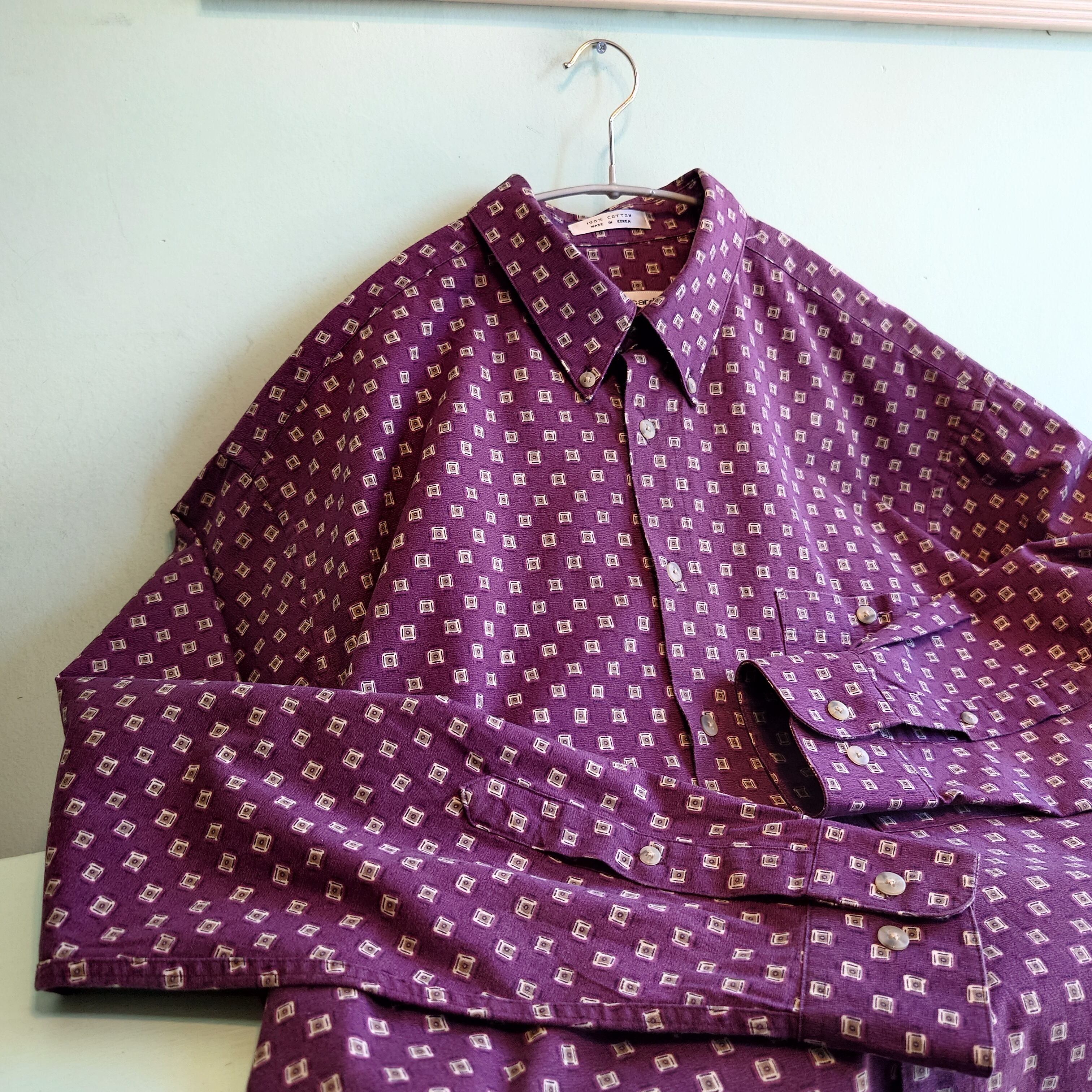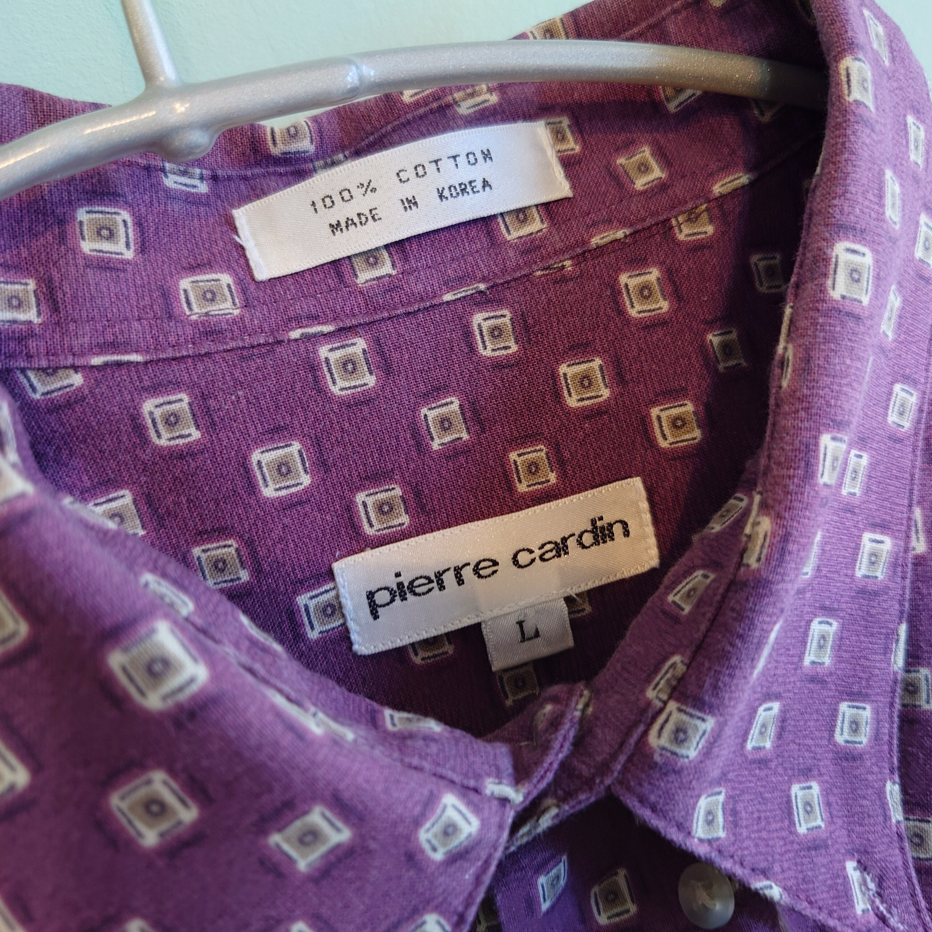 Pierre Cardin 90-00s 総柄シャツ ドレスシャツ オールパターンシャツ 小豆色 紫系 L