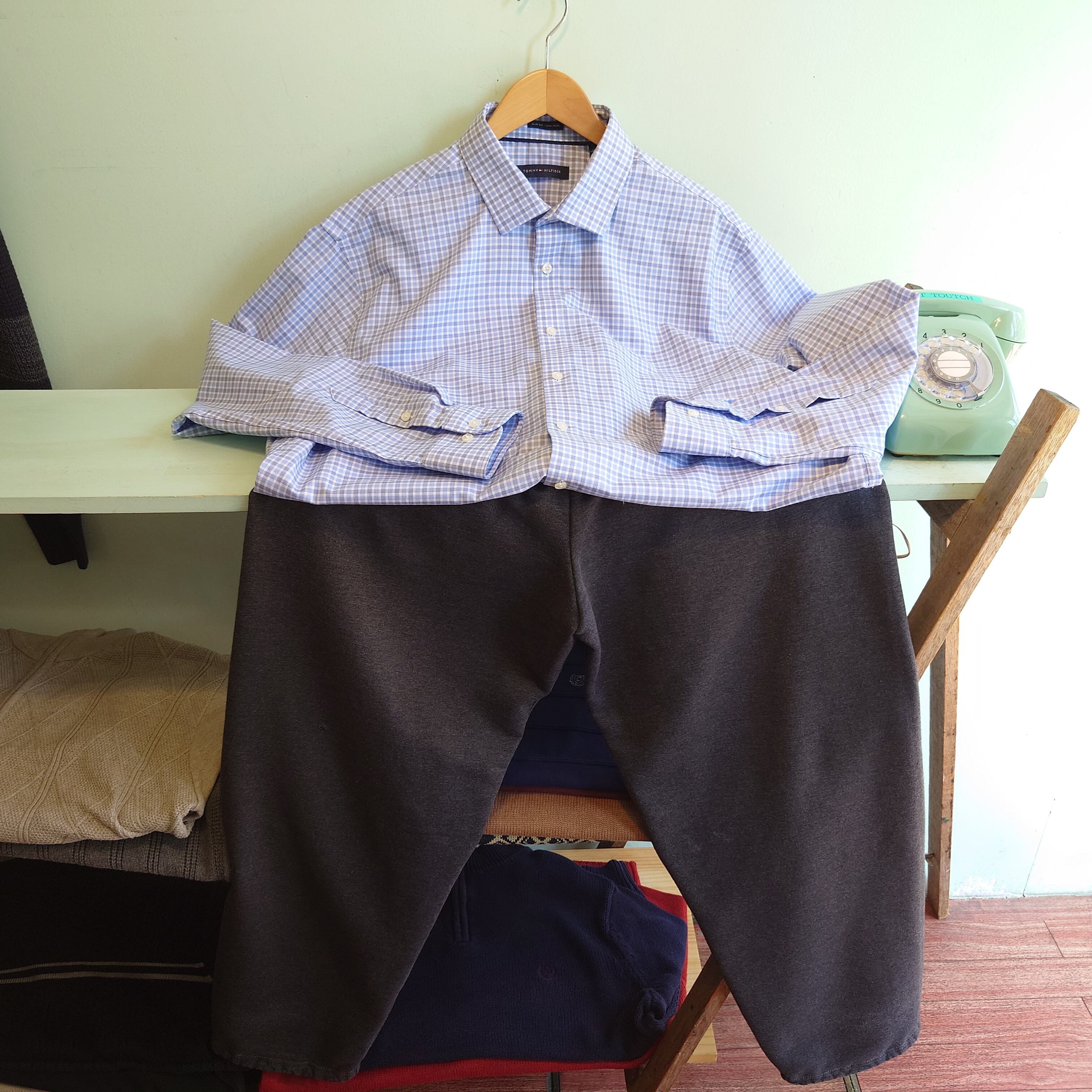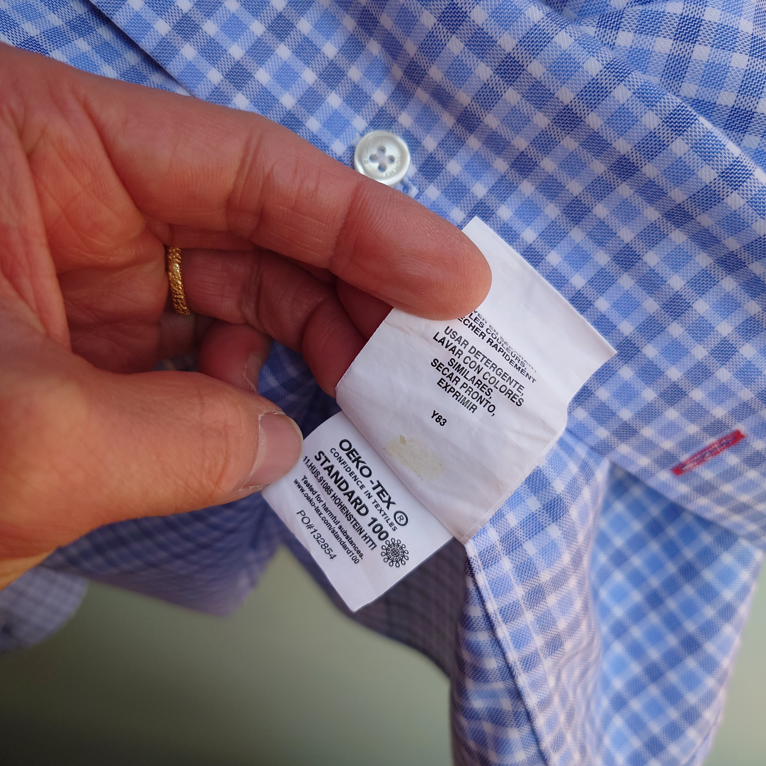 トミーヒルフィガーのチェックシャツ。ドレスシャツタイプの襟、ギンガムチェックは通常より大きめなスパンで、シャープさとゆるさのバランスがいい。ラストボタンには赤いステッチでさり気なくアクセント。古着コーデからきれいめ、プレッピーまで使い回しOK。