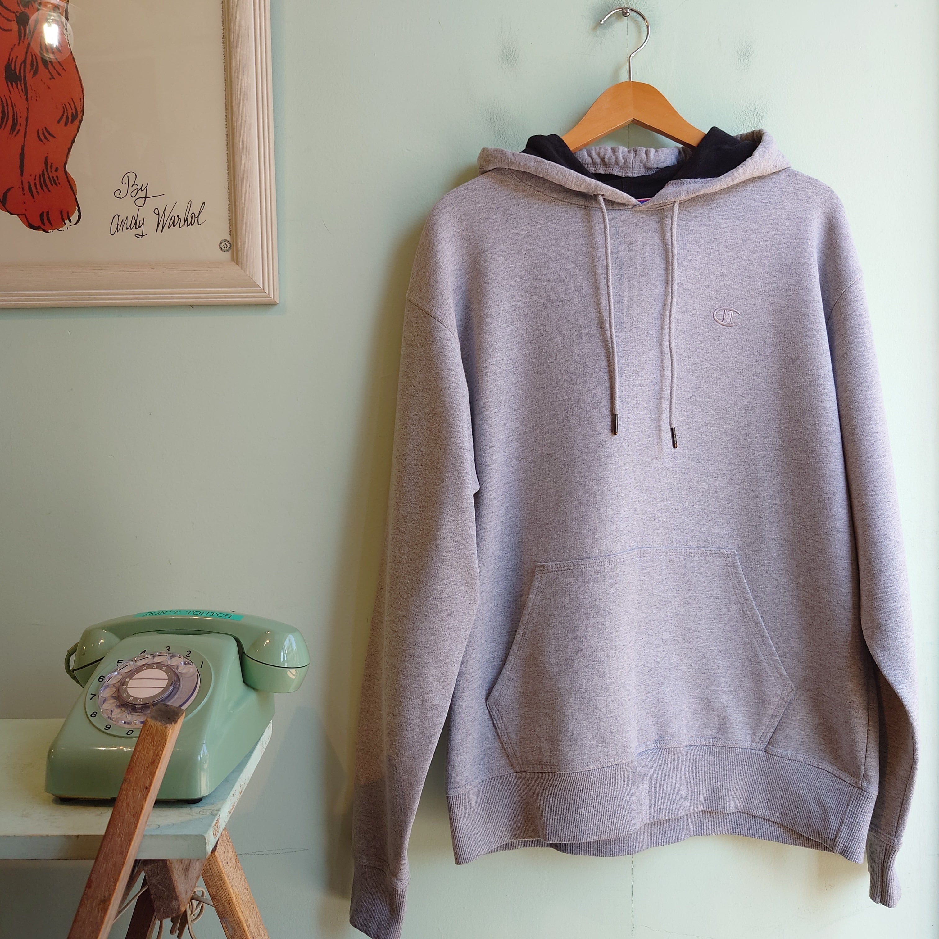 ◎Champion 00s スウェットパーカー フーディー ワンポイント ロゴパーカー グレー L