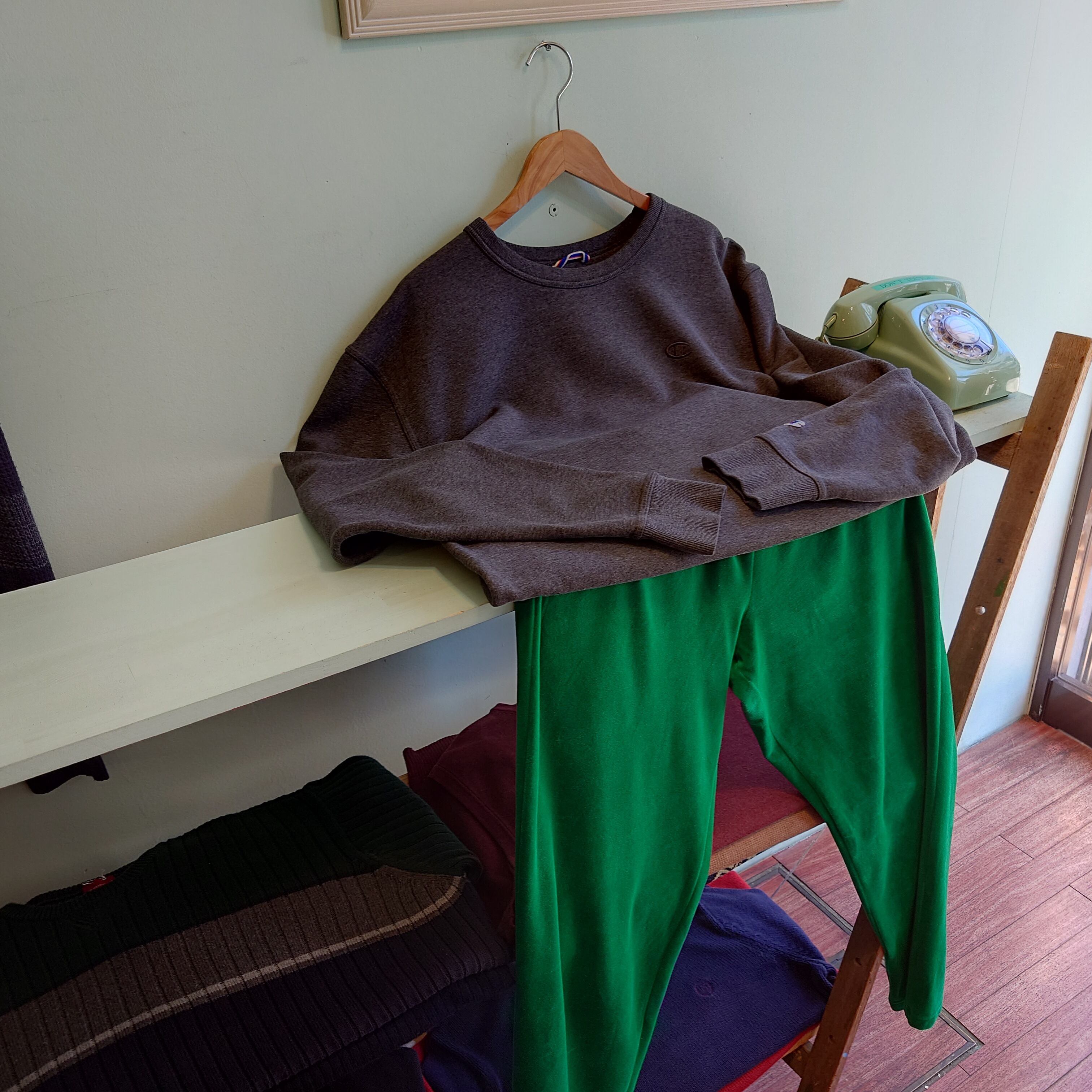 シャープながらブラックよりも柔らかみのある、濃いめダークグレーのロゴChampion。起毛は軽めでロンT感覚で合わせるのもOKな個体。ボトムで個性を出すのも良し、シンプルそのままに合わせるもよし、合わせ方無限大。