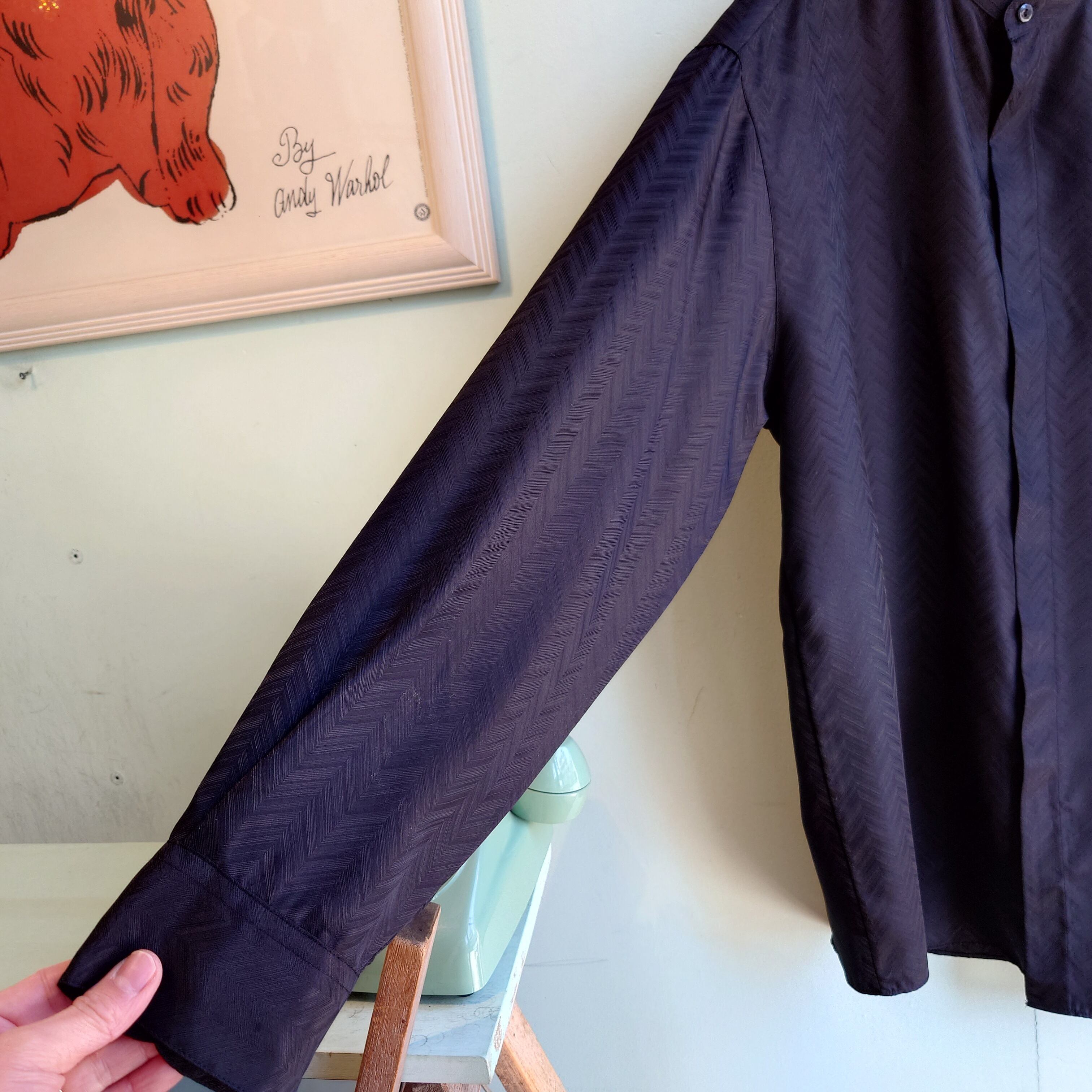 CITY STREETS 90s vintage スタンドカラーシャツ 総柄シャツ ドレスシャツ 黒 L