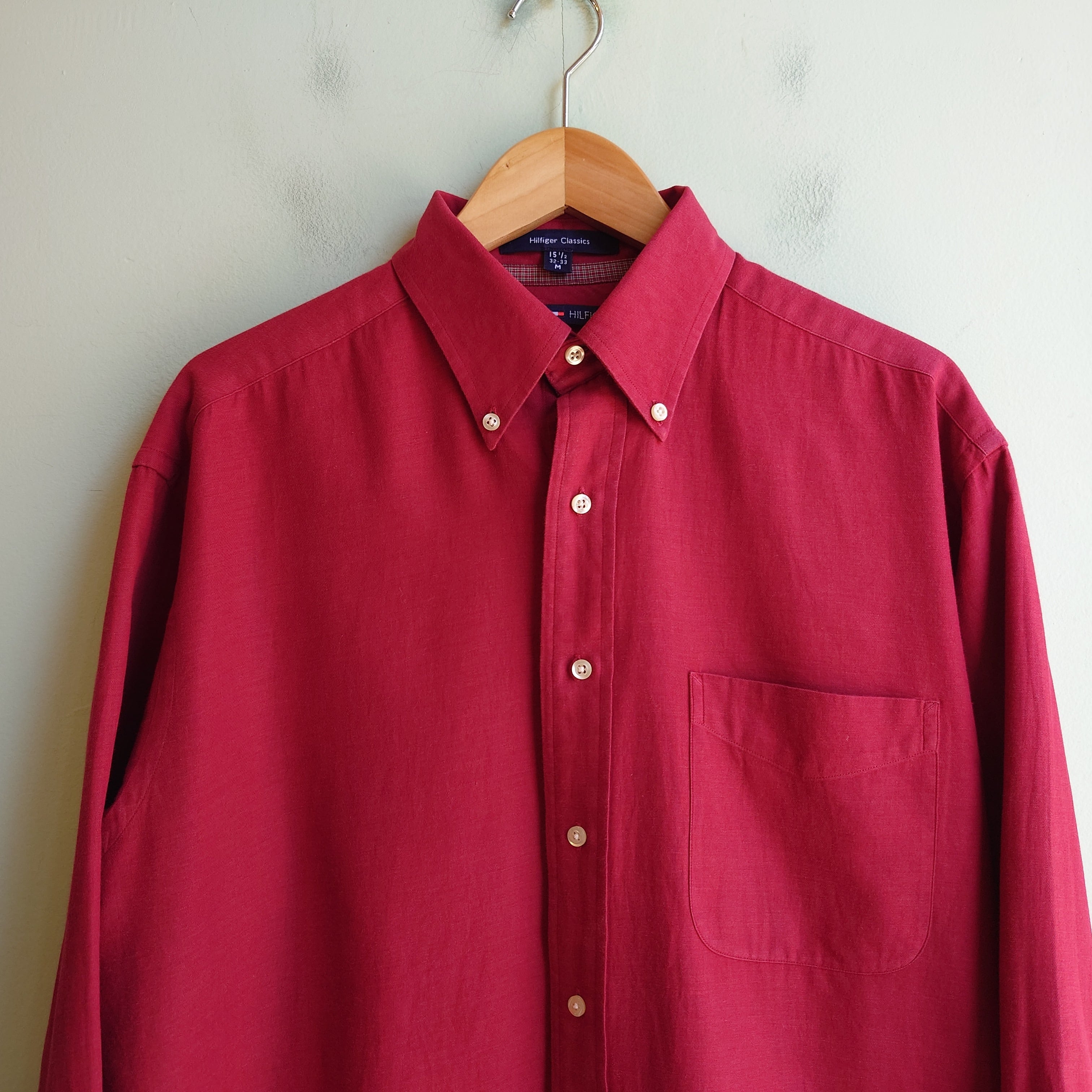 ◎TOMMY HILFIGER 00s コットンカラーシャツ ボタンダウンシャツ 赤系
