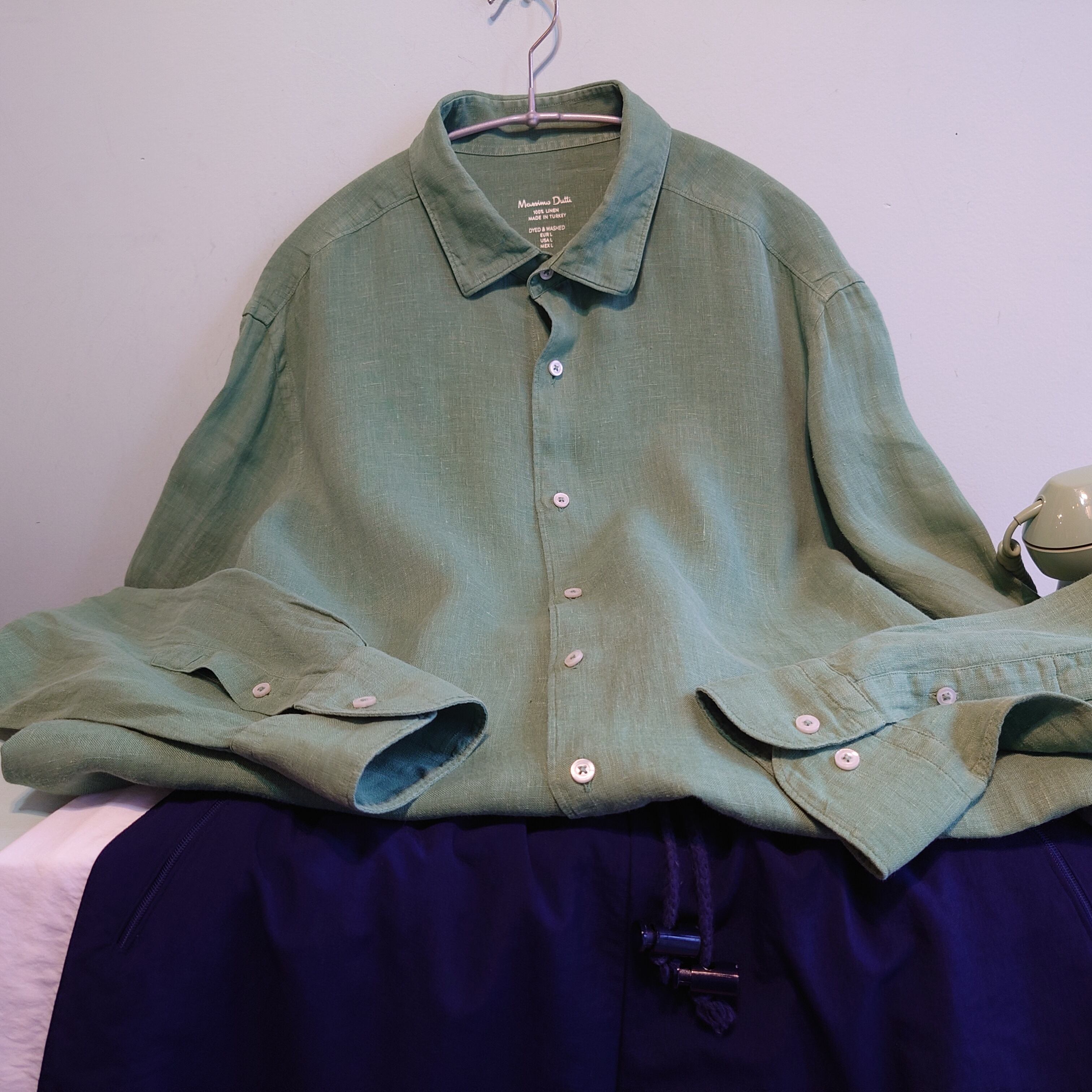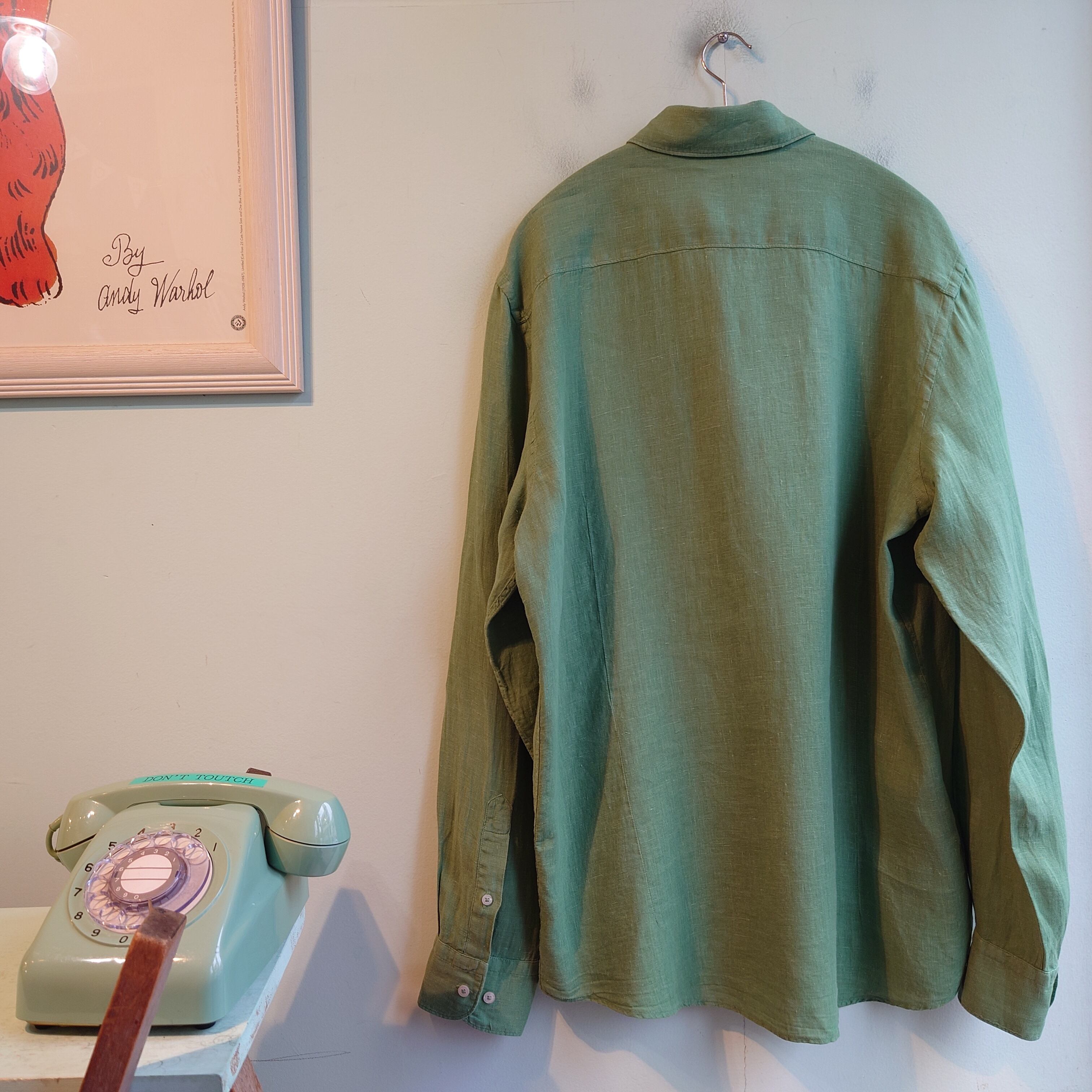 ◎Massimo Dutti リネンシャツ ドレスシャツ カラーシャツ L グリーン系 若草色