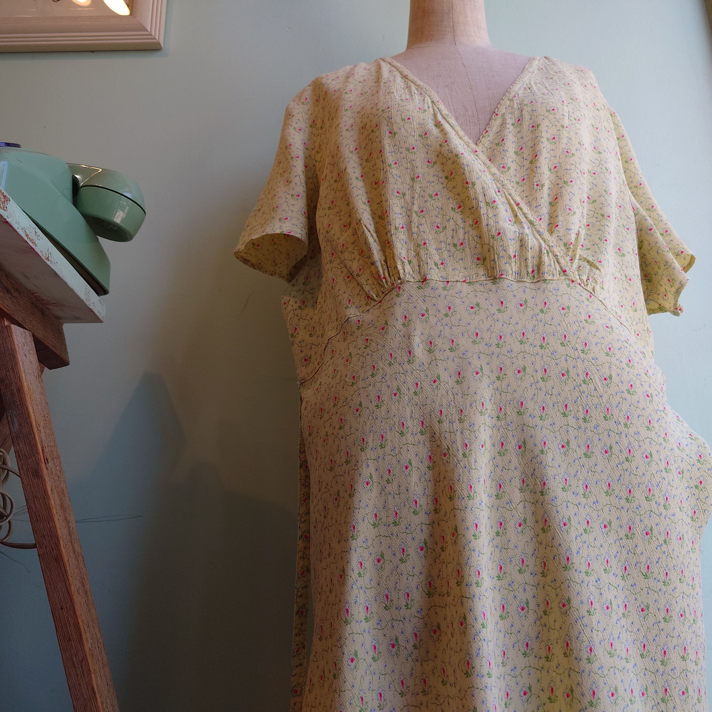 April Cornell 90-00s カシュクールワンピース 総柄ワンピース レモンイエロー 花柄 L