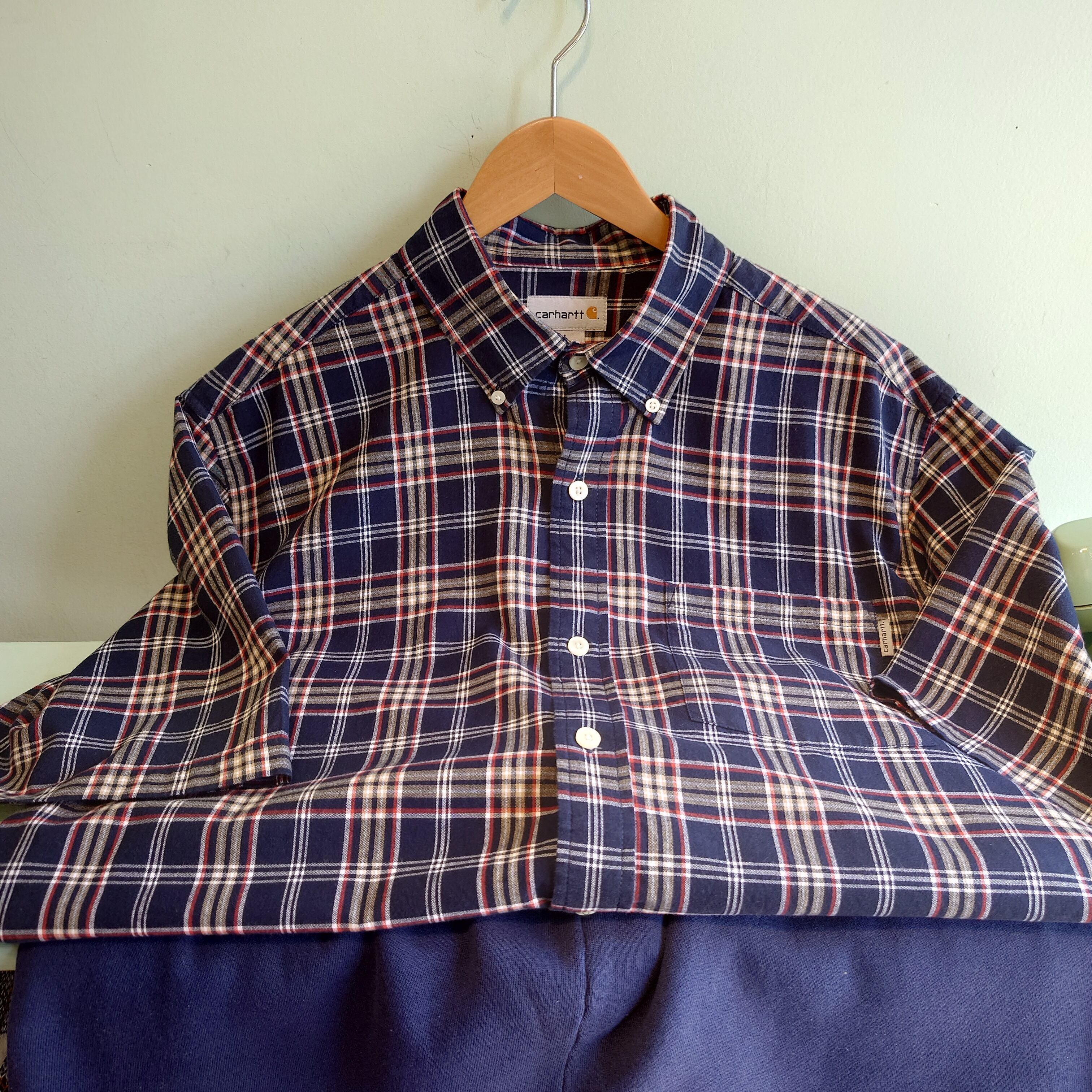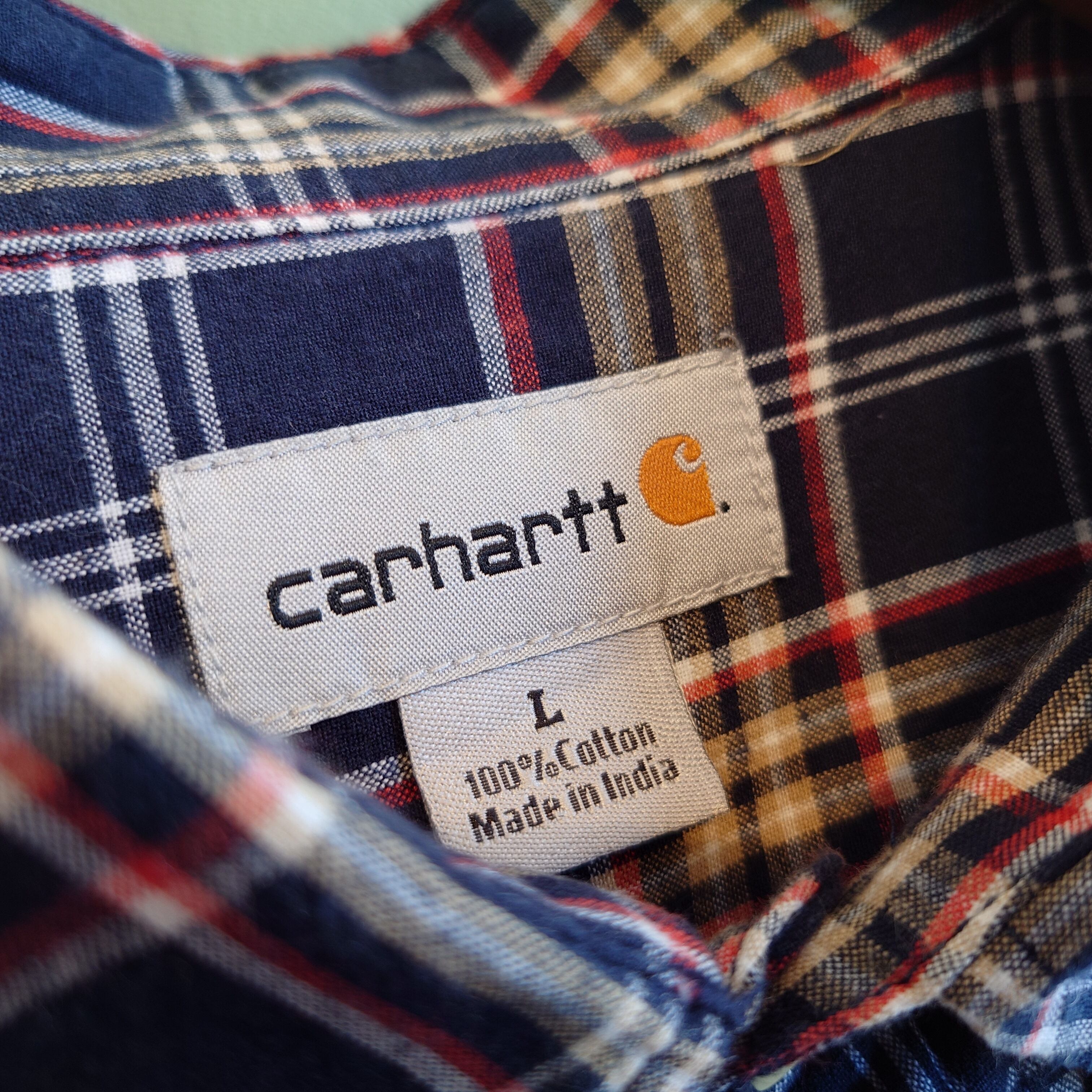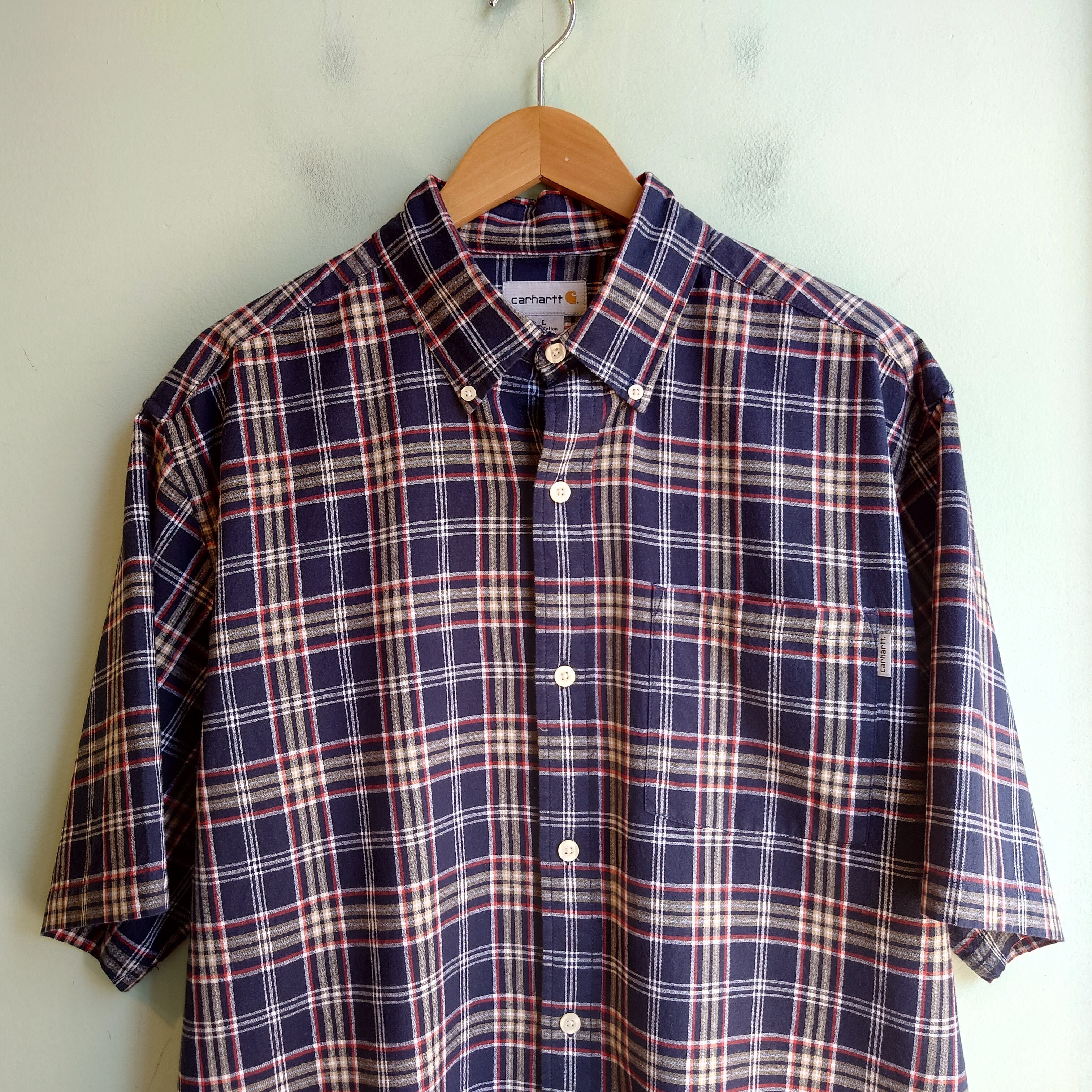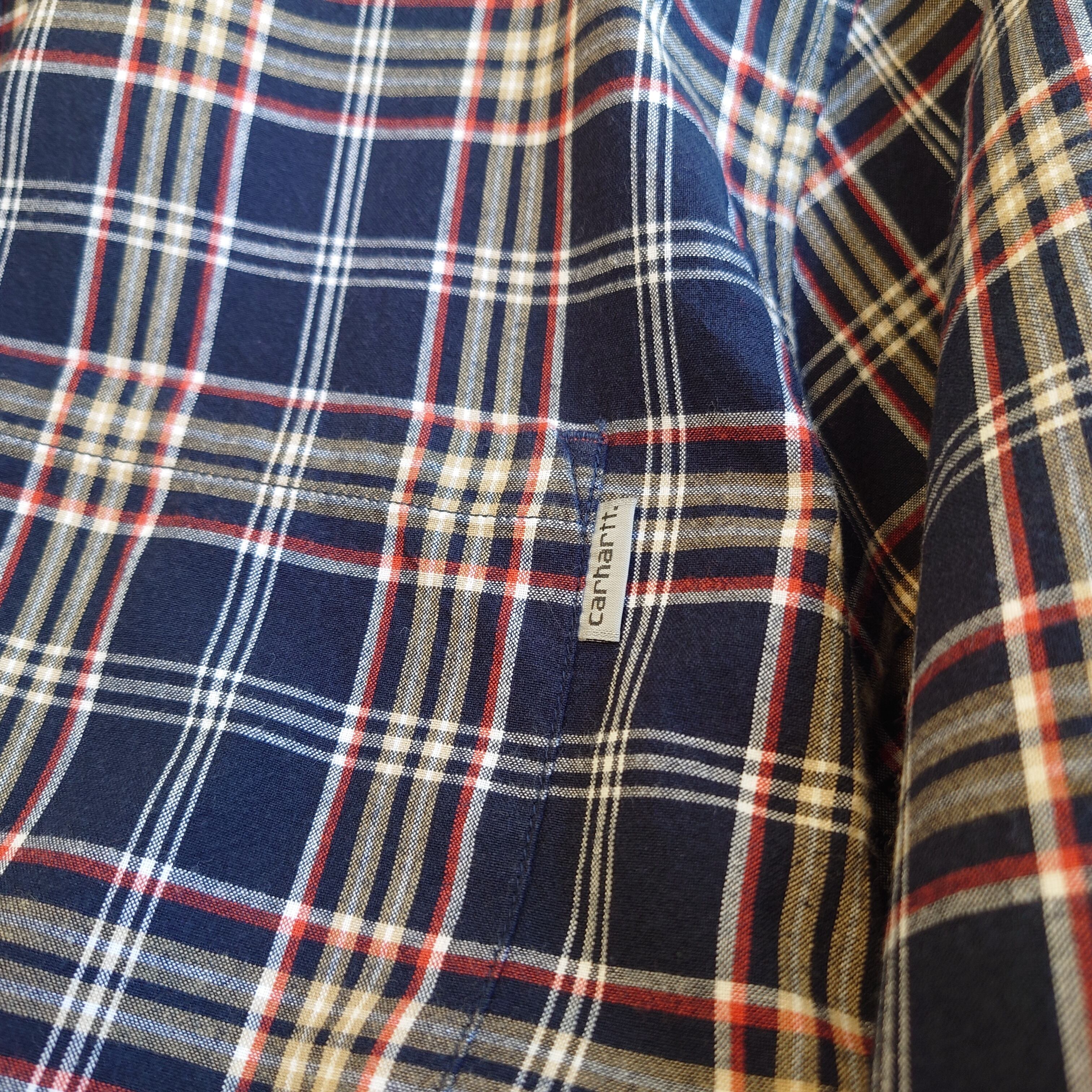 Carhartt チェックシャツ ボタンダウンシャツ ワークシャツ L ネイビー/ブラウン/レッド/ホワイト