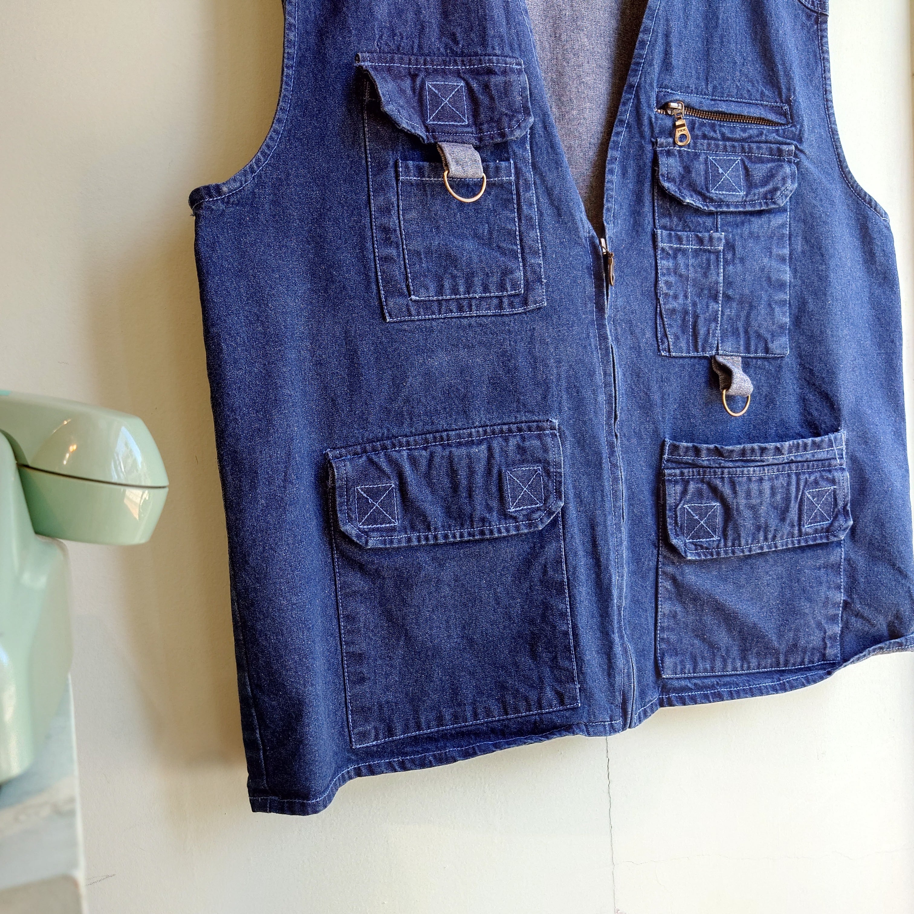 ◎Scandia Woods 90-00s デニムベスト マルチポケットベスト ハンティングベスト 濃紺 M