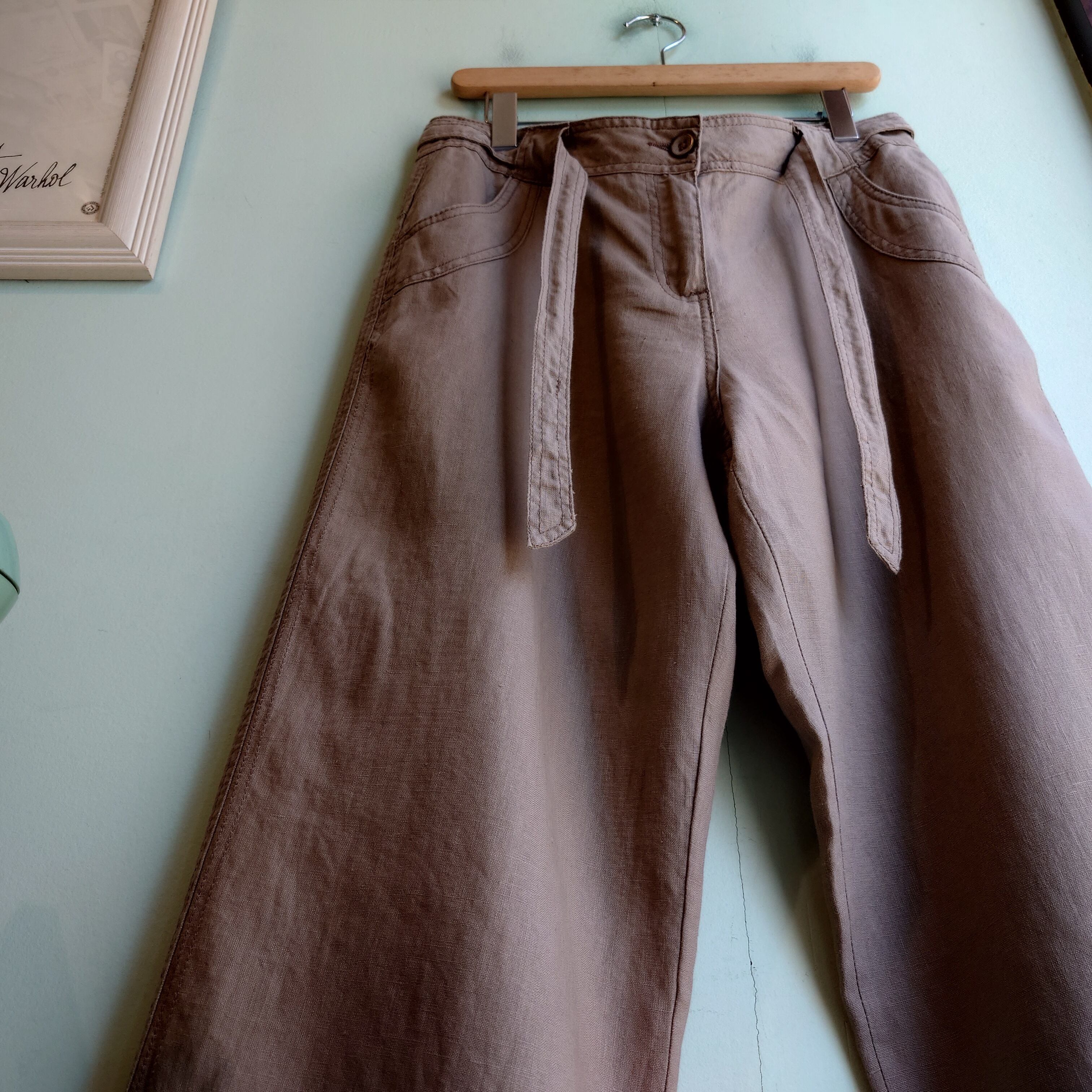 リネンパンツ リゾートイージー ワイドシルエット ベージュ レディースXL程度