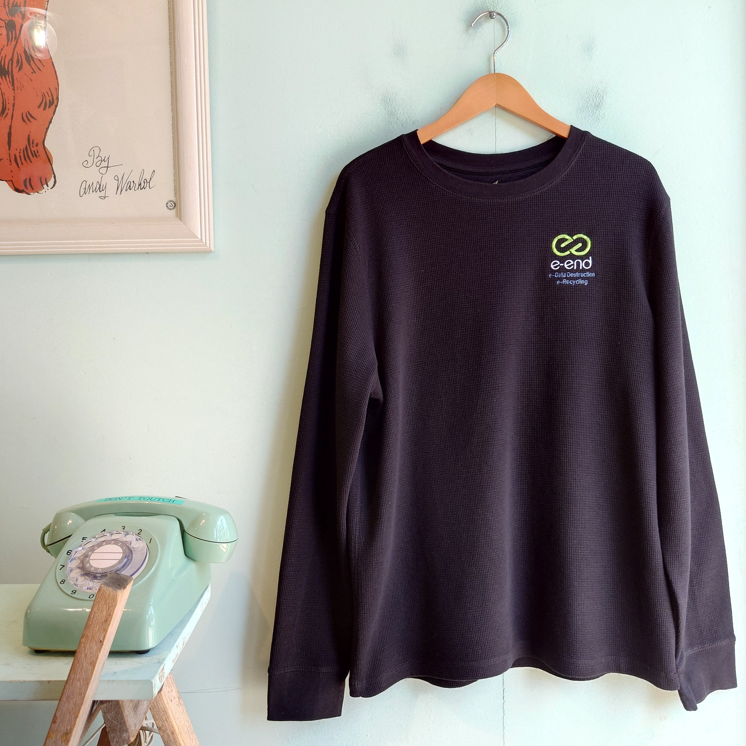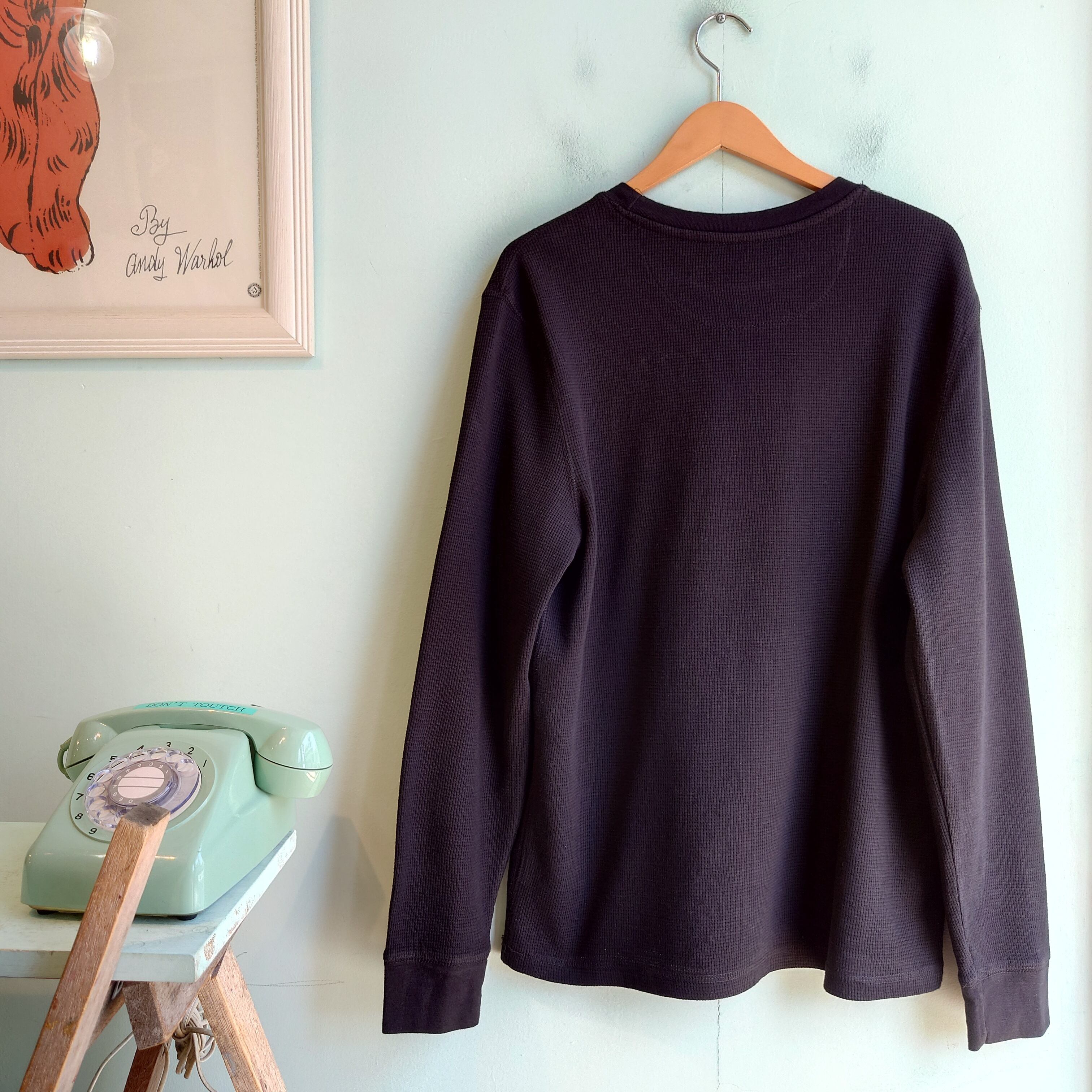 Faded Glory 企業ロゴ サーマルカットソー アドバタイジングサーマル 黒 ブラック L