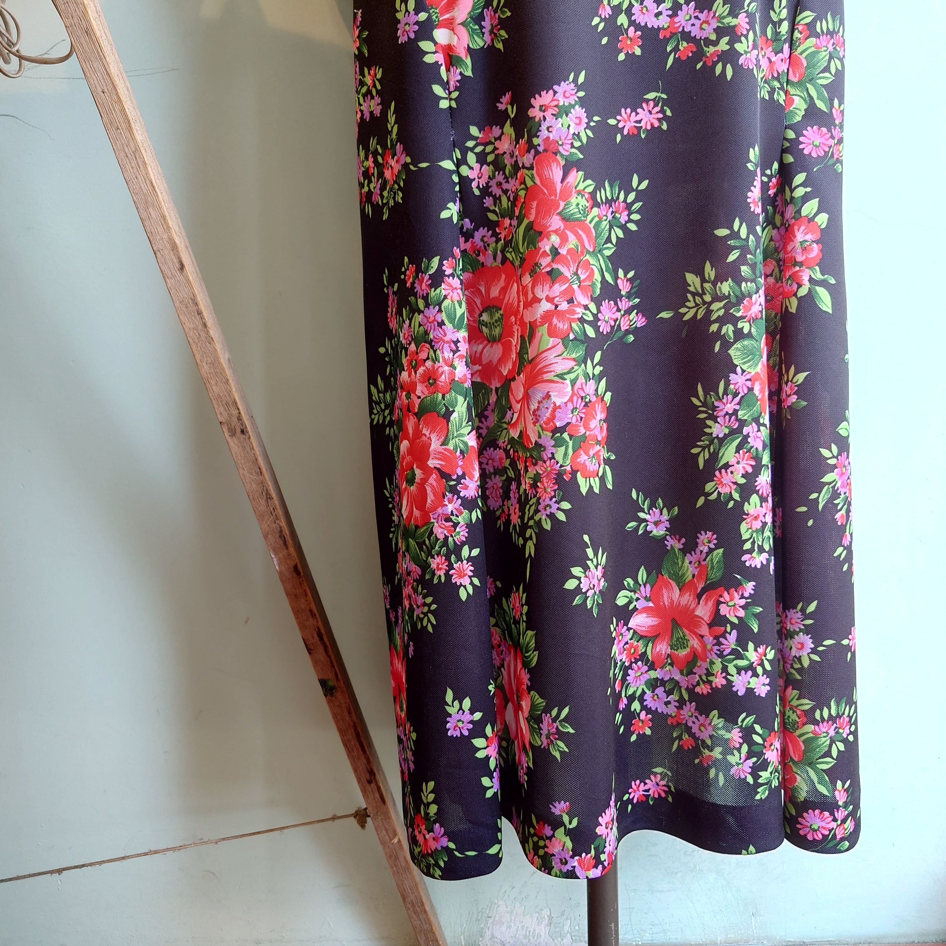 Miss Mary of Sweden 70-80s vintage ヴィンテージドレス プルオーバードレス 花柄 英国製 黒 TALONZIP