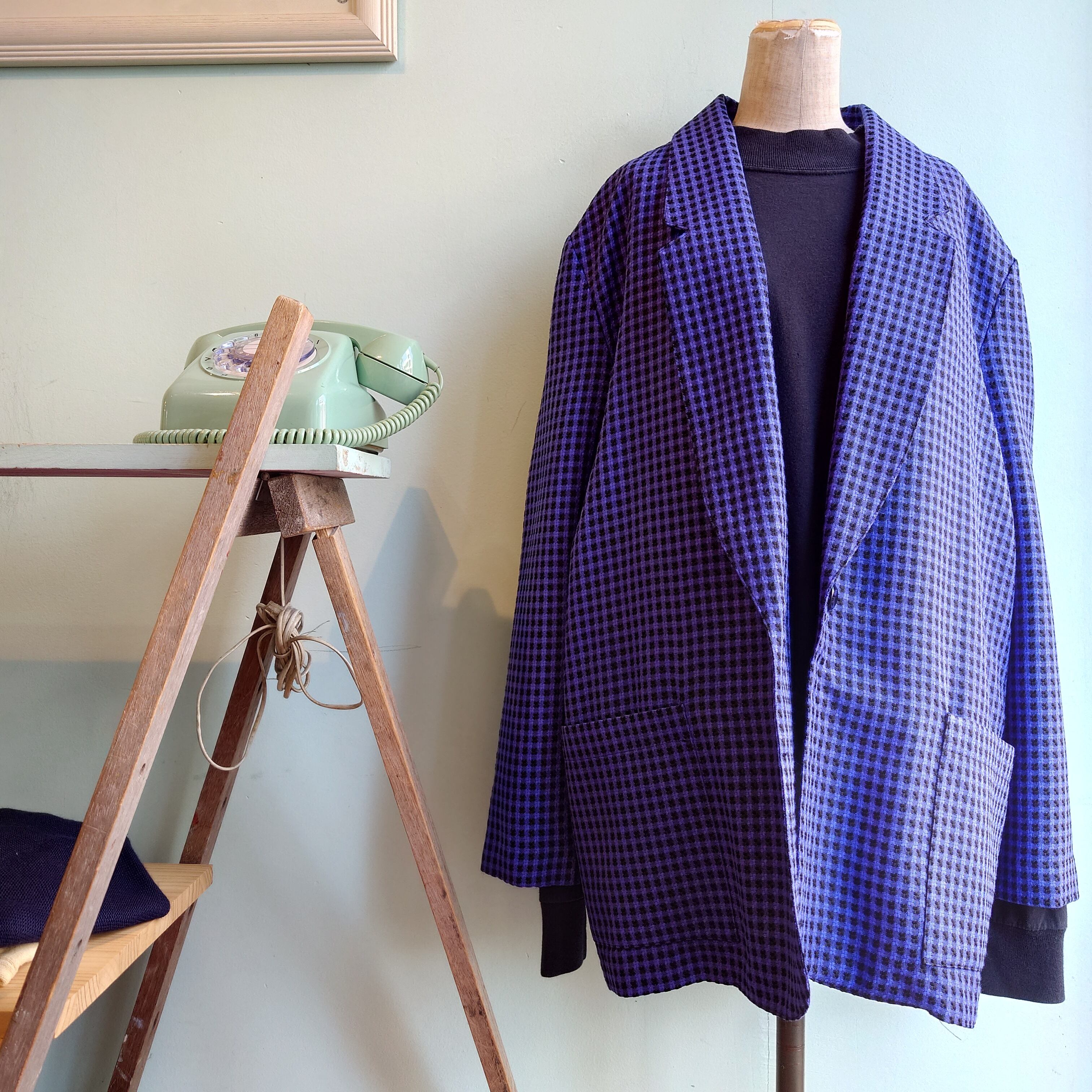 Requirements 80-90s vintage イージーテーラードジャケット チェックジャケット ブラック×パープル USA製 変わり種 異素材