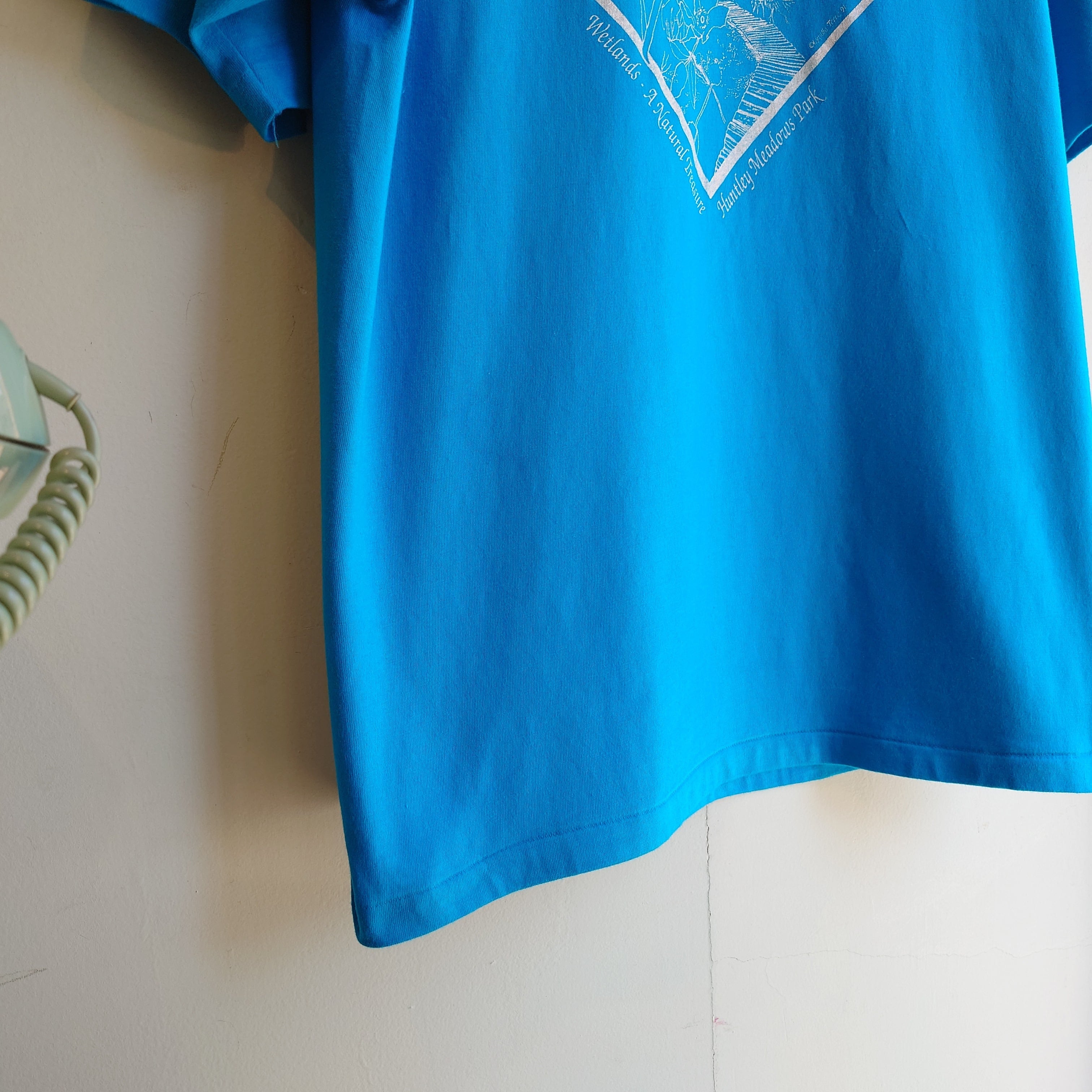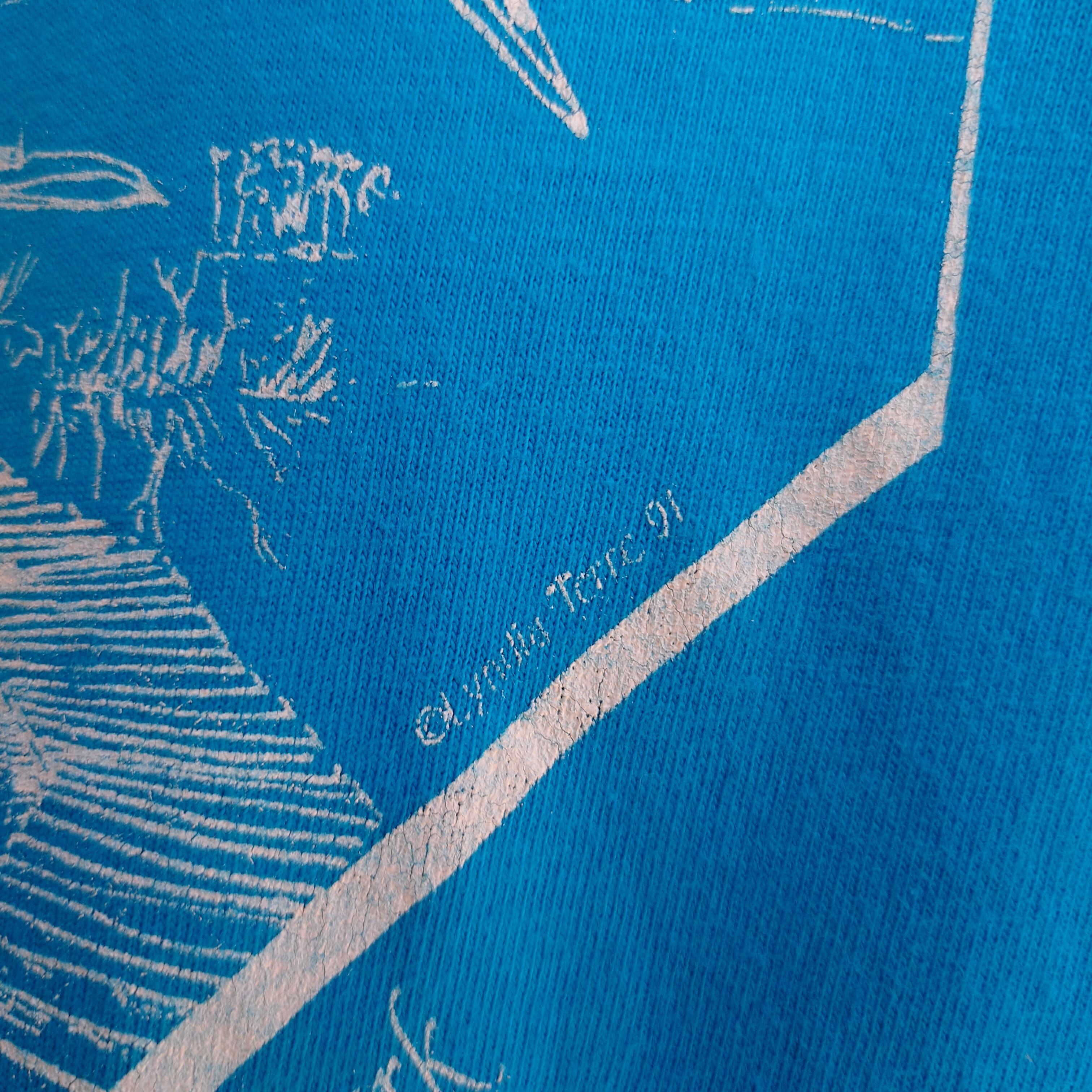 ◎Hanes 1991s アート系 ヴィンテージTシャツ ネイチャープリントTシャツ 鳥 アニマル 風景 青系USA製 L