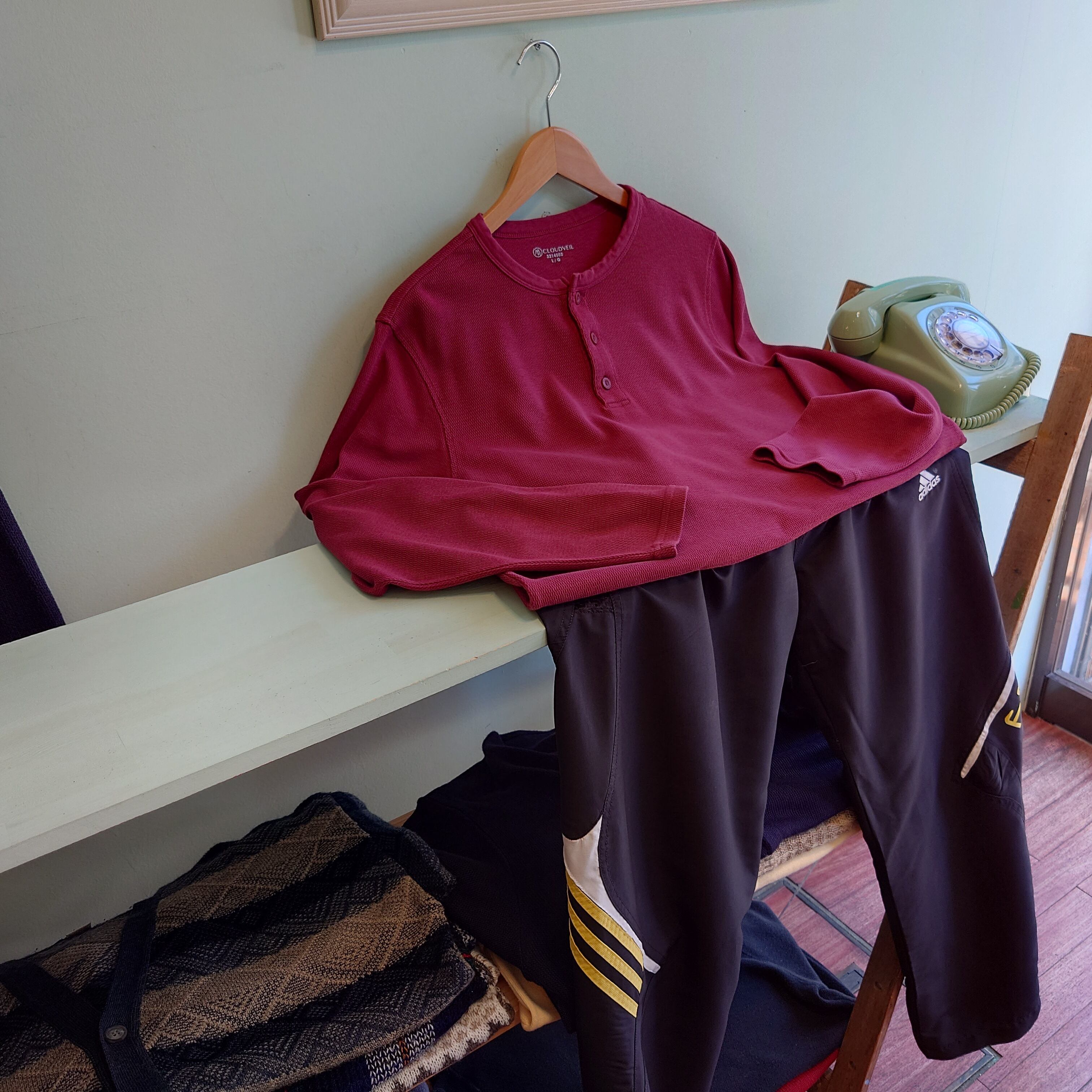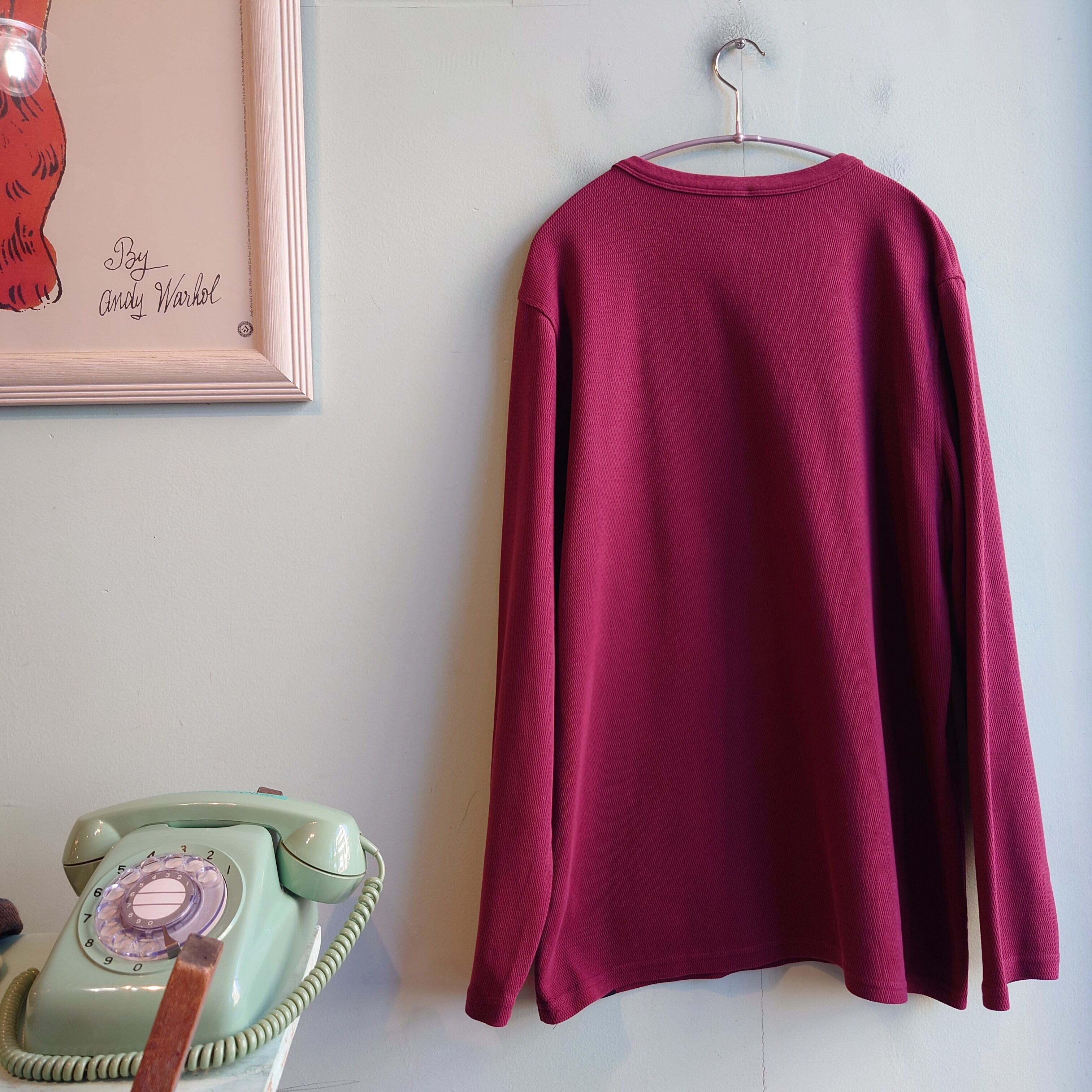 ワッフルカットソー ヘンリーサーマル L バーガンディー エンジ