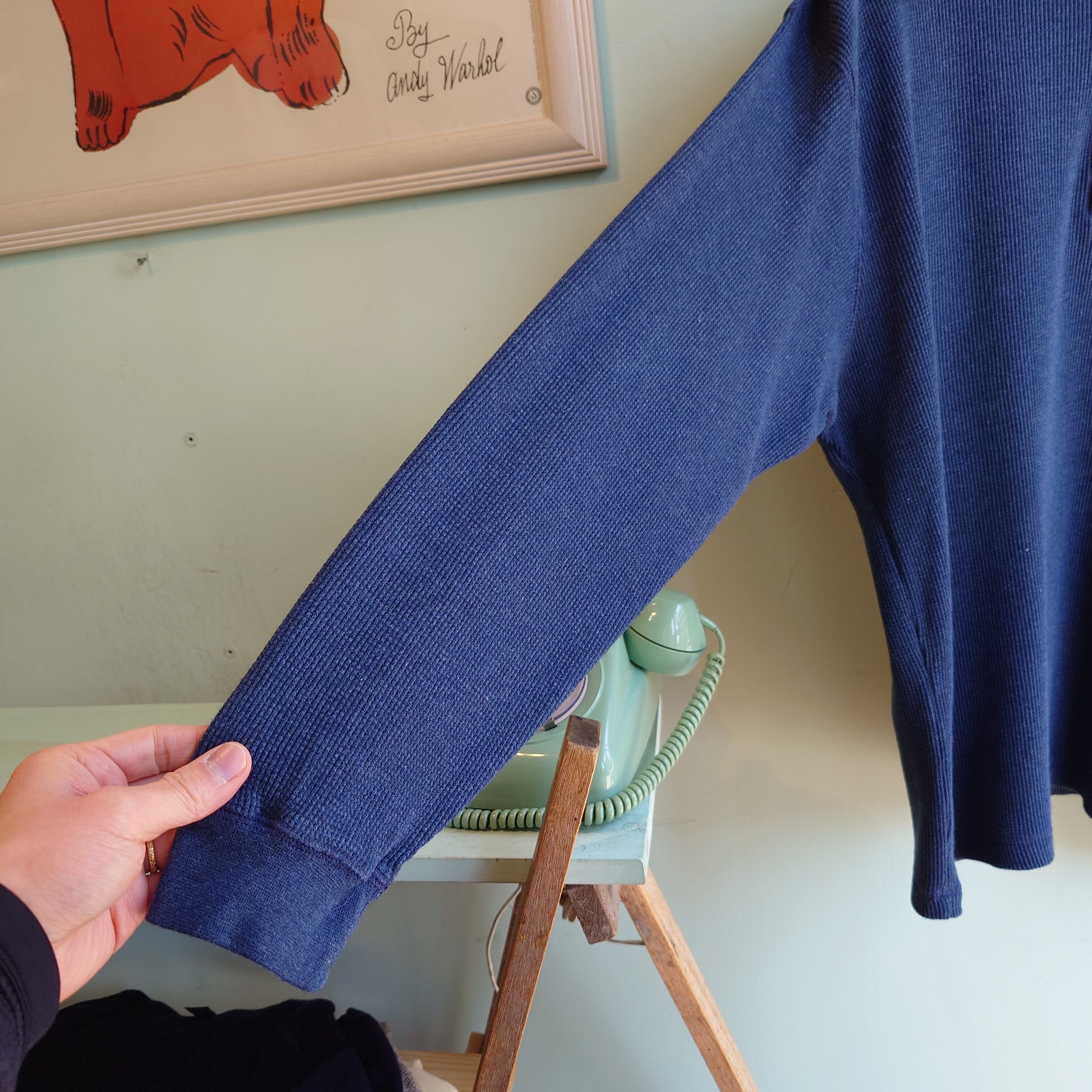 NATURALIFE 90-00s サーマルカットソー ヘンリーサーマル ワッフルカットソー ネイビー/ブルーグレー L