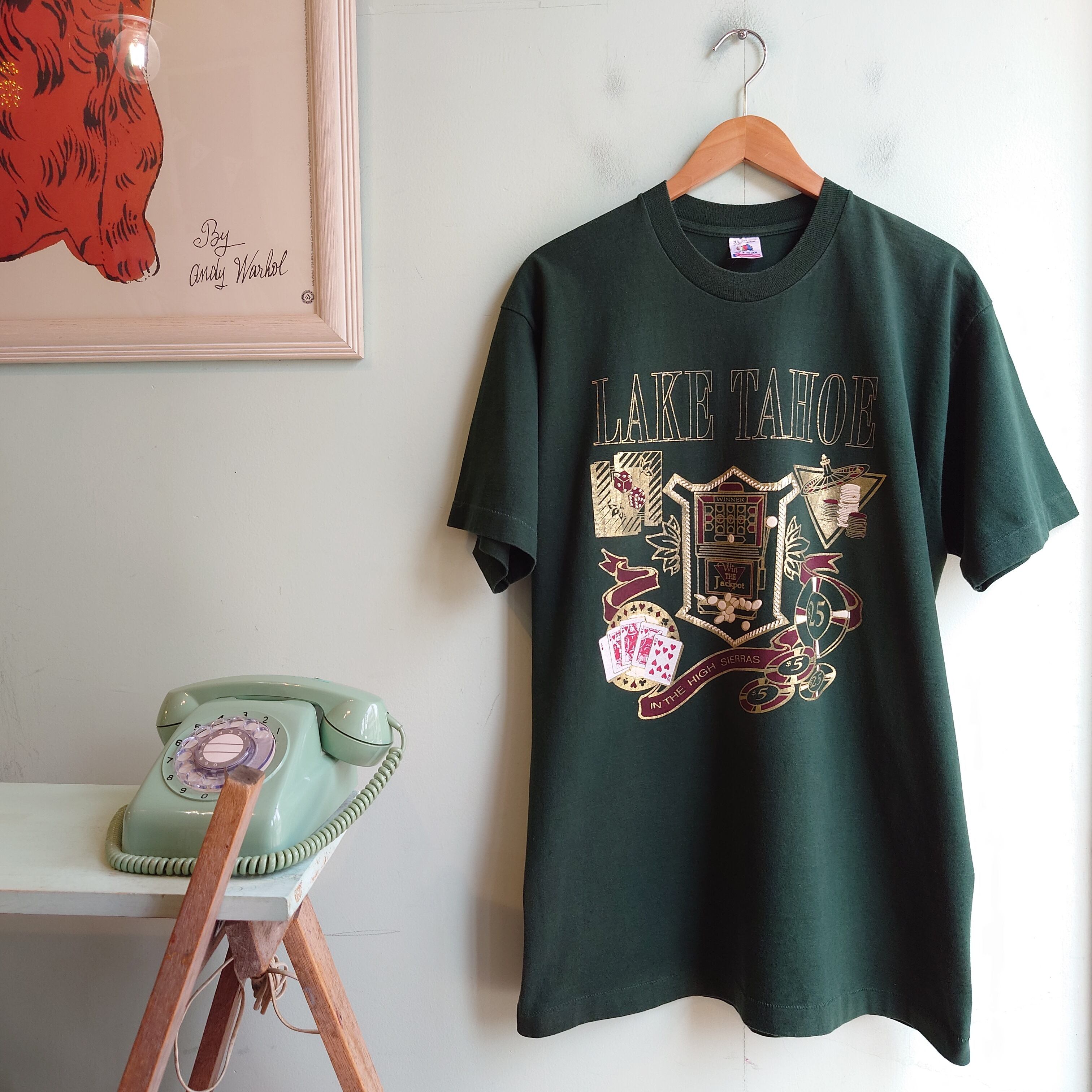 FRUIT OF THE LOOM 90s vintage カジノ柄 ヴィンテージTシャツ スーベニアTシャツ Tワンピ USA製 ダークグリーン XL