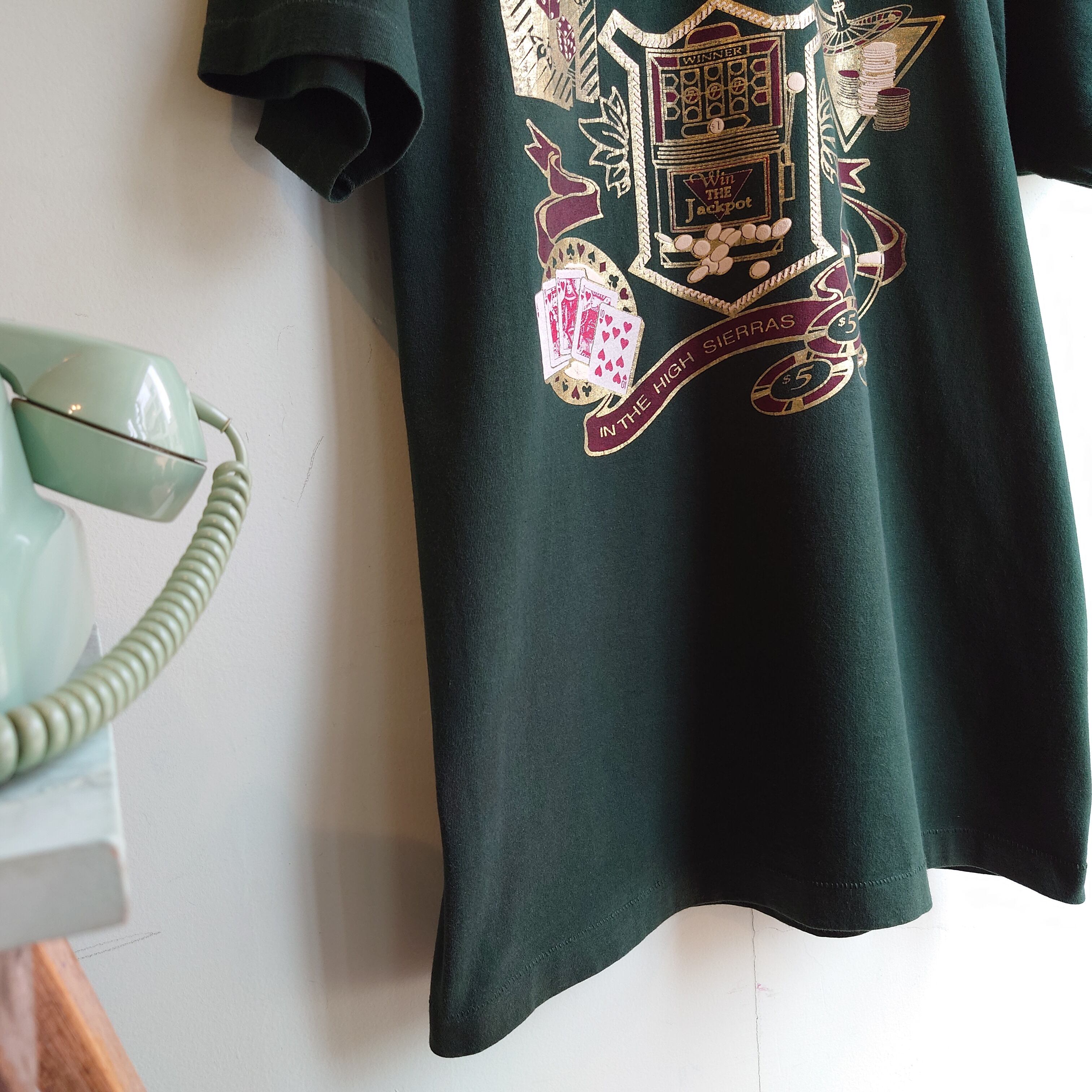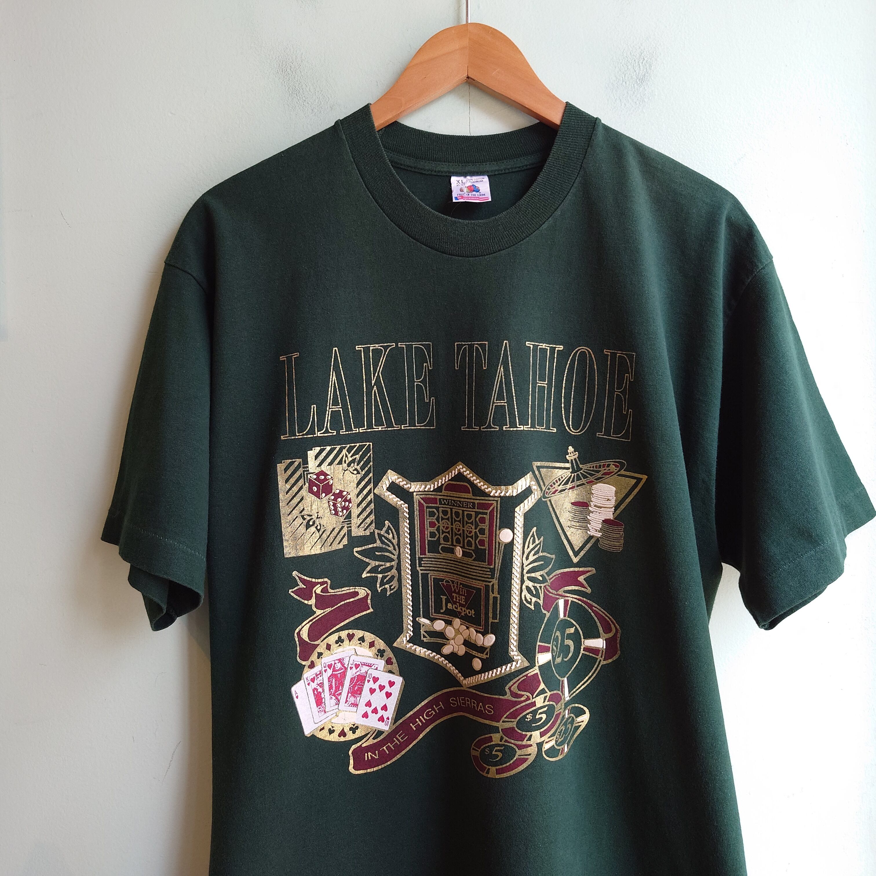 ◎FRUIT OF THE LOOM 90s vintage カジノ柄 ヴィンテージTシャツ スーベニアTシャツ Tワンピ USA製 ダークグリーン XL