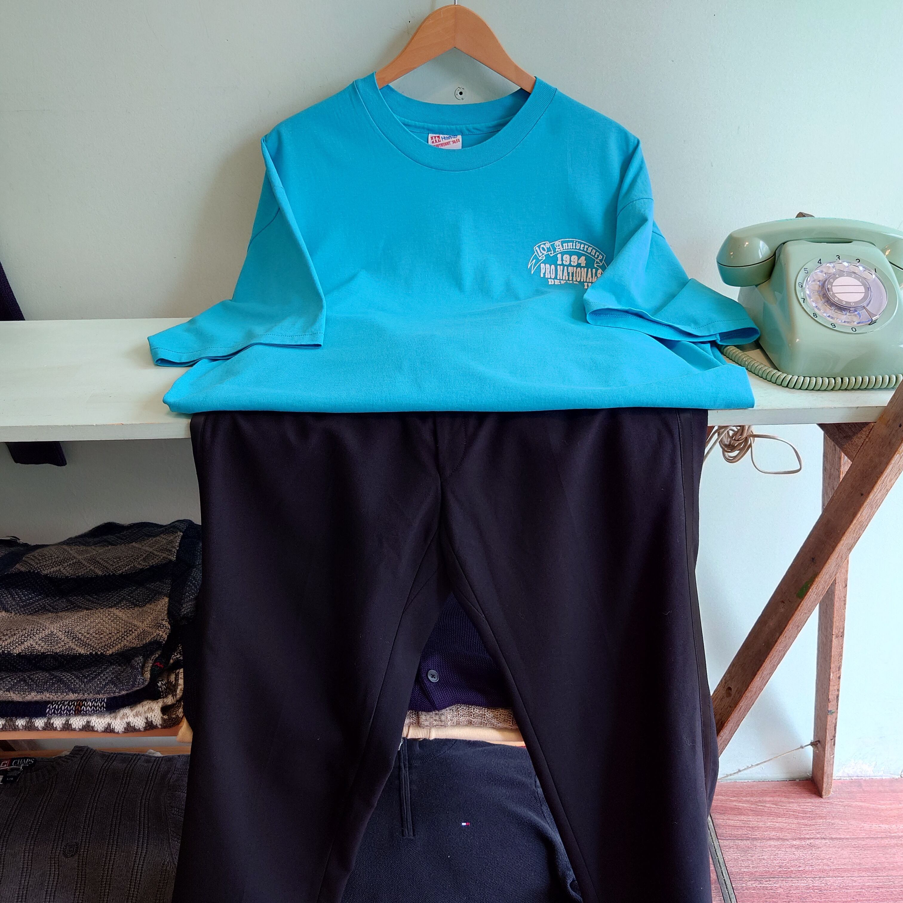 ◎HANES 90s vintage ヴィンテージTシャツ アドバタイジングTシャツ XL 青系 シングルステッチ