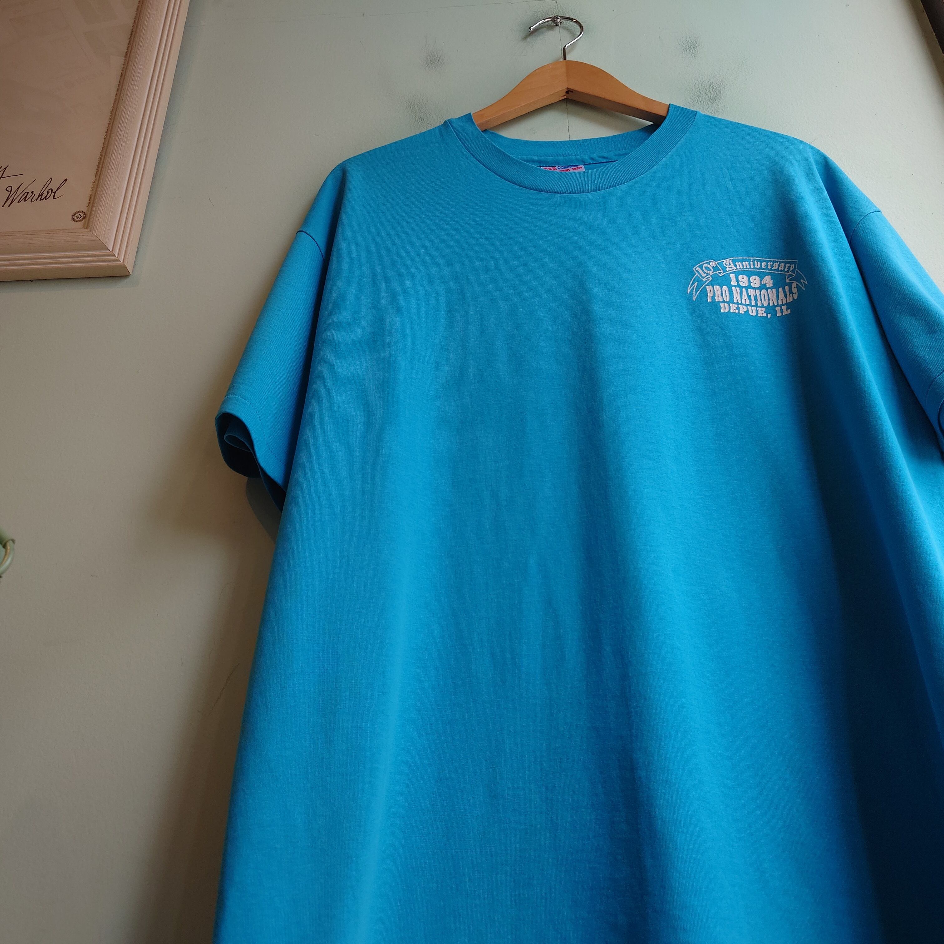 1994年にイリノイ州で開催された、モーターボートレースのヴィンテージTシャツ。ダイナミックにかすれ感のあるプリントが歴史を刻んだ一枚。混ざり感のある青も爽やかでプリントとの相性も抜群。