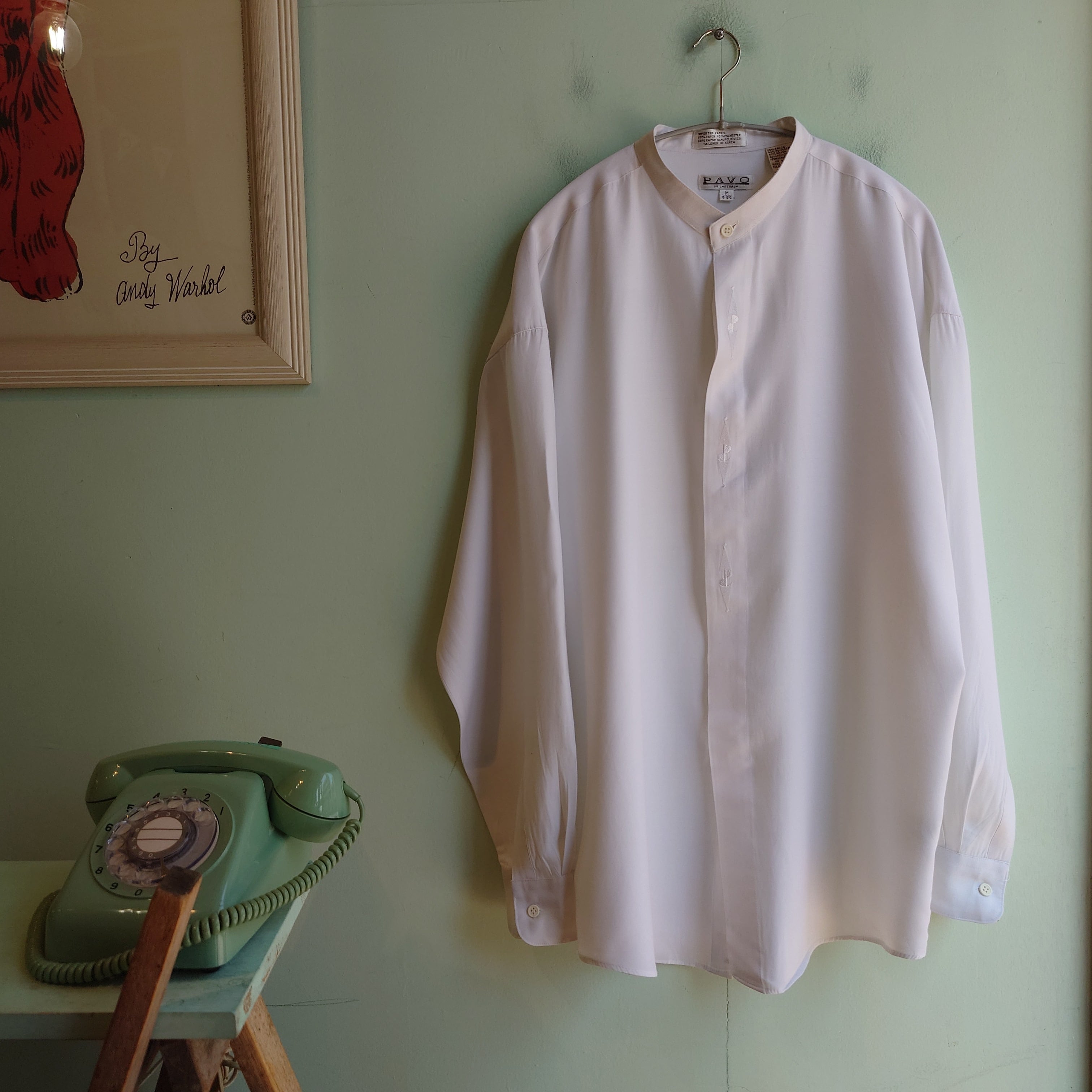 ◎Pavo by Lastrada 90s vintage ドレスシャツ バンドカラーシャツ 白シャツ 刺繍 M