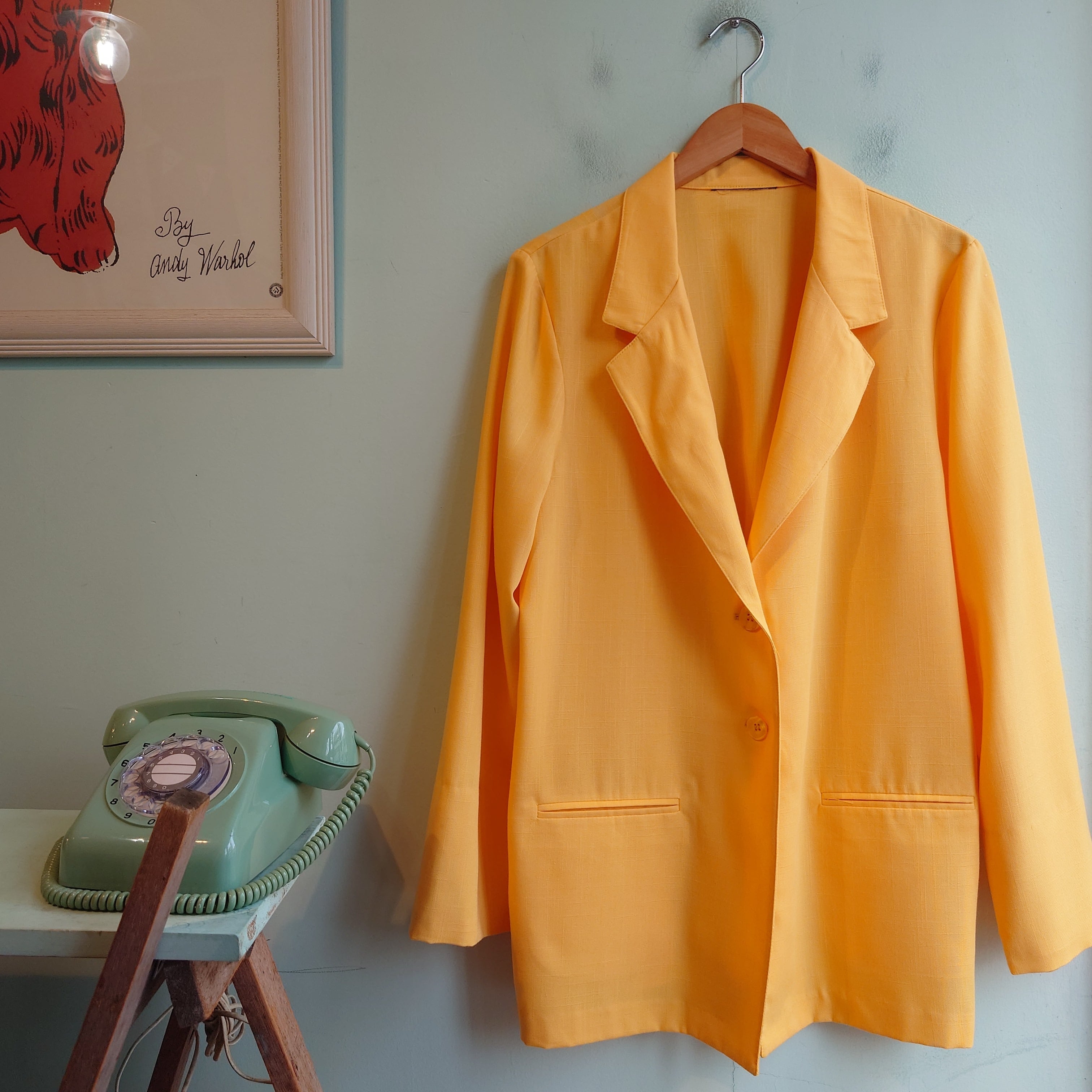 パッド無しでシャツを羽織るように合わせられる、イージータイプのテーラードジャケット。こちらはハッピーなイエローと、ツーボタンならではのボディーのかっちり感がレアな個体。カラフルだけどテーラー系らしい上品さも兼ね備えた一枚です。