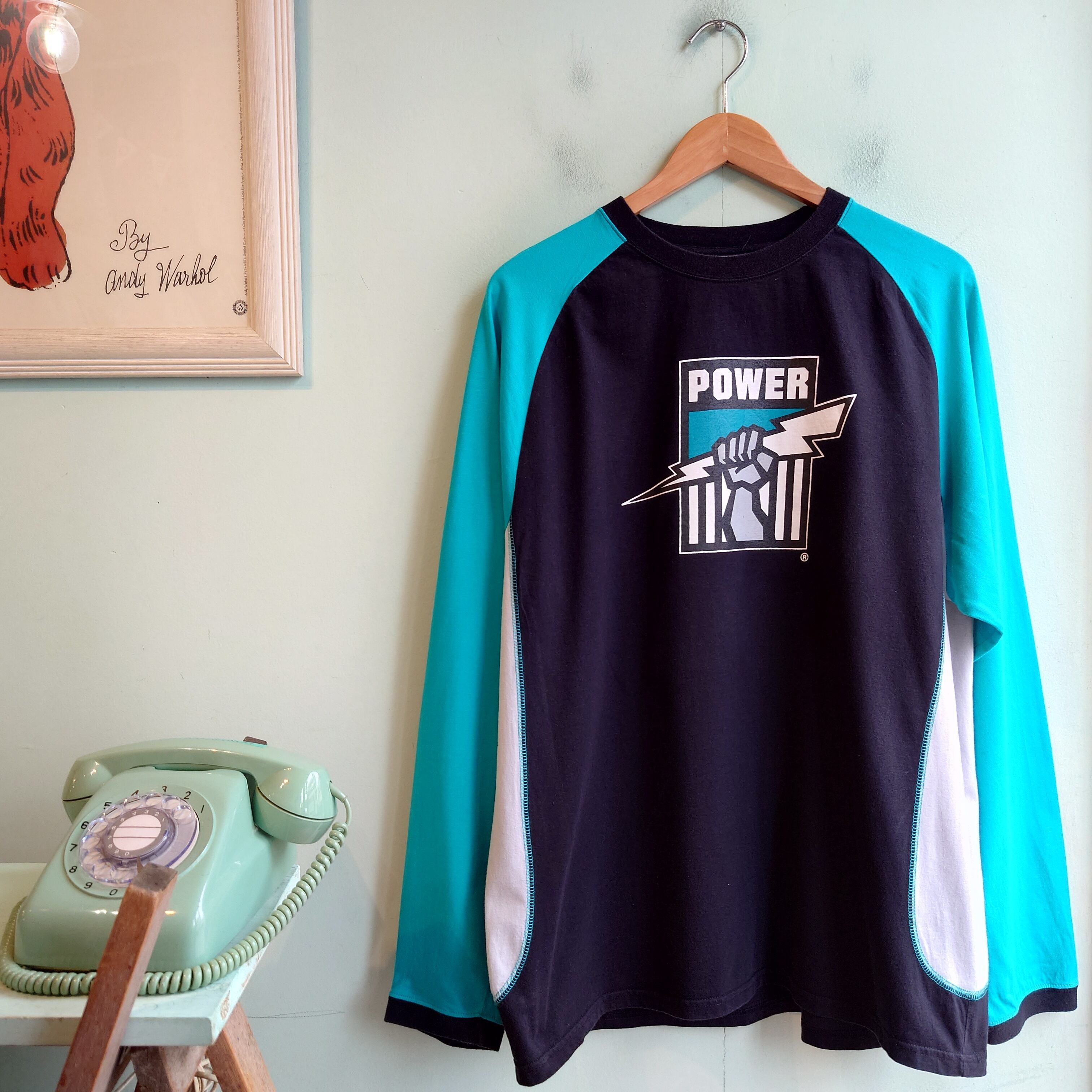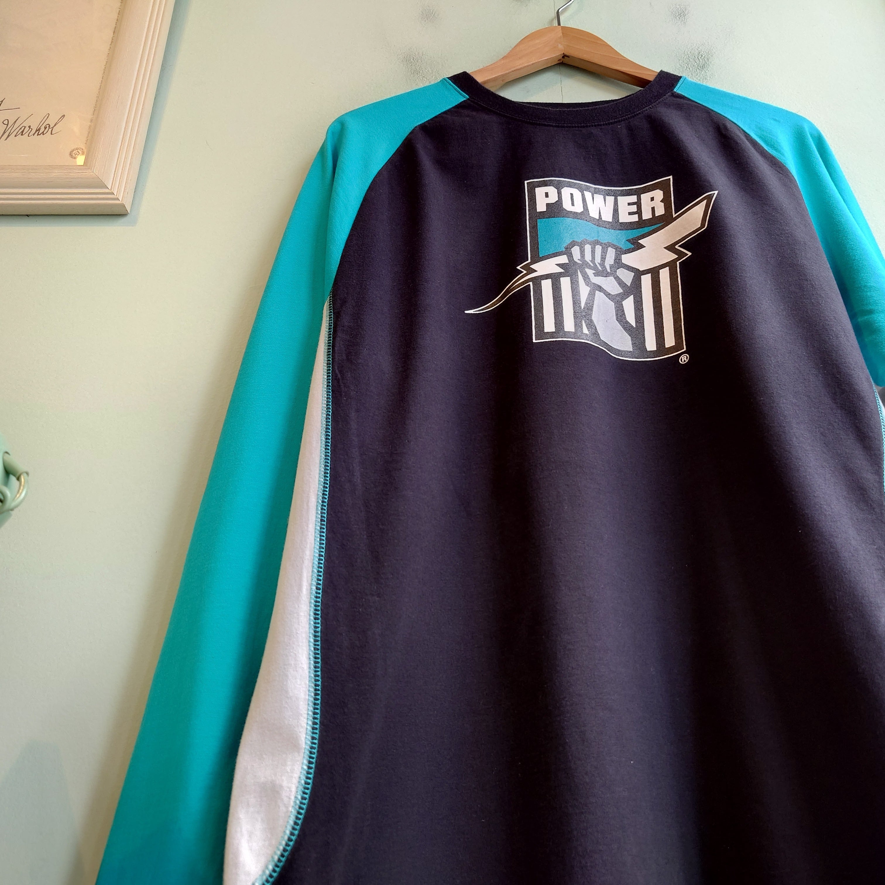 オーストラリアのプロリーグであるAFL所属するチーム、ポート・アデレード・フットボール・クラブのマルチカラーロンT。鮮烈なマルチカラーや、ちょこんとしたリブや、胴回りのステッチ、NFLとは一味違う可愛さ。スポーツアイテムとしても面白いし、不思議なポップアート感もおすすめポイント。
