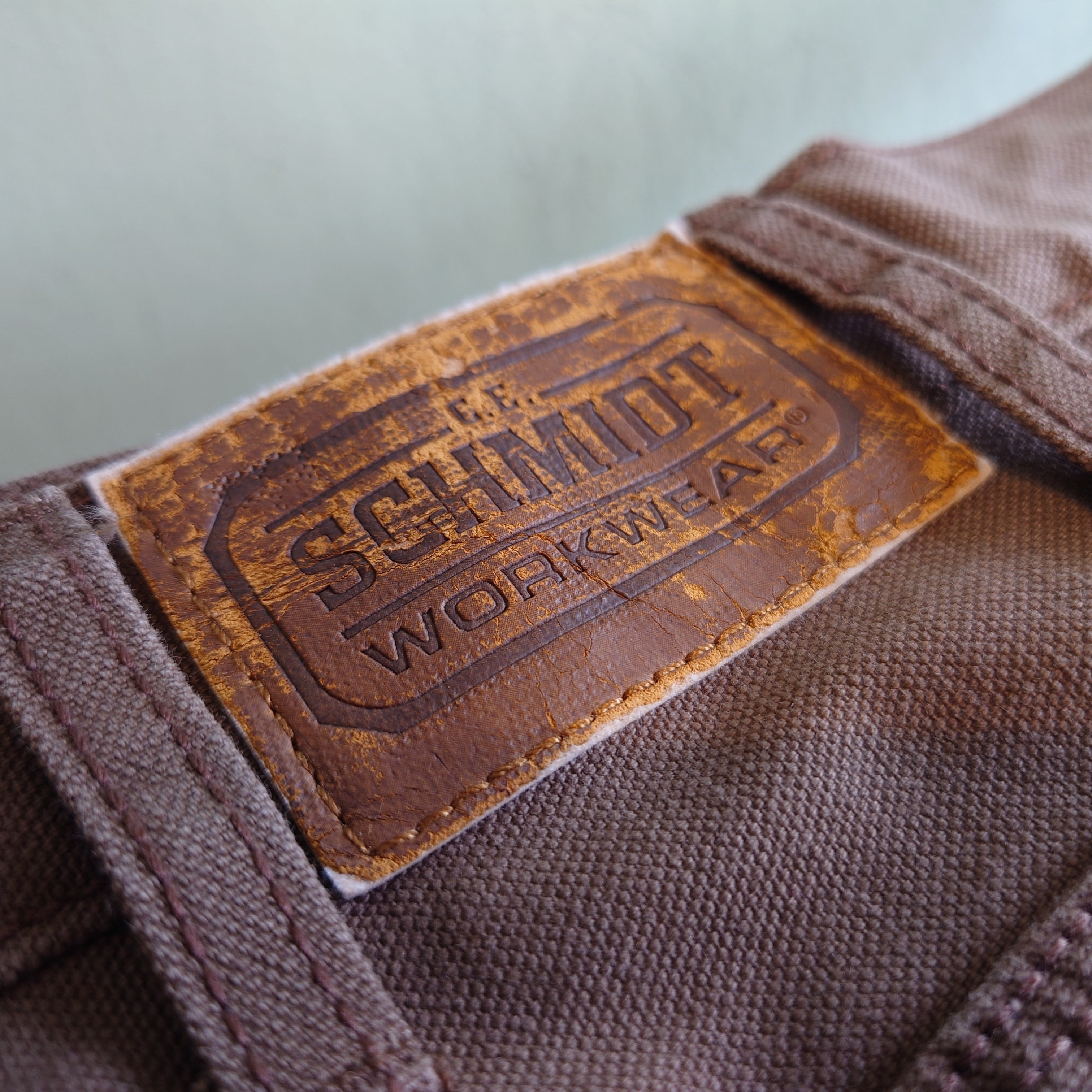 米国大手農業用品小売チェーンTSCが展開していたワークウェアブランド、シュミットのダックカーペンターパンツ。バシッと太めなシルエット、タフだけどなめらかなダック生地が間違い無しのかっこよさ。レザーパッチも他にはないポイント。DickiesやCarharttに負けずとも劣らないボトムです。