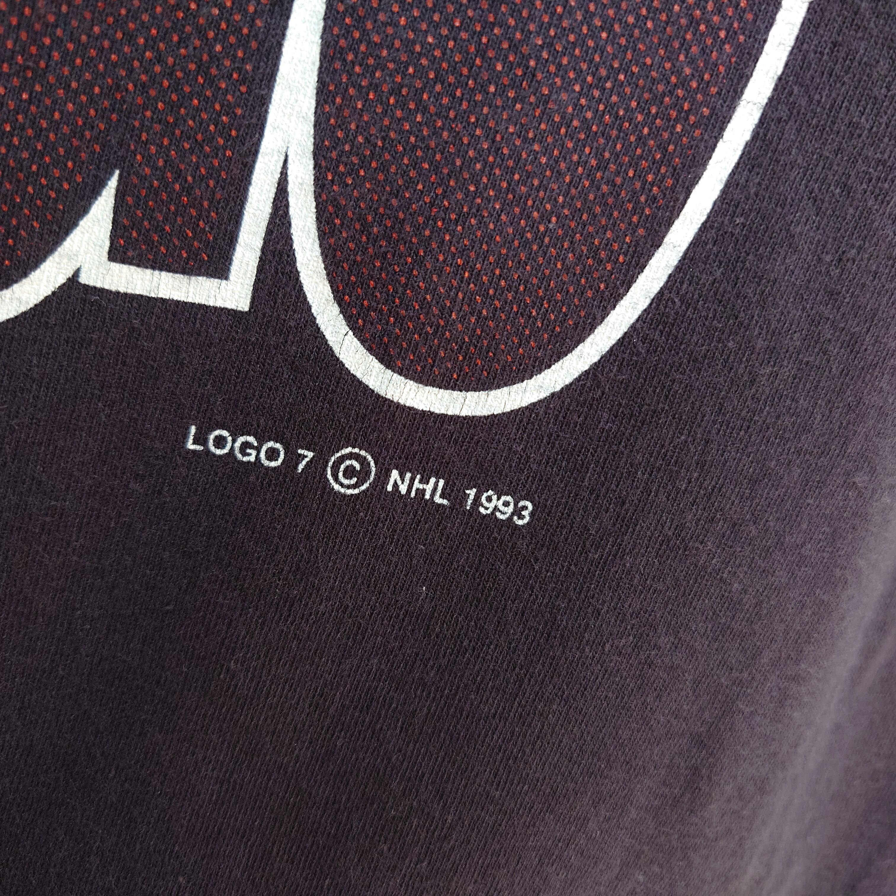 ◎LOGO 7 1993's NHL ブラックホークス ヴィンテージTシャツ プロチームTシャツ 両面プリント 黒