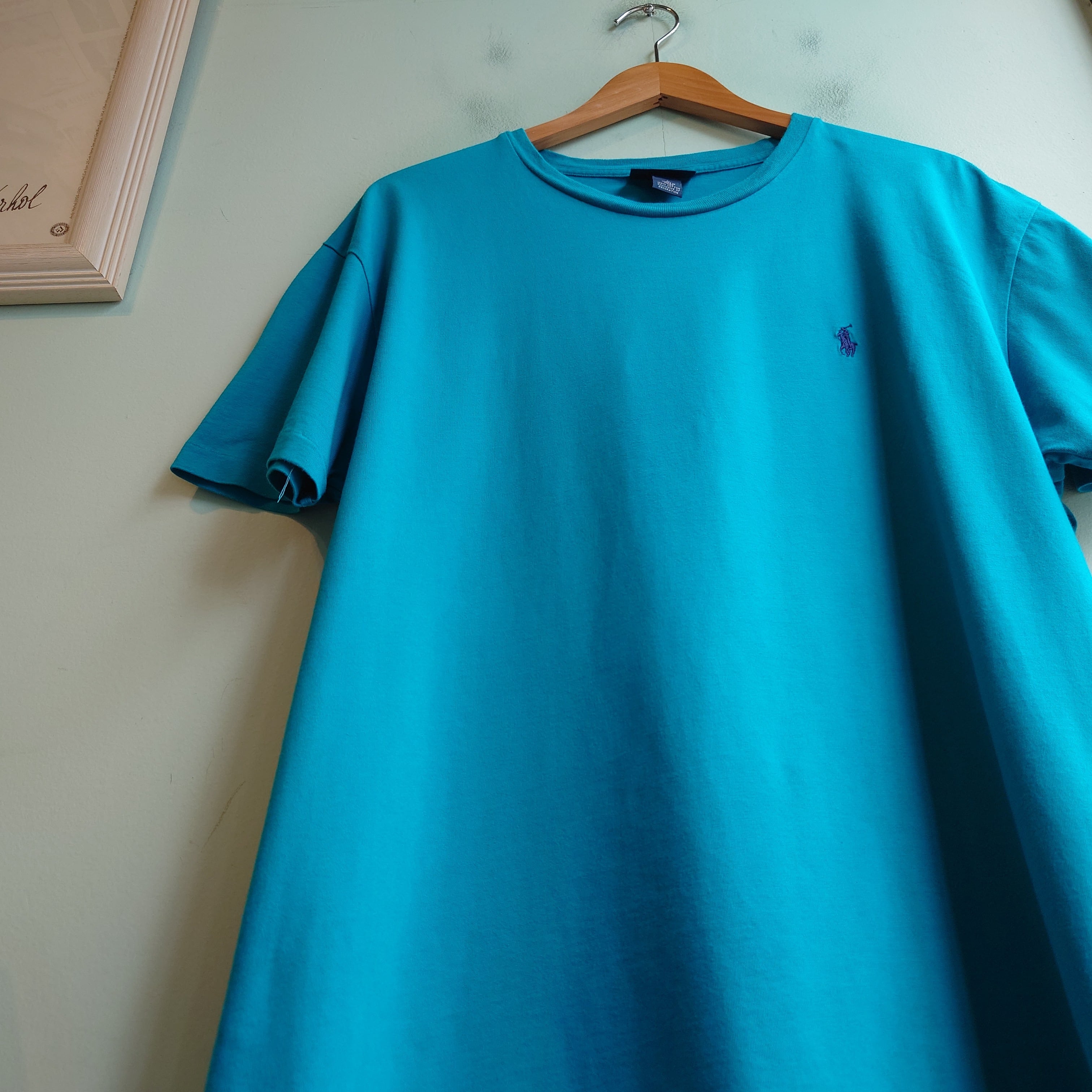 ◎RALPH LAUREN 90-00s ロゴTシャツ ワンポイントTシャツ レアカラー 青緑 L
